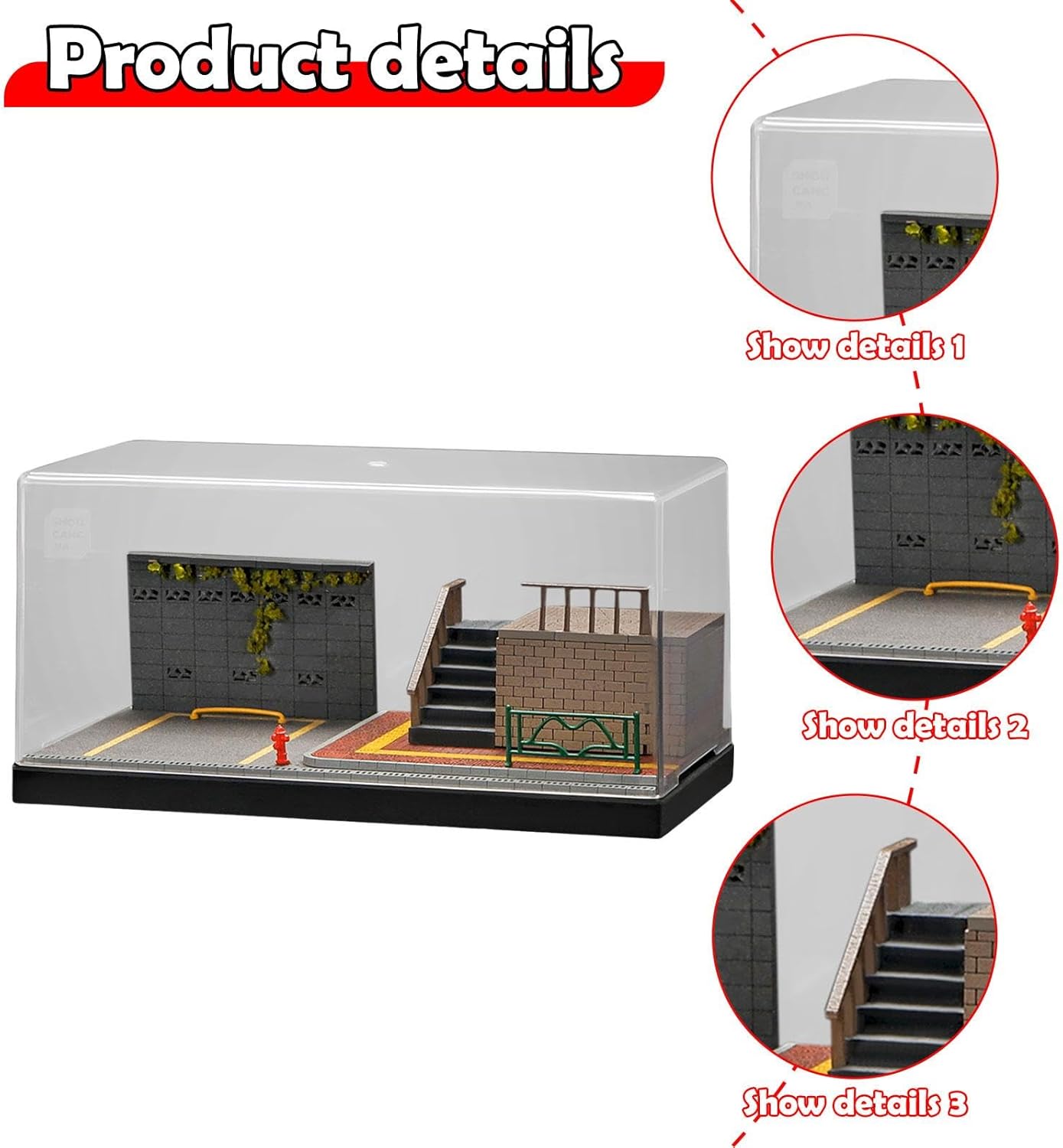 【Materiale di alta qualità】La nostra vetrina per modellini di auto è realizzata in polipropilene, fibra di legno e materiale acrilico. Dimensioni: 19,7 cm x 10 cm x 10 cm / 7,76 pollici x 3,94 pollici x 3,94 pollici 【Esposizione versatile】Il modello di scena espositiva per auto giocattolo 1:64 è ottimo per esporre collezioni di auto pressofuse, come pezzo decorativo o come espositore per la casa o l'ufficio 【Vetrinetta per modelli di veicoli in scala 1:64】: questa vetrina può contenere auto pressofuse in scala 1/64 con molto spazio 【Applicazione】La vetrina per modelli di veicoli è adatta per scrivanie, tavoli da ufficio, cassettiere, comodini per esporre e organizzare auto, , oggetti da collezione e qualsiasi altro soprammobile 【Scena di strada in miniatura dettagliata】: modello in scala 1:64 con un'ambientazione stradale realistica con intricati dettagli urbani, ideale per creare diorami realistici