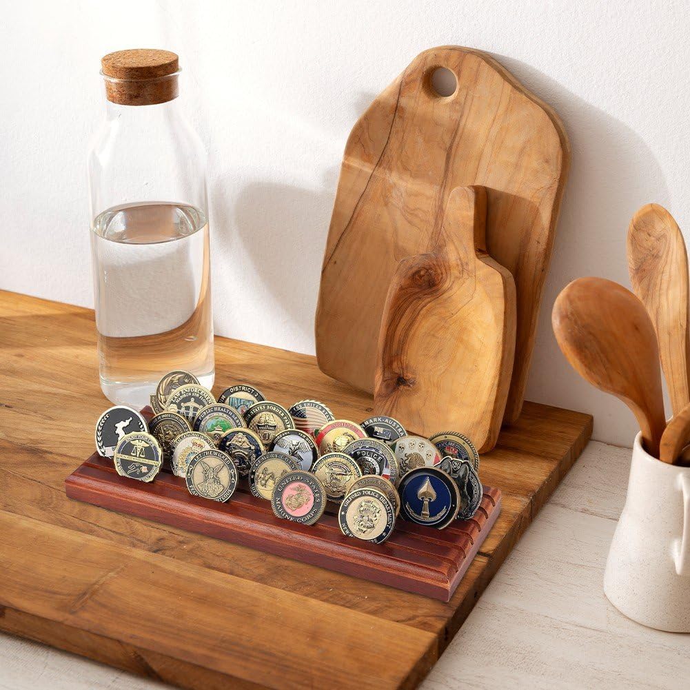 【Portamonete tradizionale migliorato】Un'alternativa da tavolo alla vetrina per monete montata a parete. Ottimo utilizzo per monete premio, emblemi di automobili, medaglioni, monete antiche e gettoni. Artigianato di alta qualità: la lucidatura a mano pura garantisce l'assenza di sbavature sulla superficie del espositore in legno massiccio. Il fondo è fissato con quattro tappetini antiscivolo, che possono esporre meglio le monete commemorative. GRANDE REGALO: ottimo regalo per il giorno dei veterani, il giorno del presidente, il giorno degli ufficiali, le forze speciali, le celebrazioni, la festa del papà, la festa della mamma, il Natale e altri eventi speciali. USA IL TUO DISPLAY PER MONETE SFIDA Espositore per medaglie militari, portamonete da collezione, espositore per monete aeree, espositore per portamonete, espositore per badge militare, espositore per fiches da poker, portamonete sfida. Materiale: l'espositore per monete Challenge è realizzato in legno massello di gomma. Il Rubberwood è un legno duro, più robusto e più durevole del pino;