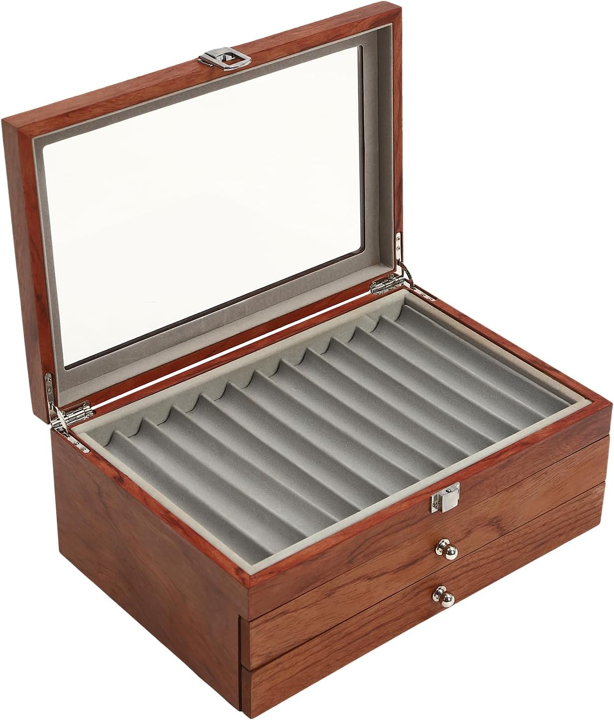 ⭐【Capacità enorme】- Questa scatola per penne può contenere fino a 34 penne ed è ideale per conservare, esporre e proteggere in modo sicuro la tua vasta collezione. Le scanalature curve in ogni scomparto assicurano che penne di diversi tipi e dimensioni siano tenute saldamente. ⭐ 【Stile elegante】 - Questa attraente scatola in pelle non solo conferisce alle tue penne un aspetto lussuoso, ma le protegge anche in modo efficace. Con questa scatola per penne puoi conservare ed esporre le tue penne preferite con stile ⭐ 【Massima protezione】 - Le fessure curve in questa scatola per penne garantiscono una presa sicura e salda delle penne per evitare graffi e attriti. Ciò manterrà le tue penne in perfette condizioni ⭐ 【Materiale di qualità e lavorazione squisita】 - Realizzata in legno e flanella di alta qualità, questa scatola per penne non è solo alla moda e durevole, ma anche resistente alla deformazione, alla corrosione e allo sbiadimento. Il mobile a tre livelli con un comodo cassetto consente il massimo utilizzo dello spazio, mentre il design del lucernario consente un facile accesso e un'esposizione spettacolare. ⭐ 【Regalo ideale】 - Questa scatola per display con penna è un regalo perfetto per ogni occasione. Che sia per il tuo partner, per i tuoi genitori o per una persona appassionata di collezionismo di penne, è un regalo meraviglioso che sarà sicuramente apprezzato.