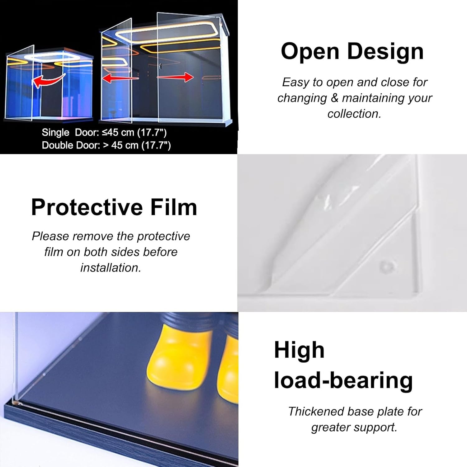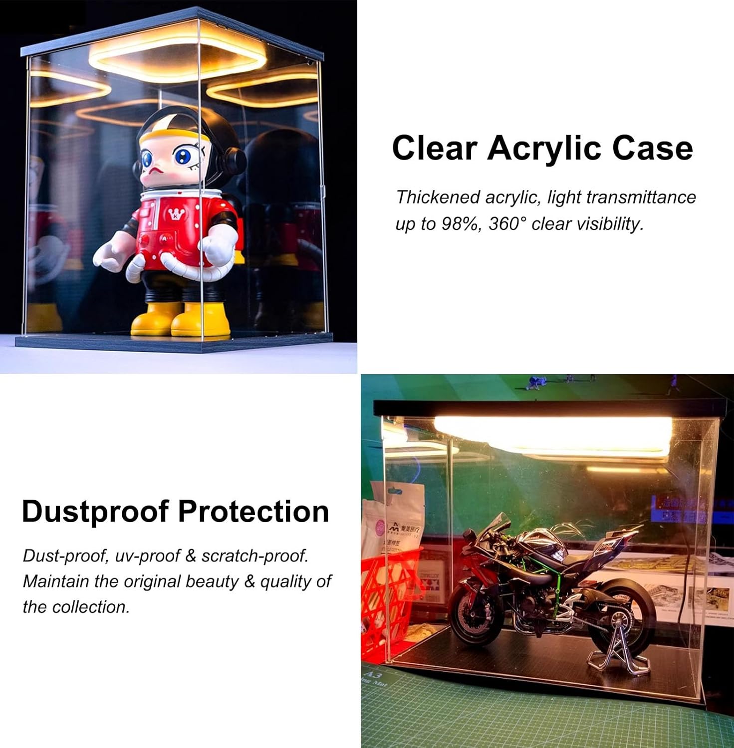 【Vetrina trasparente con luce a LED】: Vetrina in acrilico con luce a LED, facile da aprire, mantiene la collezione priva di polvere, blocca la luce solare e la protezione UV, la luce a LED rende l'intera collezione più calda e illumina l'intera vetrina. deformabile, lunga durata 【Dimensioni personalizzabili】: misura le dimensioni della tua collezione prima dell'acquisto per garantire che la collezione possa adattarsi alla vetrina, il prodotto supporta la personalizzazione, se hai bisogno di contattarci 【Facile da montare】: Le nostre vetrine da collezione sono facili da montare, basta assemblare le parti e metterle insieme in pochi minuti. Nota: se hai bisogno di un supporto più sicuro, puoi anche usare la colla (colla non inclusa). Molteplici usi: le scatole acriliche per esposizione possono essere utilizzate per action figure, figurine, giocattoli, bambole anime, borse, souvenir, automobili, gioielli, bambole, puzzle 3D, palle da baseball, souvenir, modelli, sculture e blocchi. Utilizzabile in casa, nei negozi al dettaglio, sui banconi, nei musei, nelle fiere