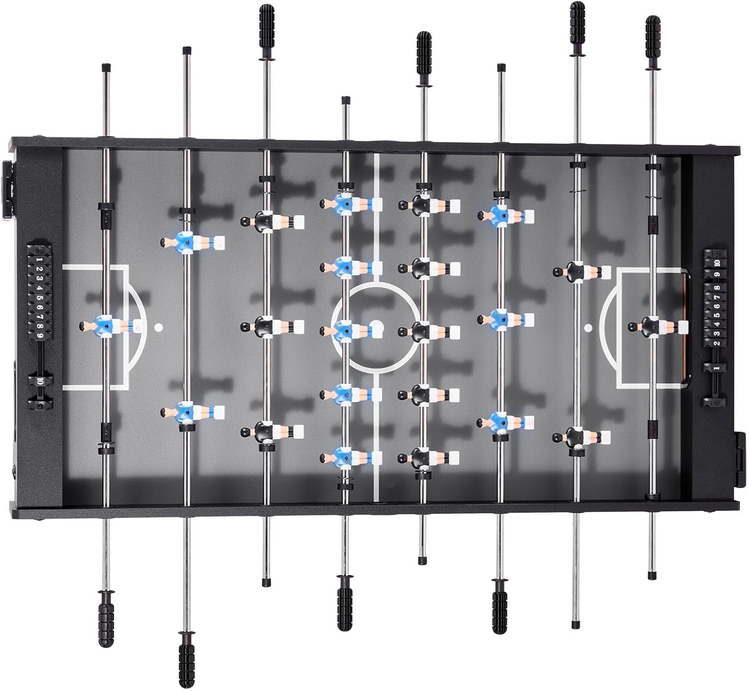 Robusto e durevole: questo biliardino da 48 pollici è realizzato in MDF durevole e resistente alla muffa. Può ospitare 22 giocatori e 2 palloni. Le aste sono dritte e lisce, garantendo colpi potenti senza piegarsi o arrugginirsi. Ottima esperienza di intrattenimento: il biliardino è dotato di maniglie antiscivolo per una rotazione fluida. Ciò rende più semplice passare rapidamente dall'attacco alla difesa. Puoi anche posizionare una bevanda gustosa nel portabicchieri Movimento fluido della palla: l'esclusivo design dell'angolo inclinato impedisce efficacemente che la palla si attacchi durante il gioco. Puoi anche regolare le gambe del tavolo per mantenere una superficie bilanciata e un controllo della palla più preciso. Ampia applicazione: questo tavolo versatile è ideale per il tempo libero professionale, il tempo libero domestico e le attività educative. Può essere posizionato a casa o in ufficio ed è spesso utilizzato in club ricreativi, pensioni e bar. Facile da montare: con semplici istruzioni di montaggio, questo tavolo da biliardino si installa rapidamente. La sua confezione robusta e la pratica funzionalità lo rendono un regalo ideale per i tuoi cari