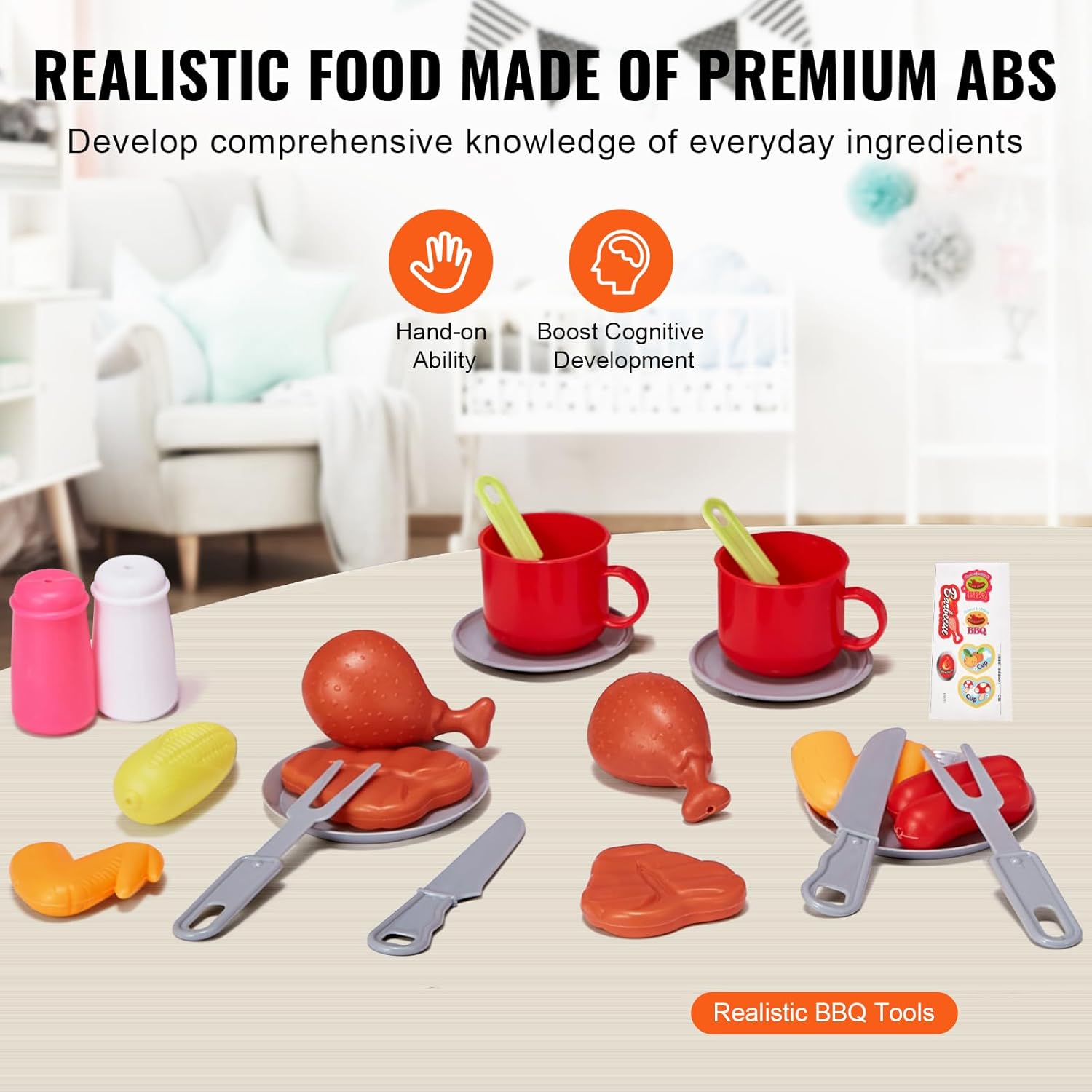 Playset realistico per grigliate: lascia che i tuoi piccoli si divertano a grigliare con il nostro playset per grigliate BBQ! È dotato di luci realistiche, suoni di cottura e un carbone alimentato a batterie (non incluse) che si accende quando punti l'accendino verso il punto rosso. Questo giocattolo sicuro e coinvolgente imita il processo di grigliatura, tenendo i bambini lontani dai veri barbecue e offrendo al contempo un'entusiasmante avventura in giardino. Potenzia le capacità cognitive: il nostro set da gioco per barbecue per bambini non è solo divertente, ma anche educativo! Aiuta i bambini a migliorare la coordinazione occhio-mano, a imparare a grigliare e a riconoscere cibi diversi. I bambini possono giocare da soli o con gli amici. Con il set, i bambini possono "cucinare" il loro cibo giocattolo mentre i genitori preparano pasti veri, favorendo il legame genitore-figlio e le capacità sociali. Materiali sicuri e durevoli: realizzato in plastica ABS di alta qualità, il nostro set da gioco per bambini è liscio, senza sbavature, privo di BPA e approvato tramite test di sicurezza. È un fantastico regalo di compleanno per bambini dai 3 ai 5 anni ed è perfetto per giocare all'aperto. Set da gioco con griglia da 28 pezzi: questo realistico set da gioco con griglia per bambini piccoli include tutto ciò di cui i bambini hanno bisogno per ore di gioco fantasioso. Include 2 costolette, 1 salsiccia, 1 pannocchia, 2 ali di pollo, 2 cosce di pollo, 2 barattoli di spezie, 1 adesivo, 2 sottobicchieri, 2 piatti, 4 coltelli e forchette, 1 accendino, 2 tazze, 2 cucchiaini per spezie, 2 ruote, 1 carbonella e 1 pinza per barbecue. Facile da montare e riporre: montare questo set di griglia da gioco è un gioco da ragazzi e tutti i pezzi si inseriscono ordinatamente all'interno della griglia, quindi non c'è bisogno di ulteriore spazio di archiviazione. Perfetto per stimolare la creatività nei bambini e nelle bambine dai 3 ai 5 anni, questo set è un fantastico regalo di compleanno, per le vacanze, per Natale o per un'occasione speciale.
