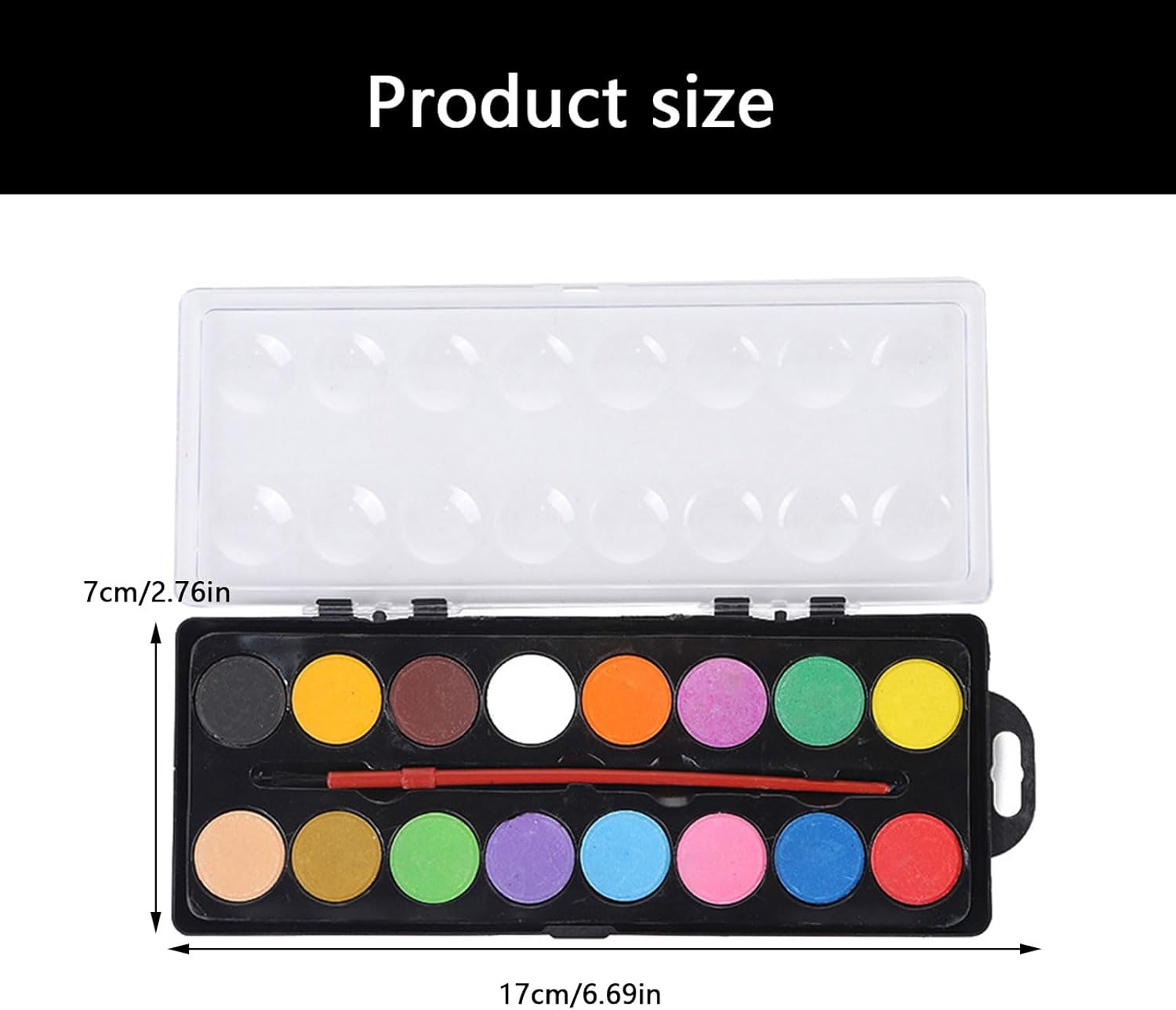 Design portatile e facile da usare: confezione leggera e portatile per un facile trasporto, ideale per schizzi all'aperto o creazioni artistiche durante i viaggi Selezione di colori vivaci: 16 colori a guazzo solidi per soddisfare le esigenze creative Prestazioni di lunga durata: le vernici per padelle di alta qualità offrono colori vibranti e resistenti allo sbiadimento, garantendo che la tua opera d'arte mantenga la sua brillantezza nel tempo Pigmenti sicuri: custodia in plastica con polvere compatta, non tossica e sicura per i bambini durante l'uso Creatività ispiratrice: i colori ricchi stimolano l'immaginazione e la creatività dei bambini, aiutando a esplorare le possibilità durante il processo di pittura