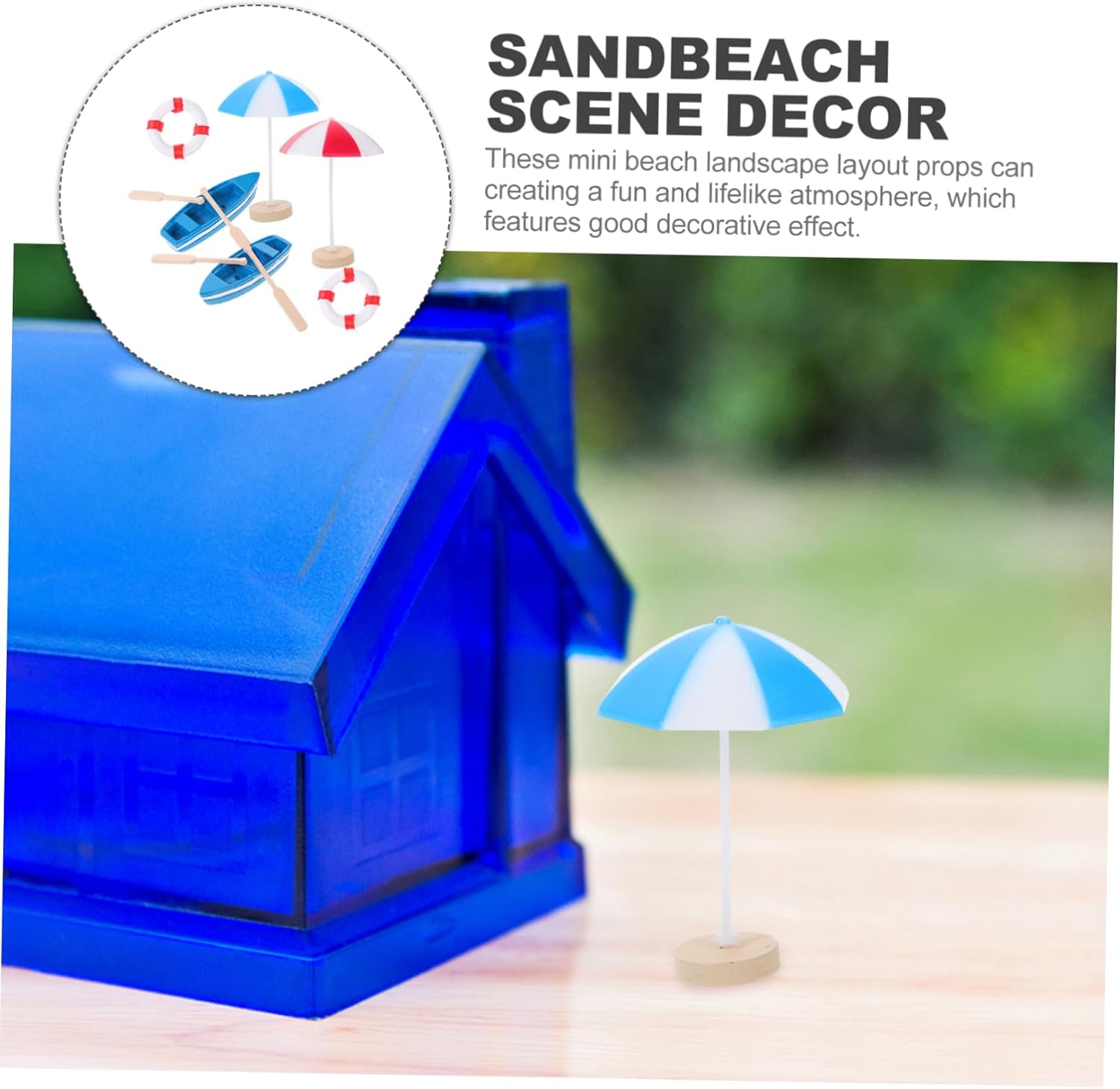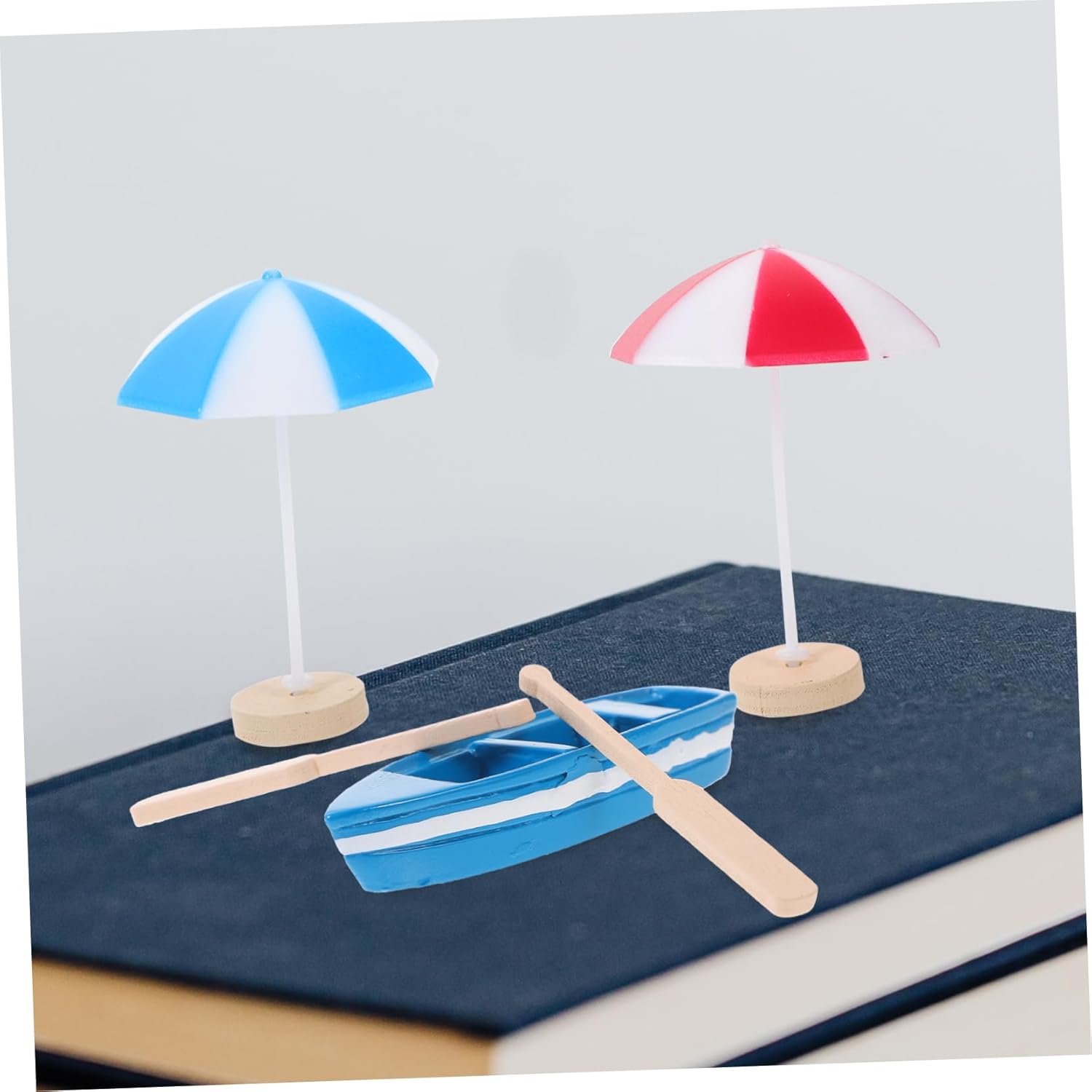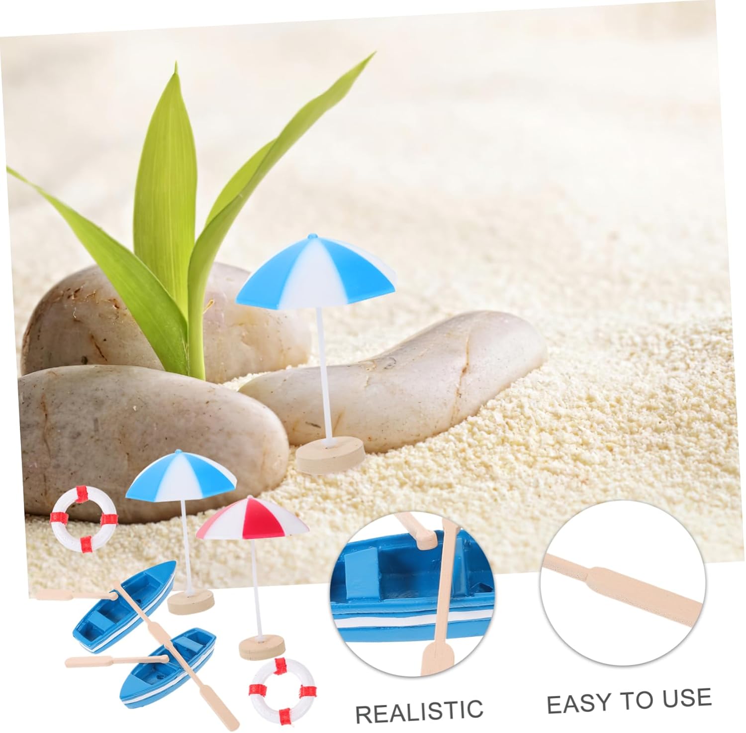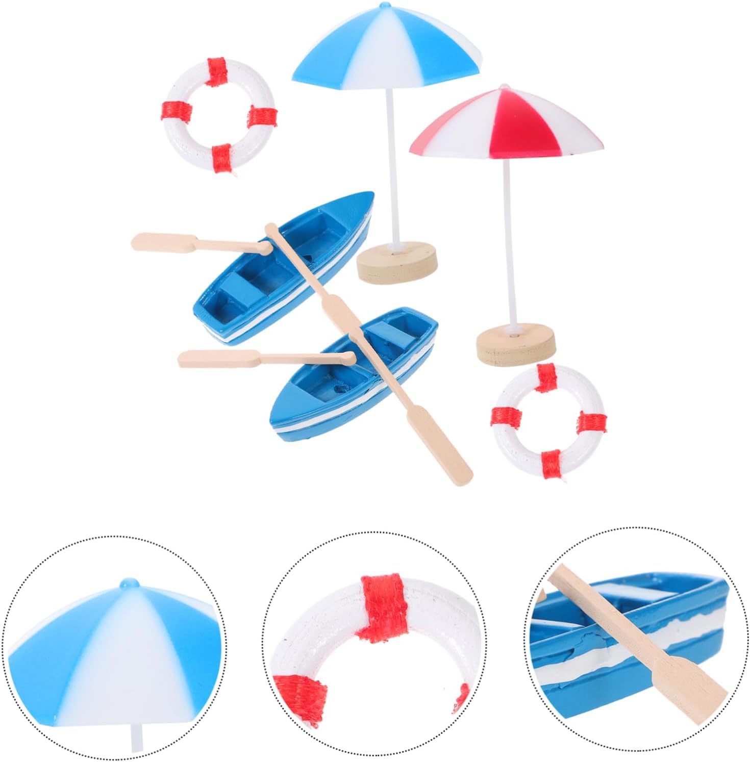 Barca in miniatura della casa delle bambole: questi ornamenti da spiaggia in miniatura sono decorazioni per l'arte del giardinaggio domestico, mini ornamento. Accessori per micro paesaggi: dettagli raffinati e unici, vivaci e realistici, questi ornamenti in miniatura ti offrono una meravigliosa fai-da-te, decorazione in miniatura sulla spiaggia. Mobili per la casa in miniatura: sono piccoli e leggeri, quindi non occupano molto spazio, sono giocattoli da spiaggia unici e meravigliosi per le case delle bambole. Galleggiante per piscina per casa delle bambole: progettato appositamente per la micro scena della mini casa, che crea un'atmosfera divertente e realistica, decorazioni per torte da spiaggia. Mini ombrellone da spiaggia: la pregevole fattura garantisce dettagli e aspetto realistici, fai finta di giocare a un giocattolo.