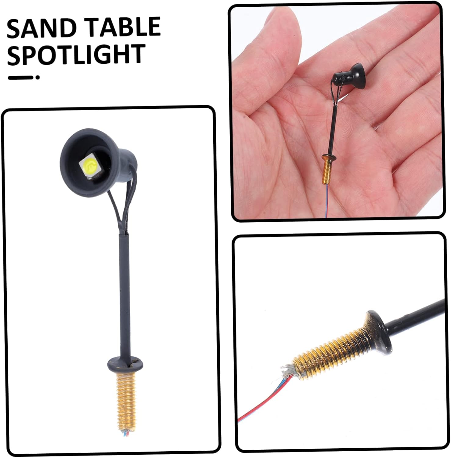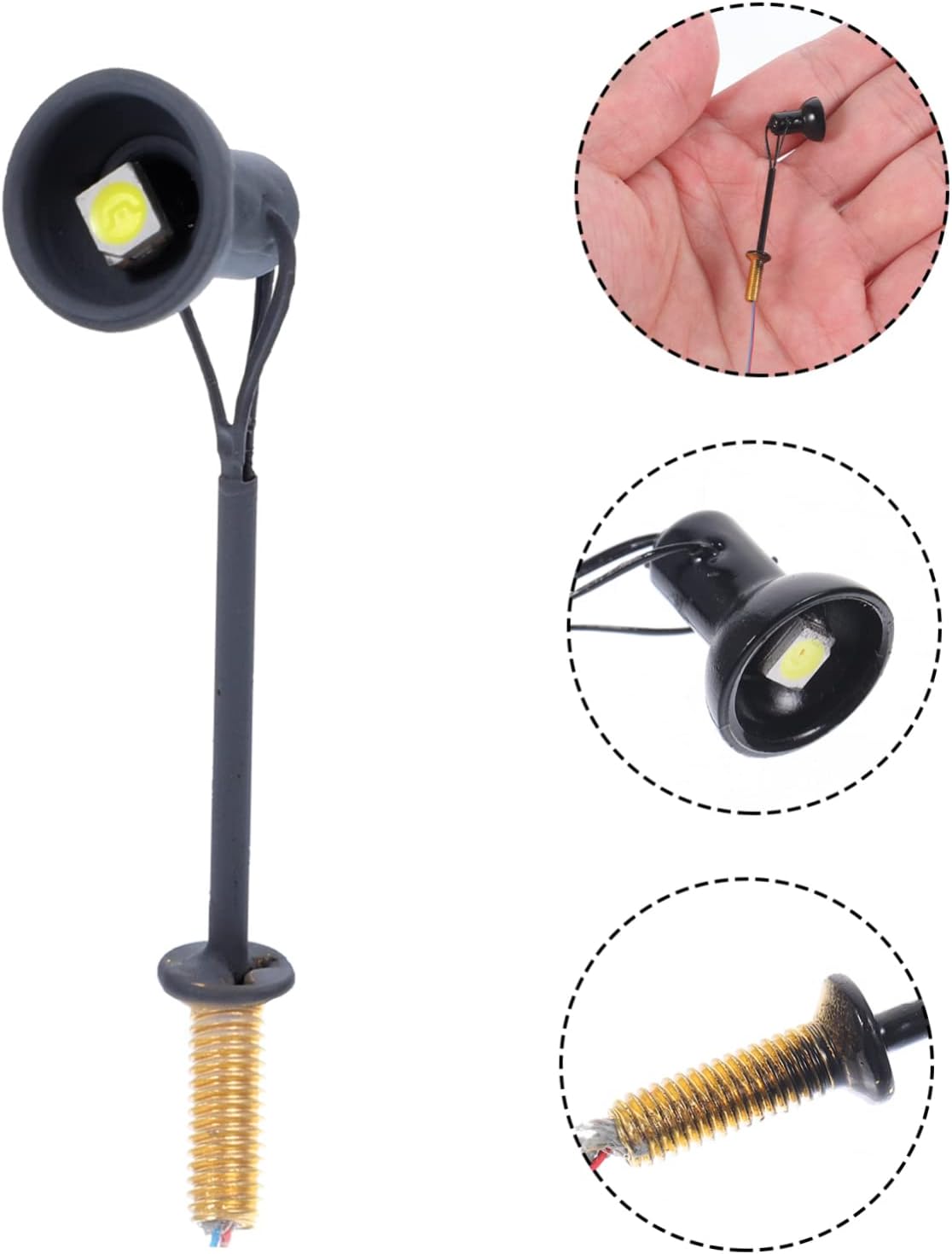 Lampada con riflettore da tavolo in sabbia: splendidamente realizzata e realistica, con un alto grado di riproduzione realistica, quindi non puoi metterla giù. Lampione stradale in miniatura: una scelta per i tuoi amici a cui piacciono i modelli di scene in miniatura, decorativi e chic. Modello di luce di segnalazione luminosa: posizionalo nella tua mini casa o stanza per dettagli più realistici, rendi la mini casa più affascinante. Materiali fai da te per il tavolo di sabbia: figurine mini luci --- modello speciale di luce spot progettato per il tavolo di sabbia, creando una circostanza realistica e calda. Luci di natale: le dimensioni in miniatura rendono il modello di luce spot facile e comodo da trasportare ovunque tu vada.