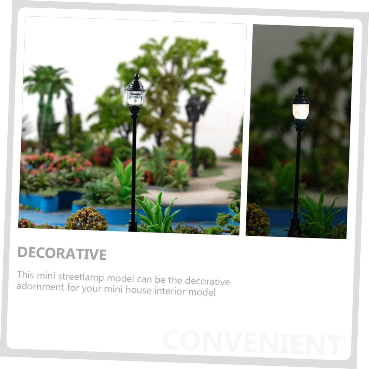 Luci da giardino a led: questo mini modello di lampione può essere un ornamento decorativo per la tua mini casa o giardino. Modello mini lampada-- ❤️lampione stradale da tavolo in sabbia, il modello mini lampione è realizzato in buon materiale, l'arredamento è sicuro e deforma facilmente. Mobili in miniatura per il fai da te-- ✨✨mini luci stradali per case delle bambole simulate sono un ideale per gli amanti del fai da te, la decorazione fai da te per tavoli con sabbia con luci per case delle bambole in miniatura è anche una scelta per gli amici a cui piacciono i modelli di scene di case in miniatura, le decorazioni e l'eleganza. Lampione ferroviario in miniatura: lavorazione eccezionale, design ragionevole, stabile e pratico, ti offriranno una buona di utilizzo. Decorazione in miniatura: con un design unico ed elegante, la tua casa in miniatura sembra più calda e alla moda.