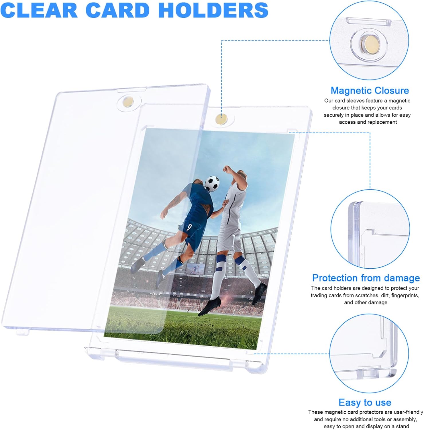 Display chiaro: queste custodie magnetiche per carte di credito sono molto trasparenti, in modo da poter mostrare facilmente la parte anteriore e posteriore delle carte senza doverle rimuovere. custodie rigide per carte da collezione, custodie in plastica Chiusura sicura: le nostre custodie per carte di credito offrono una chiusura ermetica con chiusura magnetica ed evitano che le carte cadano o si danneggino durante il trasporto Facile da usare: queste custodie protettive magnetiche sono facili da usare e non richiedono strumenti aggiuntivi o montaggio, possono essere facilmente aperti e posizionati su un supporto, porta carte da gioco, Chiusura magnetica: le nostre custodie per carte di credito dispongono di una chiusura magnetica che mantiene le vostre carte saldamente in posizione e consente un facile accesso e sostituzione, custodia per carte di credito, tasca magnetica per carte di credito Versatile: i nostri porta carte magnetiche trasparenti hanno la giusta dimensione per carte da collezione, carte sportive, carte da gioco, carte celebrità, ecc., porta carte sportive