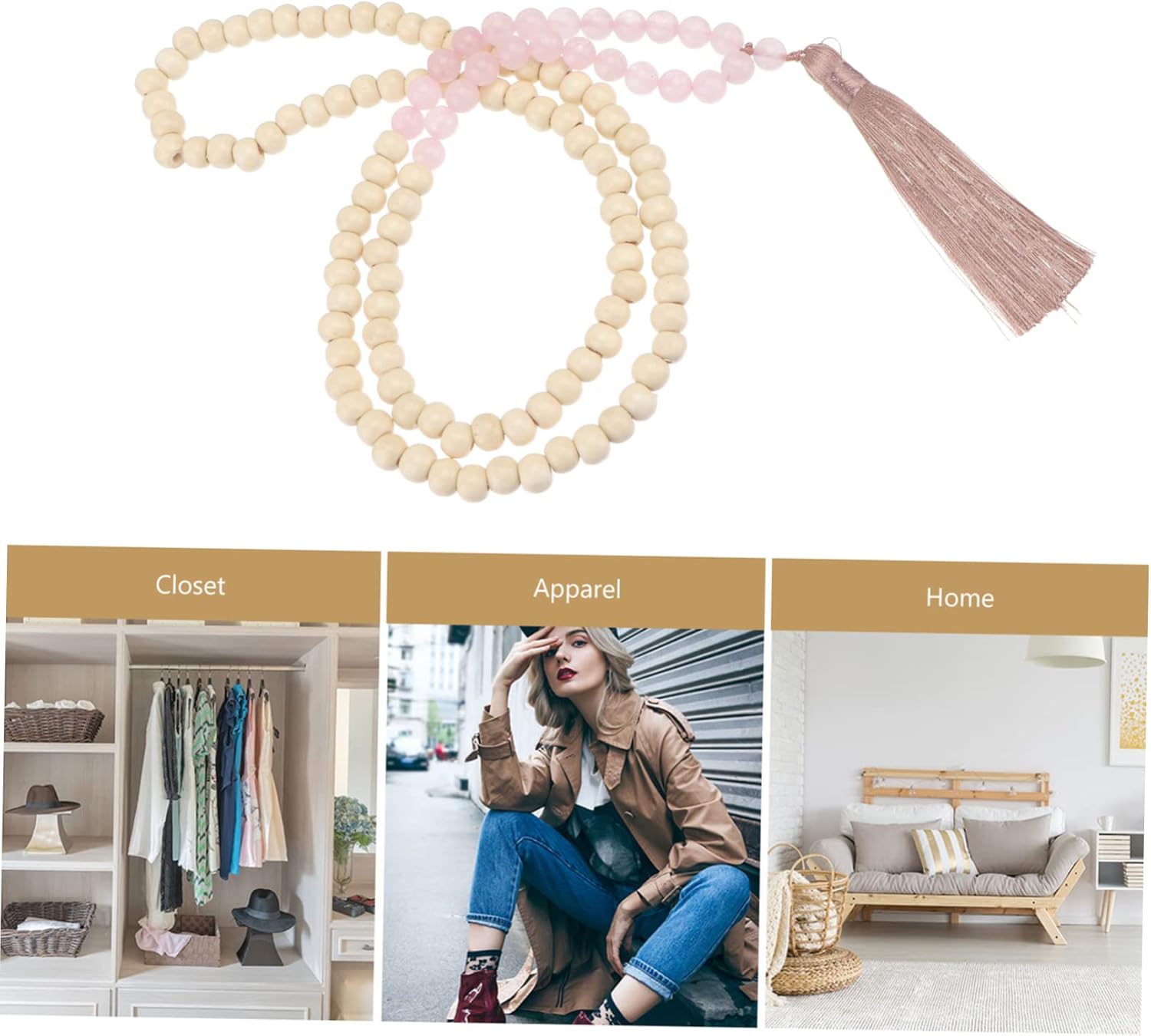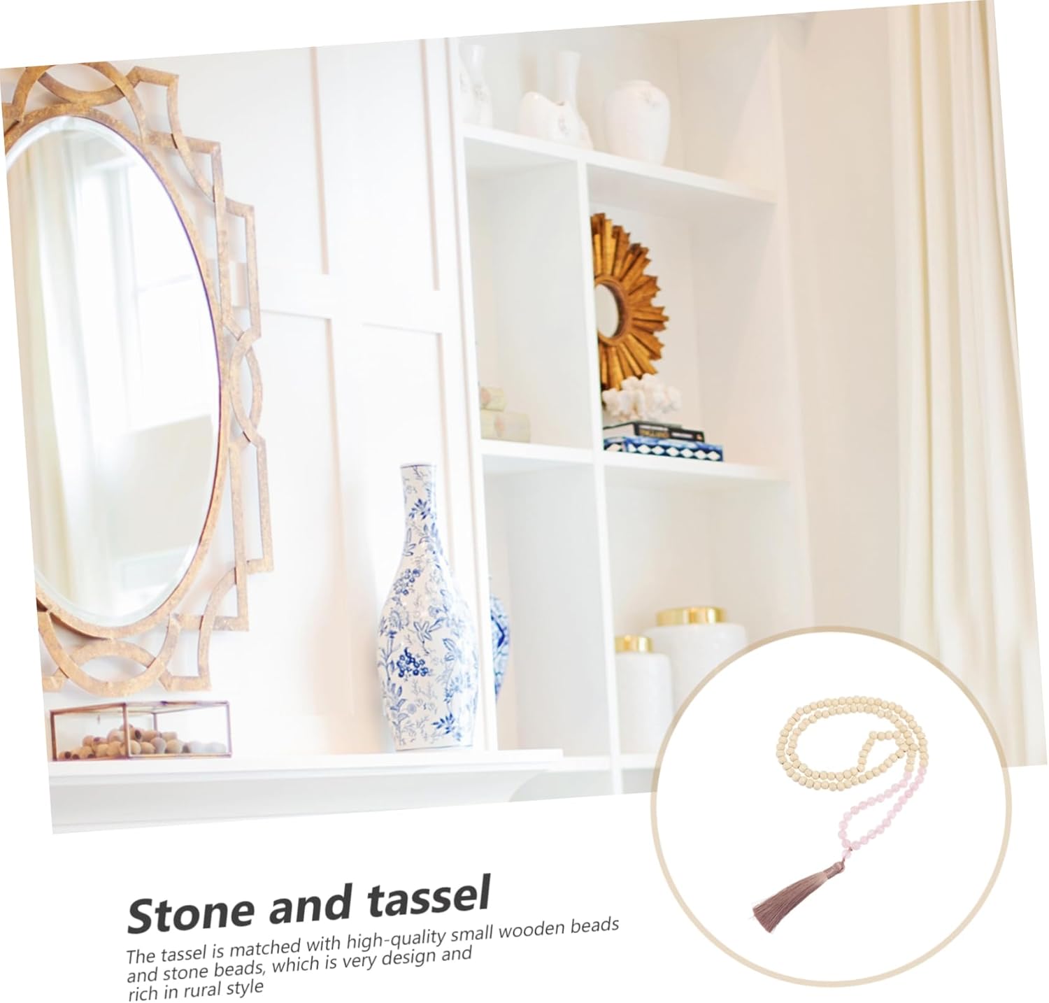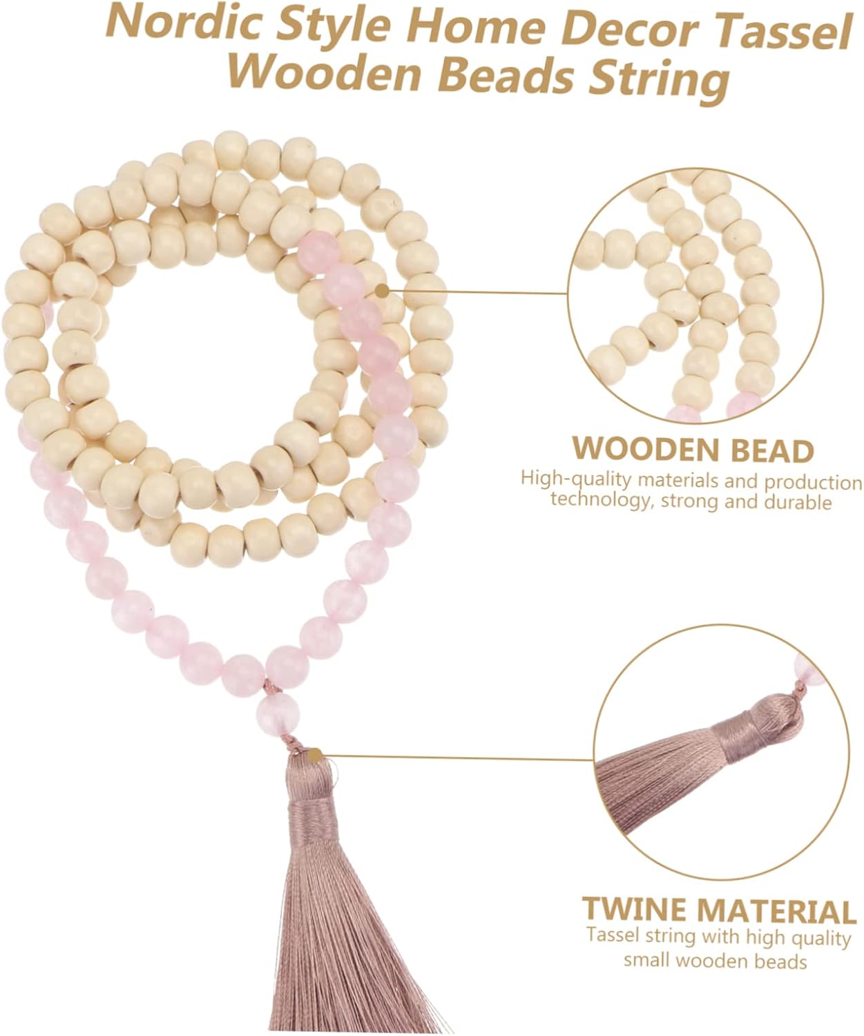 Ornamenti per interni: può essere sospeso muro e posizionato sul vaso, sulla bottiglia di , sulla scrivania e altro ancora, pendente con perline Decorazioni sospese: è un pensiero premuroso per i tuoi amici e una buona scelta per la tua casa, pendente da parete Perlina appesa: realizzata in materiale per un lungo periodo e uso, ciondolo con perline di pietra Decorazione da appendere con nappe: con un design creativo, ornamento da appendere per la casa, l'ufficio e il negozio, decorazioni con perline di legno Decorazione con nappe in corda di cotone: il classico può abbinarsi bene con una varietà di decorazioni, sicuro e piacevole da usare, ornamento per la casa