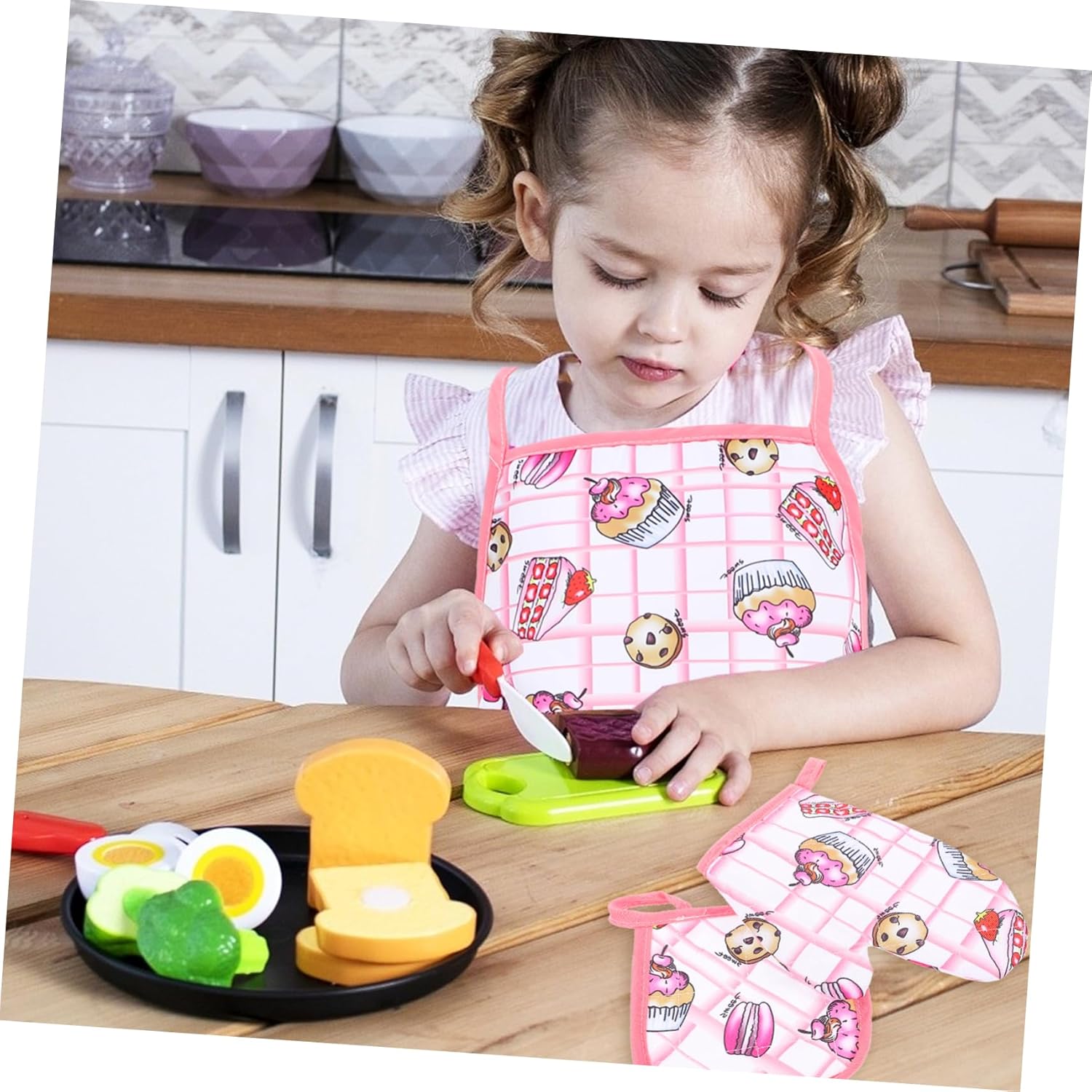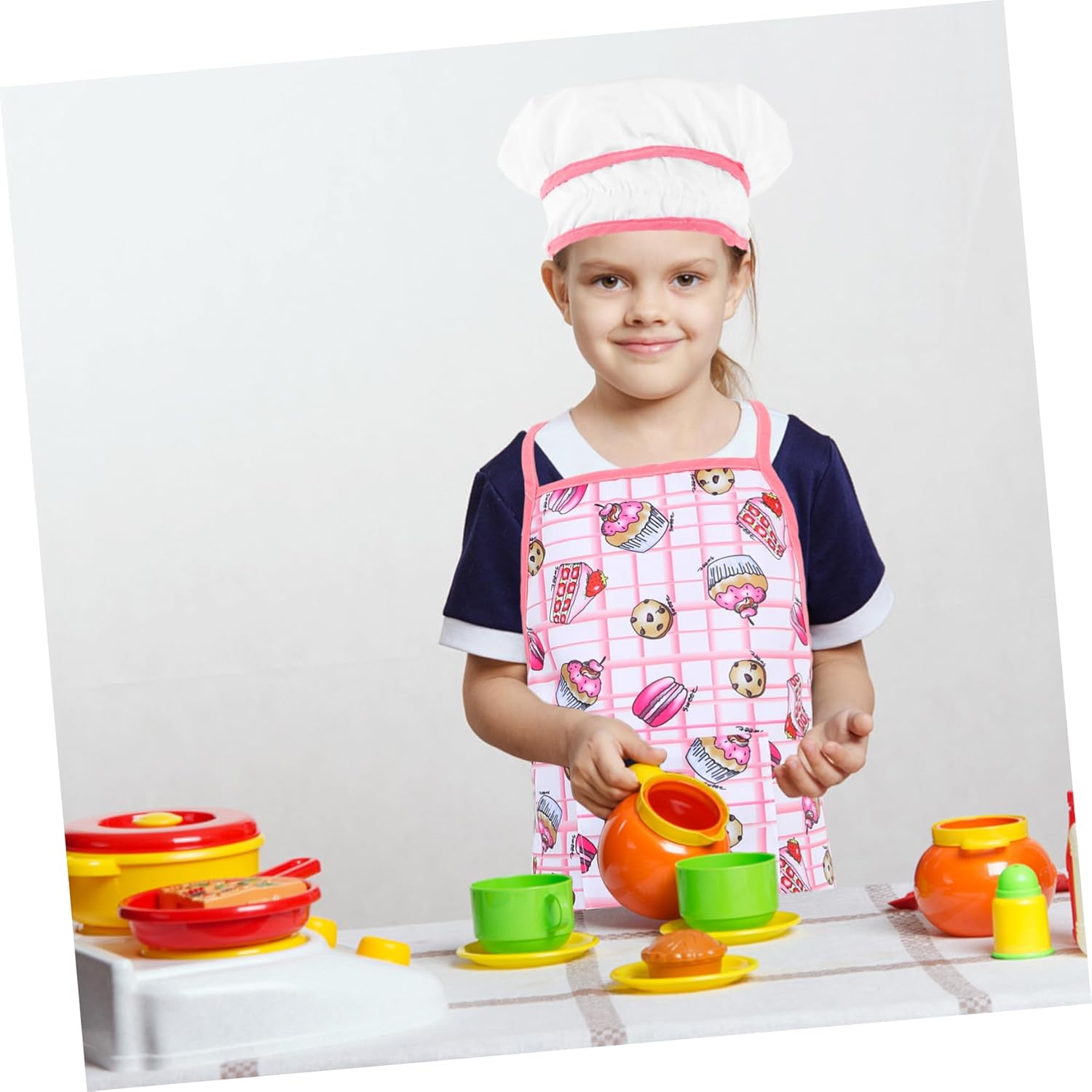 Grembiule da cucina per bambini: questo grembiule e questo cappello possono essere ampiamente applicabili nella cottura forno. puoi anche inviarlo regalo ad amici o parenti che hanno bambini di età adatta. Grembiule da e cappello da chef: sono della misura giusta per le dei più piccoli che sono curiose di imparare a cucinare o cuocere forno. Grembiule da chef per bambini: è il perfetto con i bambini durante le festività natalizie, permettendo loro di imparare le abilità di cottura con te. Grembiule da cucina per bambini: colori vivaci, stampa chiara, sensazione di mano confortevole. offrirti una buona utente. Grembiuli da cucina per bambini: il materiale è sicuro e leggero, resistente all'usura e pratico per un uso prolungato.