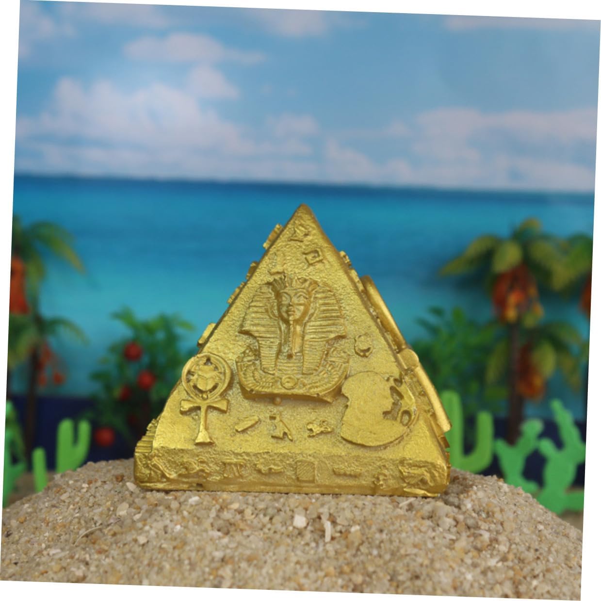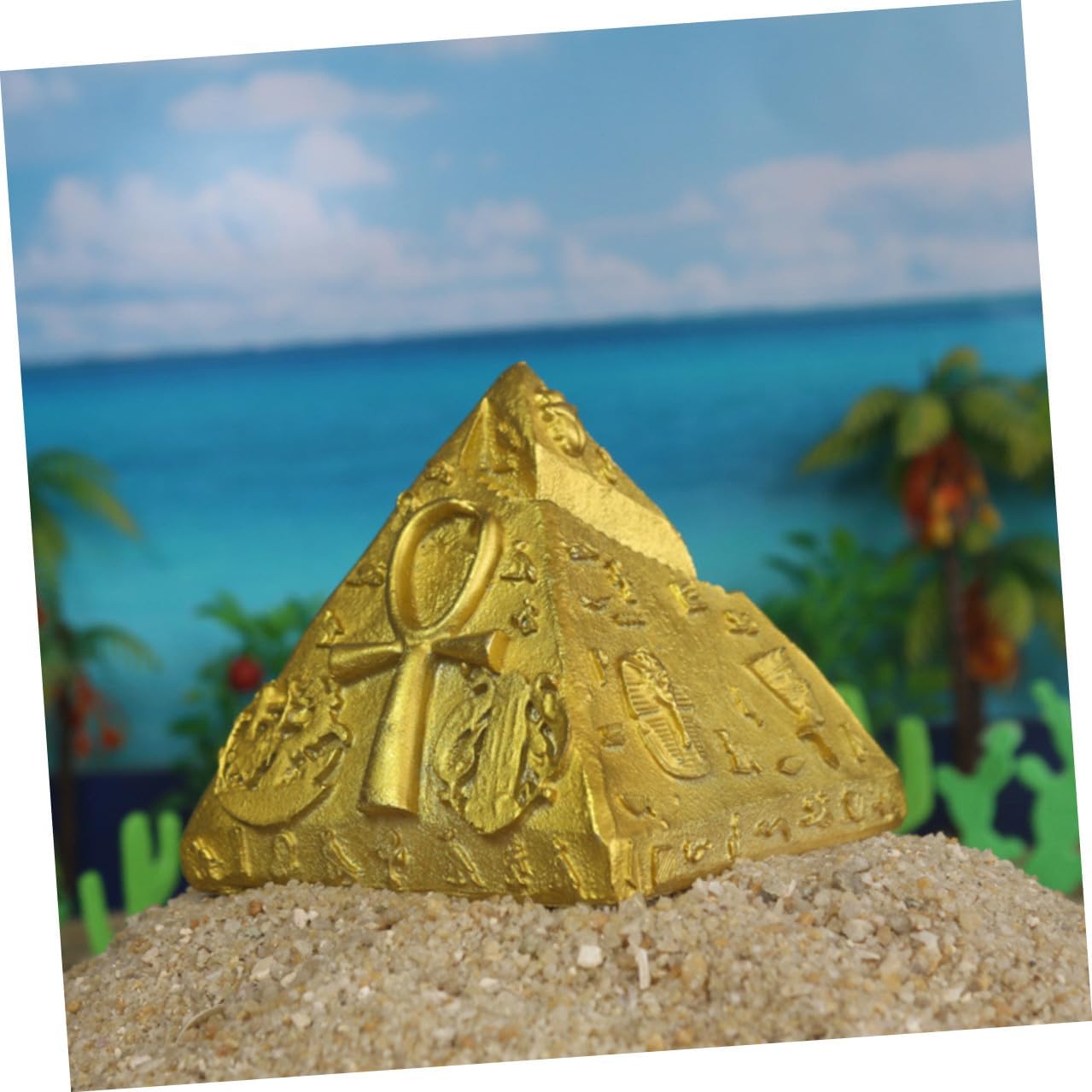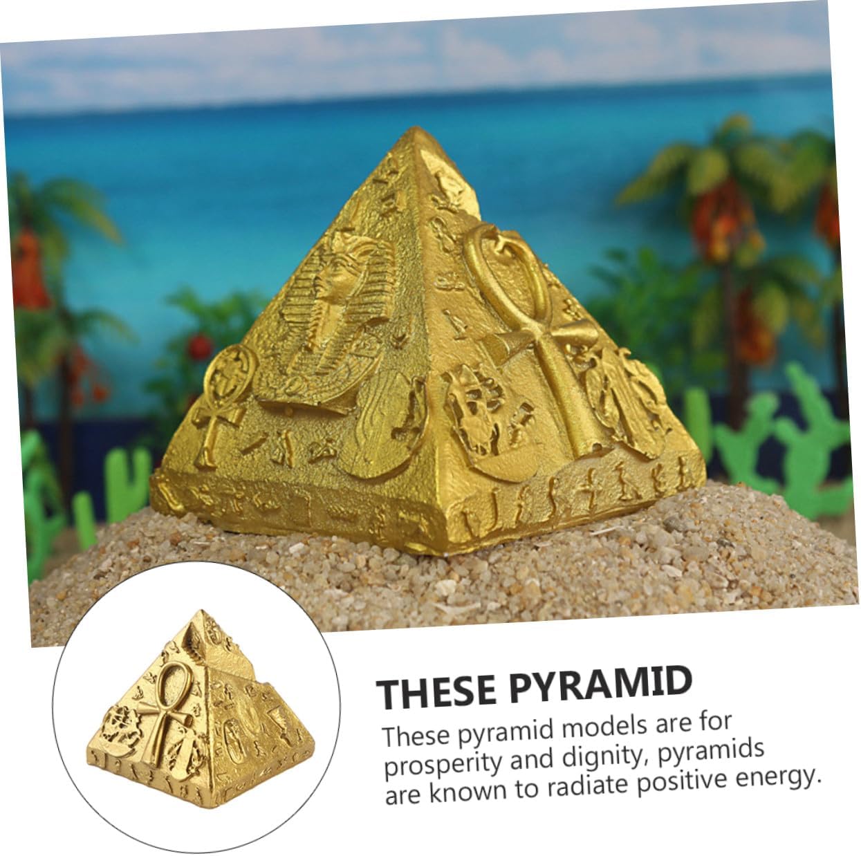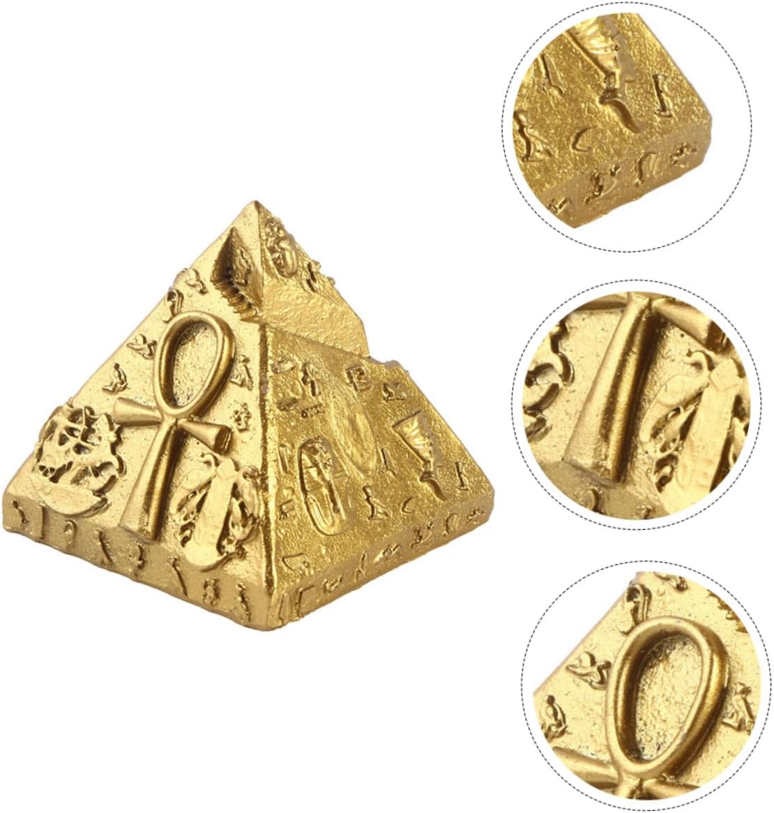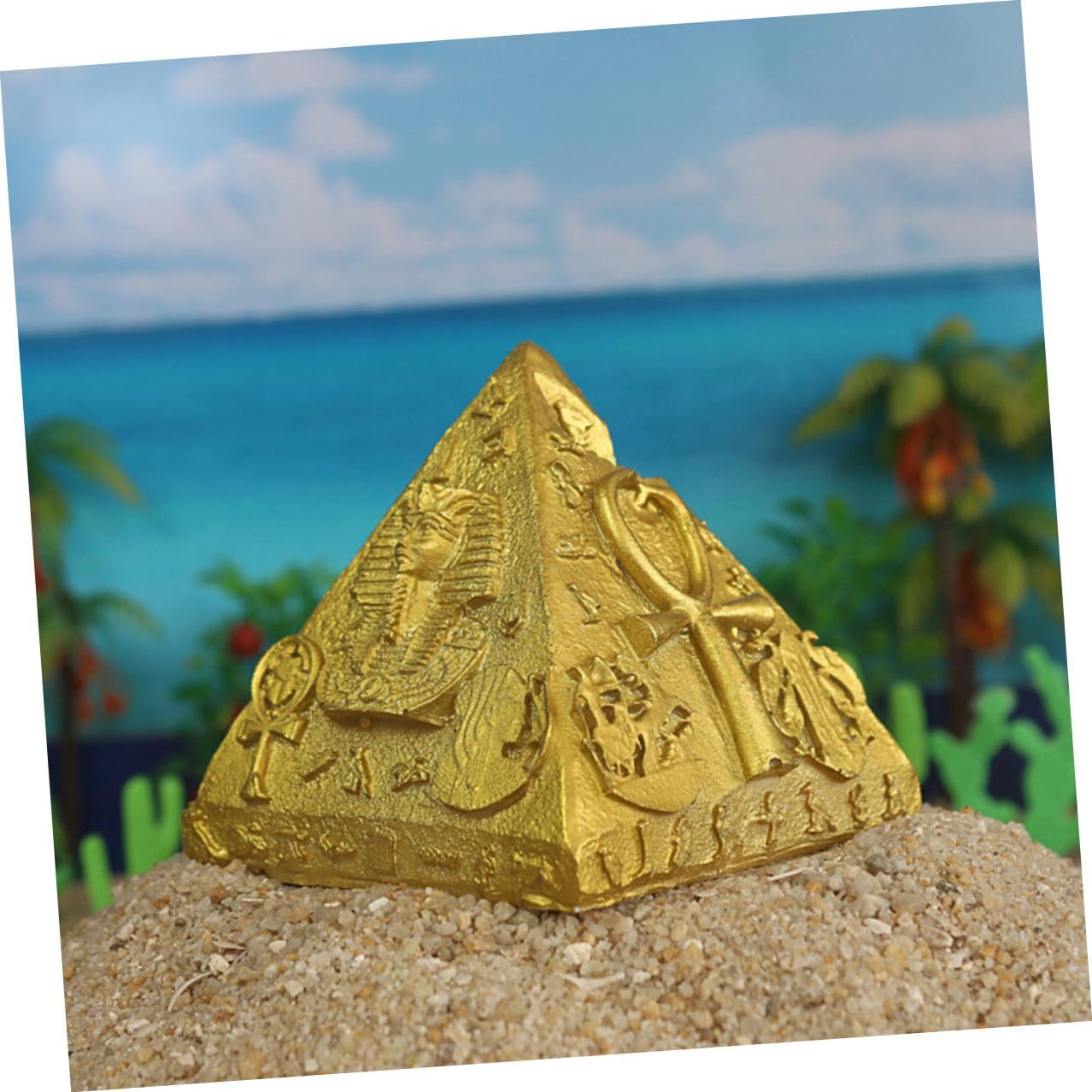 Ornamenti piramidali egiziani: possono essere usati come decorazione o per la progettazione di tavoli da gioco con la sabbia, buon effetto decorativo, decorazione piramidale. Souvenir egiziani: splendidamente progettati e dettagliati, con alta fedeltà: non vorrai metterli giù. Decorazione da scrivania a forma di piramide Decorazione egiziana: il design colorato attira l'attenzione di tutti e aggiunge stile alla stanza; ornamenti piramidali Ornamento piramidale: realizzato in resina sintetica, resistente all'usura e adatto per un uso a lungo termine, decorazioni egiziane Scultura piramidale: delicata decorazione piramidale egiziana, accessori psicologici per tavoli di sabbia, decorazione del modello di edificio del mausoleo,