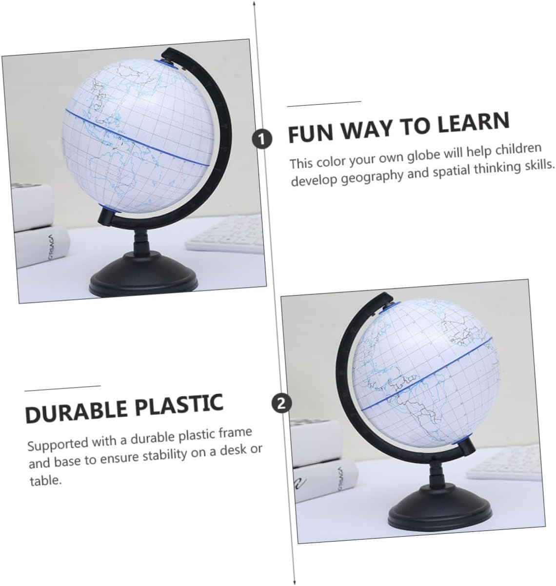 Forniture per la scuola domestica: colora il tuo globo, quindi espongilo su una scrivania, una cassettiera, un tavolo o uno scaffale per aggiungere un tocco di colore accattivante a qualsiasi spazio , giocattoli a forma di globo Globo terrestre incompiuto: il nostro globo fai da te da colorare fornisce un 3d, consentendo ai di geografia mentre individuano le masse continentali sul globo, globo terrestre incompiuto Struttura di alta qualità: telaio in plastica e supporto per garantire stabilità sul tavolo, mappamondo da dipingere, mappamondo fai da te per Globi fai da te per : il globo è un buon prodotto educativo che può aiutare i ad apprendere la conoscenza della geografia e la comprensione del mondo, strumento di apprendimento della geografia Globo interattivo: è ampiamente utilizzato per l'apprendimento dei in casa, in ufficio, in negozio, come decorazione da scrivania, come globo per