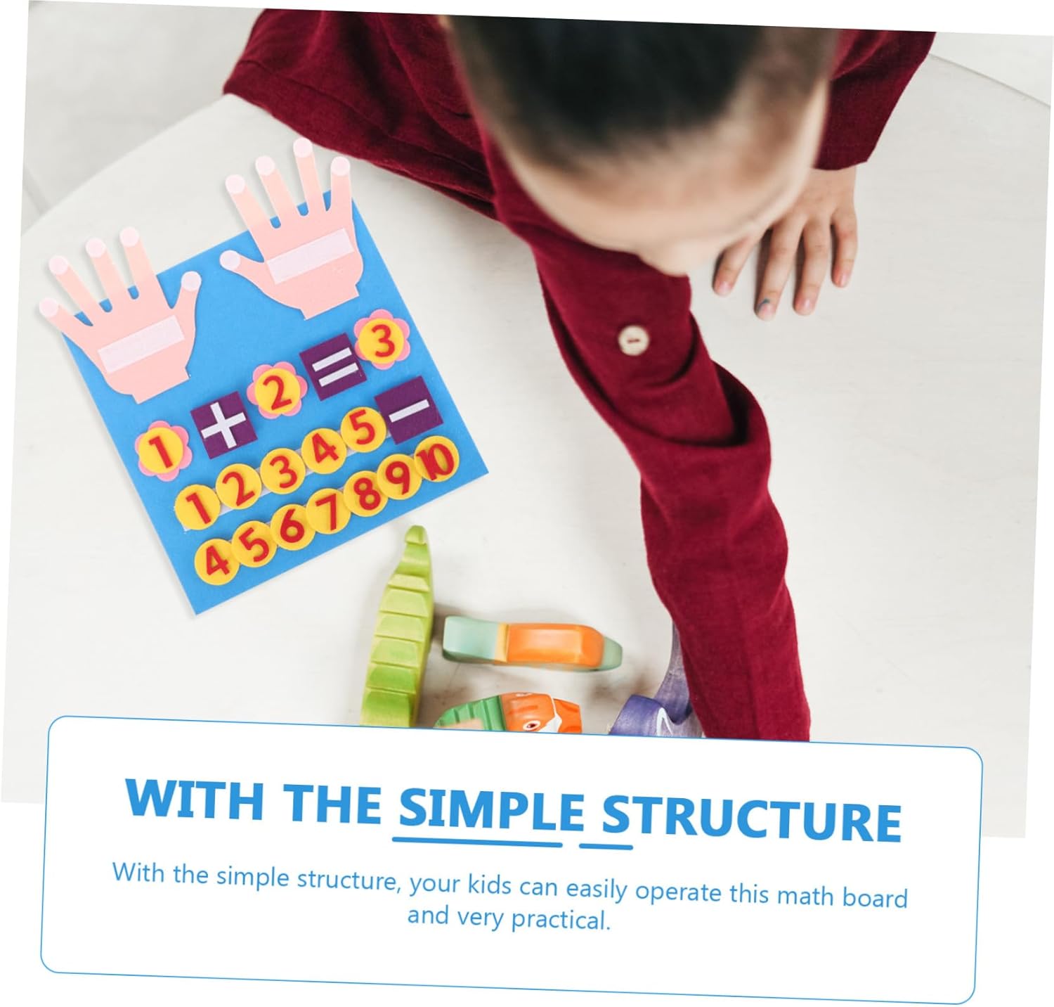 Riconoscimento matematico per addizioni e sottrazioni con le dita: la lavagna matematica è realizzata in feltro, robusta, sicura, durevole e pratica da usare, giocattolo matematico per la matematica dei numeri con dita in feltro per: struttura semplice, puoi utilizzare facilmente questa lavagna matematica ed è molto pratica, giocattolo matematico per i più piccoli Per i più piccoli: utilizza tecnologia e ingegneria avanzate per garantire la funzione pratica, la qualità e la bellezza del prodotto, manipolatori per bambini in età prescolare, giocattoli matematici con numeri con le dita: numeri chiari e apprendimento aritmetico accurato, giocattoli educativi, giocattoli durevoli e lisci per bambini giocattoli educativi per bambini piccoli: tavola matematica per addizioni e sottrazioni elementari per giochi di addizione e sottrazione facili da usare e molto pratici