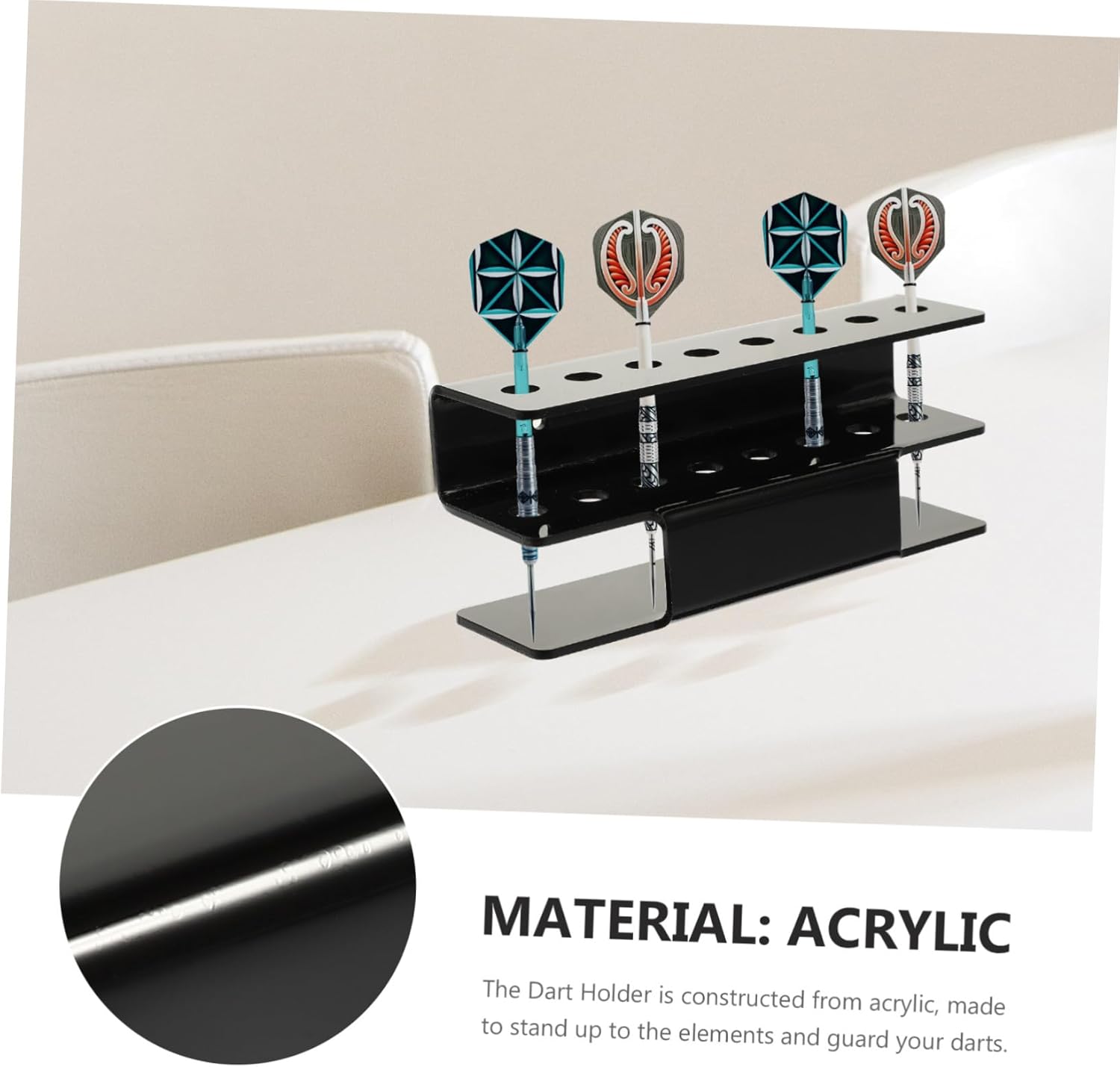 Il supporto per freccette manterrà i tuoi accessori per freccette ben organizzati e ordinati, riducendo il disordine Può prevenire efficacemente che le tue freccette vengano danneggiate, meraviglioso e bello Progettato per freccette con punta in acciaio, freccette con punta, ecc. sottile per un trasporto facile e comodo Organizzatore di freccette portatile e leggero per interni, evita che le tue freccette vengano perse, così puoi riporle per il prossimo utilizzo Il supporto è realizzato in acrilico, realizzato per resistere agli elementi e proteggere le tue freccette