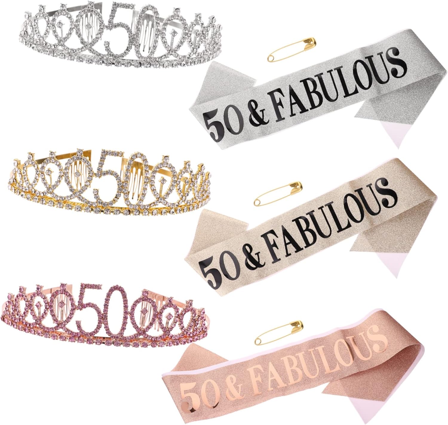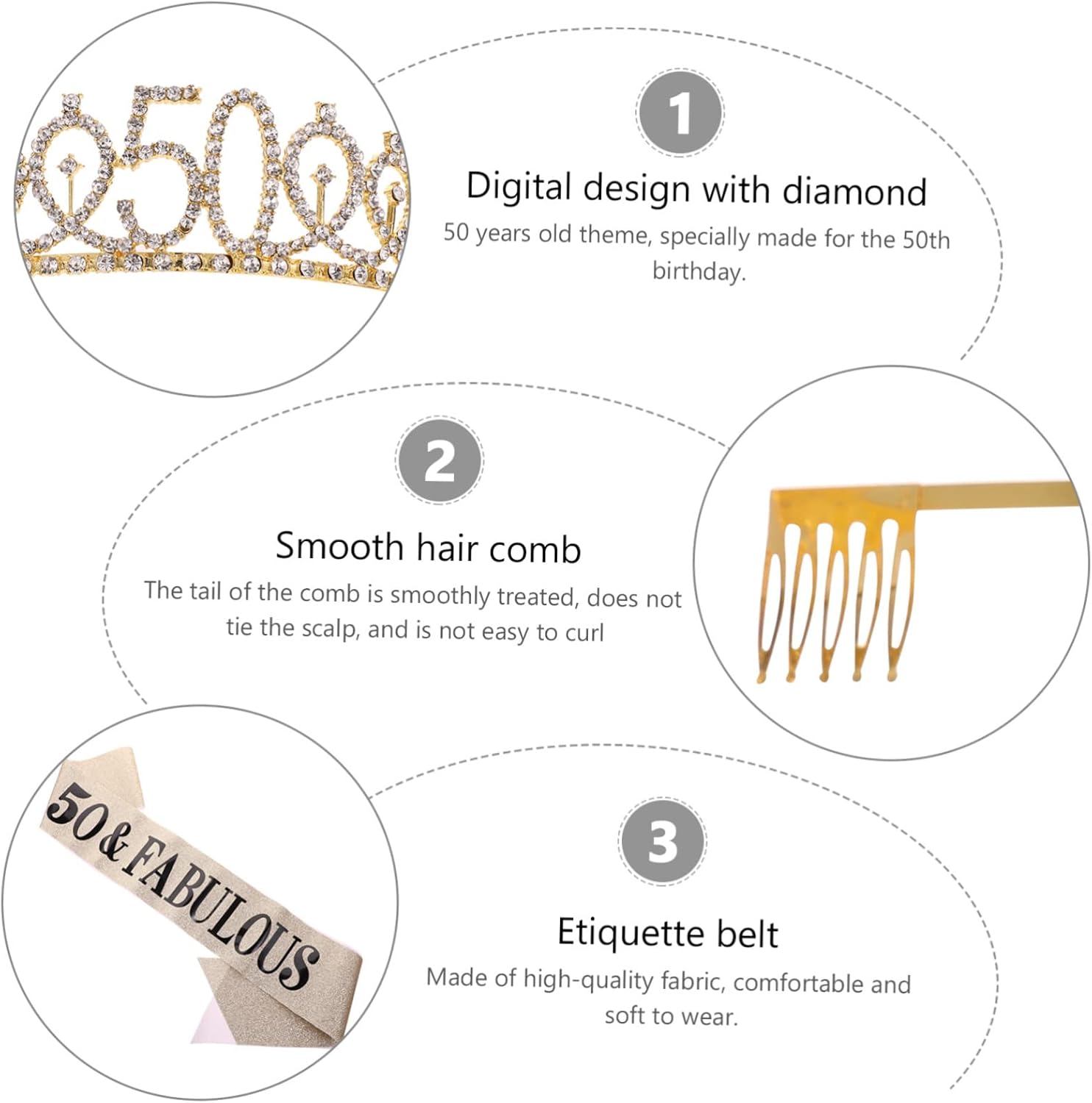Fascia: include una e una cintura di galateo, rendi la tua festa di compleanno più straordinaria, fascia per il 50° compleanno Fascia per feste: un set di bellissime decorazioni renderà il tuo compleanno indimenticabile, per feste di compleanno Cerchietto per : set di corone con fascia glitterata e scritte eleganti che adattano perfettamente alle foto. cerchietti per Fascia per compleanno: una perfetta decorazione di gioielli scintillanti per il compleanno, per regalarti un momento memorabile, copricapo da festa Diademi da compleanno per donna: perfetti per le feste, ti fanno sentire speciale, cintura con etichetta per le feste