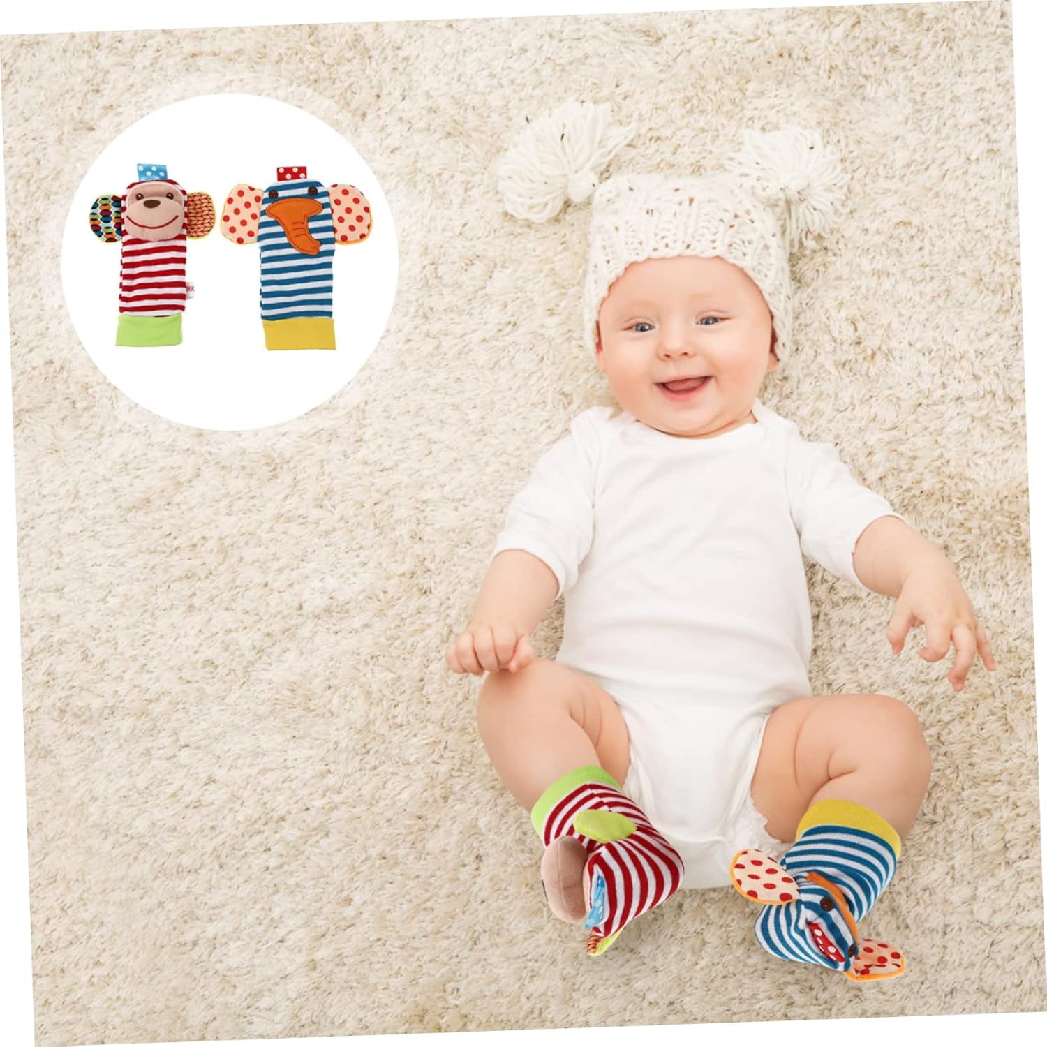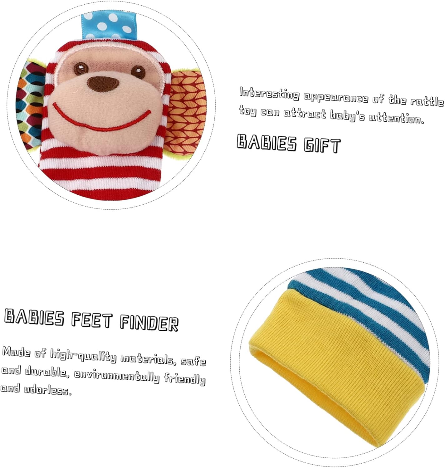 Bambini: è un bambino e il suono nitido susciterà l'interesse del bambino, indosserà il sonaglio. Cercatori di piedi infantili: il divertente giocattolo può allenare la discriminazione e la coordinazione occhio-mano del tuo bambino, il giocattolo da stringere. Sonagli neonati: il giocattolo colorato attira il bambino a giocarci facilmente, il bambino può intrattenersi per un periodo, giocattolo per la ricerca dei piedi. Giocattolo a sonaglino per bambini: l'aspetto interessante del giocattolo a sonagli può attirare l'attenzione del bambino, la caviglia sonagli il bambino. Giocattolo a sonagli: il design colorato del giocattolo a sonagli aiuta a stimolare le capacità visive del bambino, sonagli per bambini.