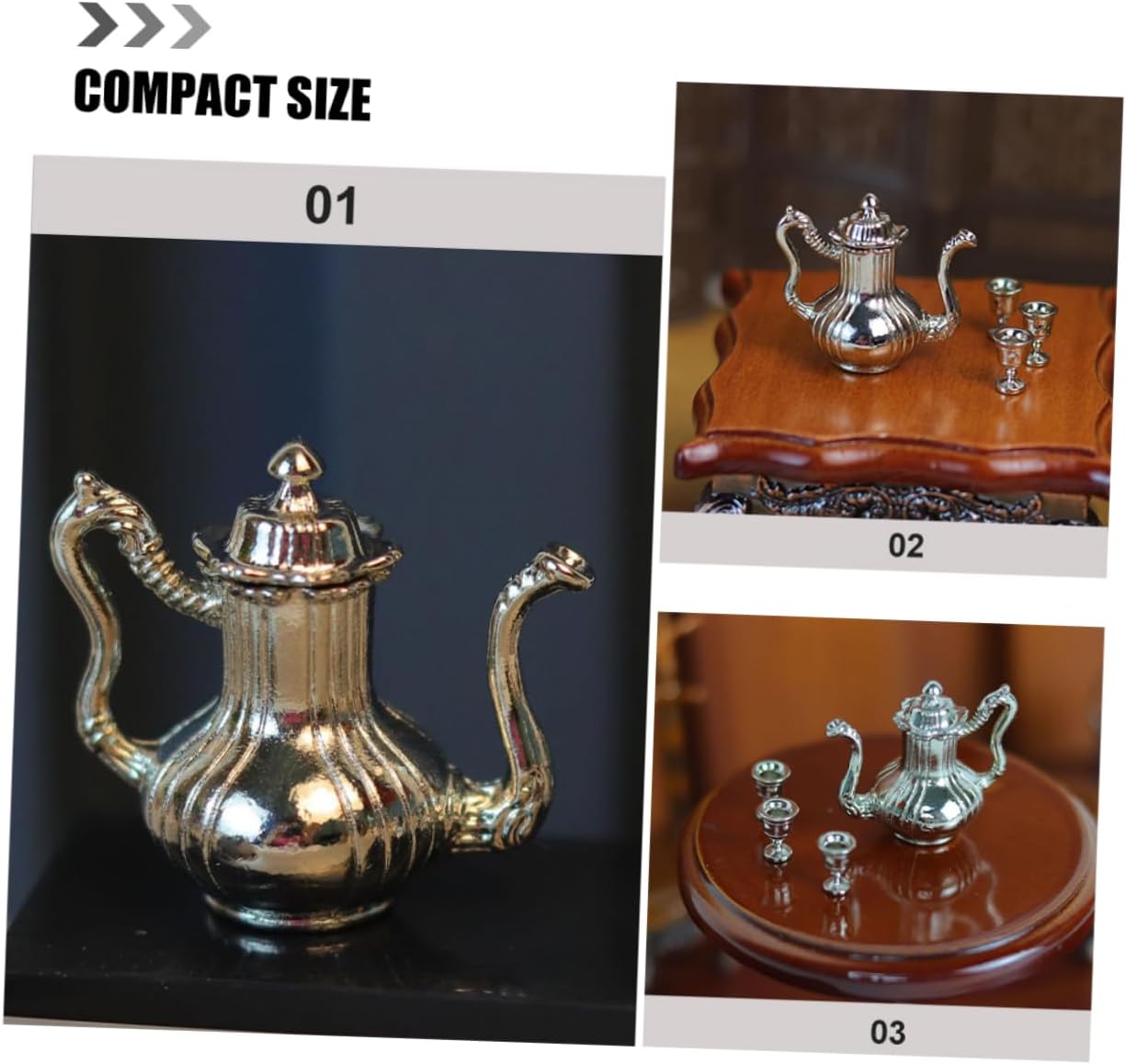 Tazze da tè in miniatura: adatte a vari luoghi della casa delle bambole, rendendo la tua casa delle bambole più vivace e interessante con questo mini set, mini casa delle bambole teiera. Accessori per casa delle bambole in miniatura: le dimensioni compatte della teiera consentono un facile posizionamento in qualsiasi scena della casa delle bambole, rendendola un accessorio versatile per la tua collezione, tazza da tè in miniatura. Oggetti di scena per foto modello di teiera: antico, aggiunta di atmosfera culturale alla tua casa delle bambole, soddisfa le tue esigenze di decorazione, mini accessori per la casa delle bambole. Giocattoli per bambini: progettati con stile squisito e vintage, queste tazze da tè e teiere in miniatura sembrano eleganti e , giochi di finzione in cucina. Tazza da caffè in miniatura: adatta a diverse scene della casa delle bambole, rendendo la tua casa delle bambole più colorata con questo set da tè e giocattoli.