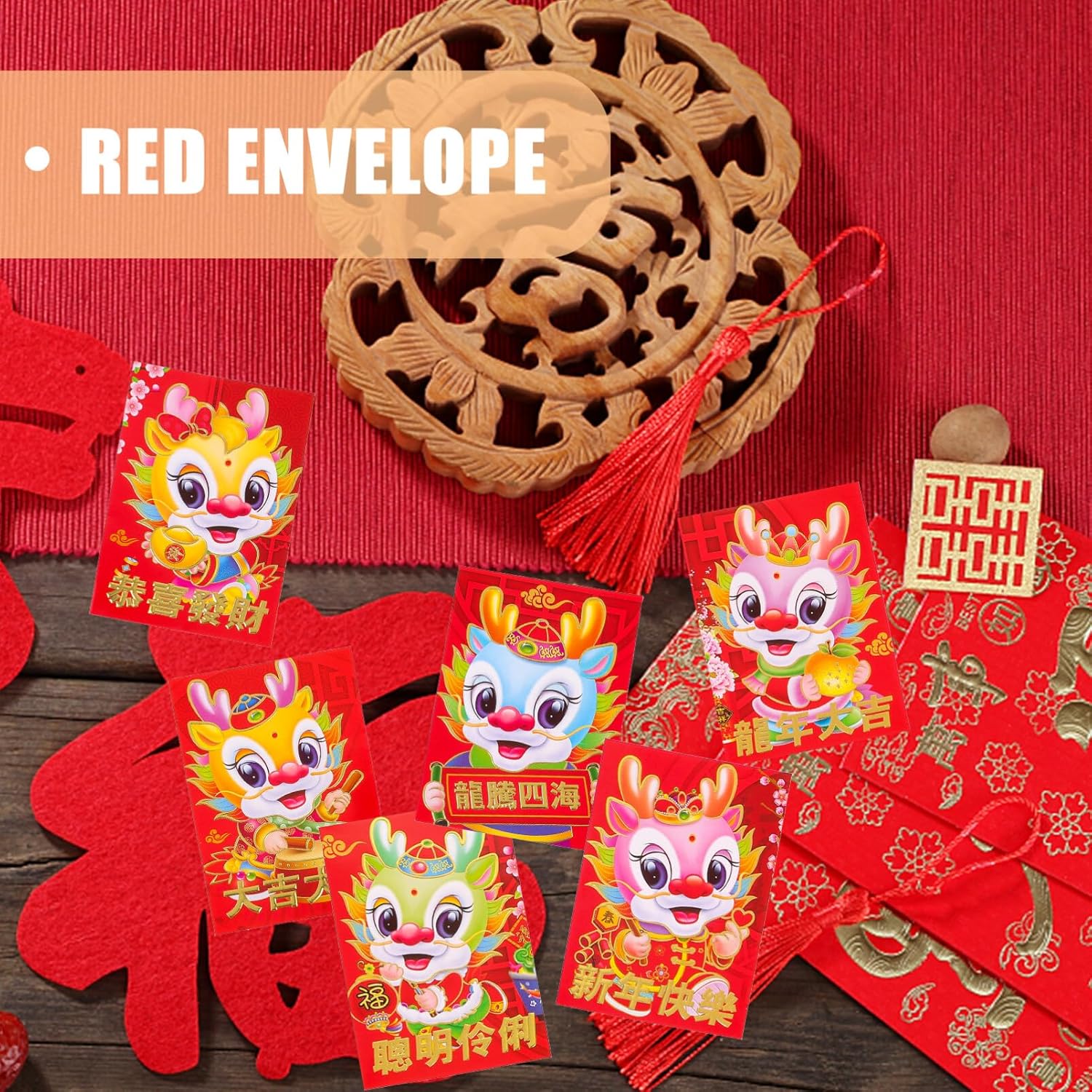 Design esterno unico: il colpo rosso del capodanno combina il monDJAHR cinese del design esterno del drago con una forte atmosfera di Capodanno Creatività: la busta rossa per il capodanno cinese presenta un design in cartone che aggiunge carinezza e creatività alla busta rossa REALIZZATE DA MATERIALI DI CARTA - Le buste rosse per soldi della fortuna primaverili sono tradizionalmente realizzate con materiali di carta, durevoli e non facili da danneggiare Scenari applicabili: puoi usare questa busta rossa per inviare benedizioni quando prepari soldi fortunati per il capodanno cinese o lo invii a una festa di nozze Regalo di Capodanno: puoi regalare questa busta rossa per il capodanno lunare cinese alla tua famiglia e ai tuoi amici come regalo di Capodanno per migliorare l'atmosfera di Capodanno
