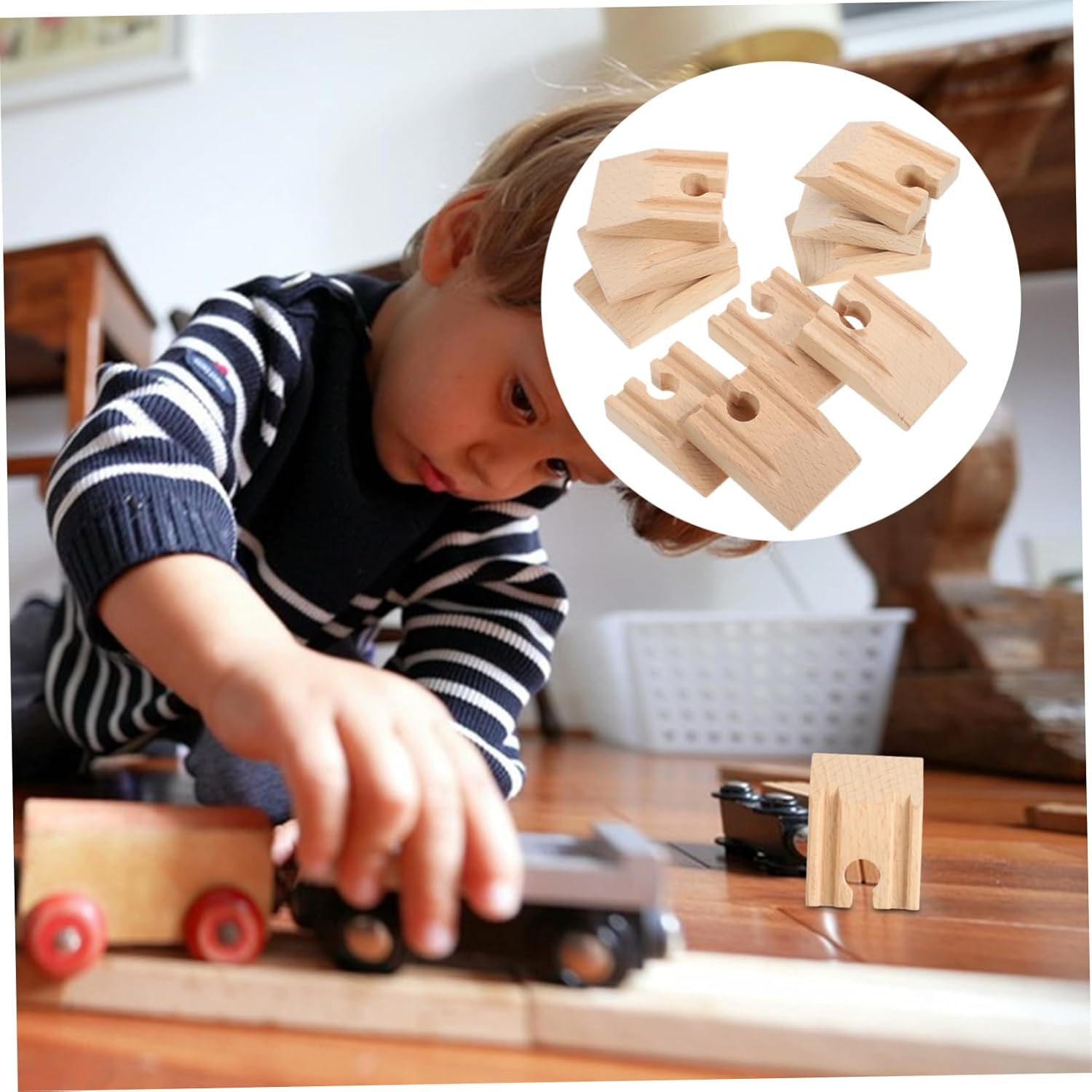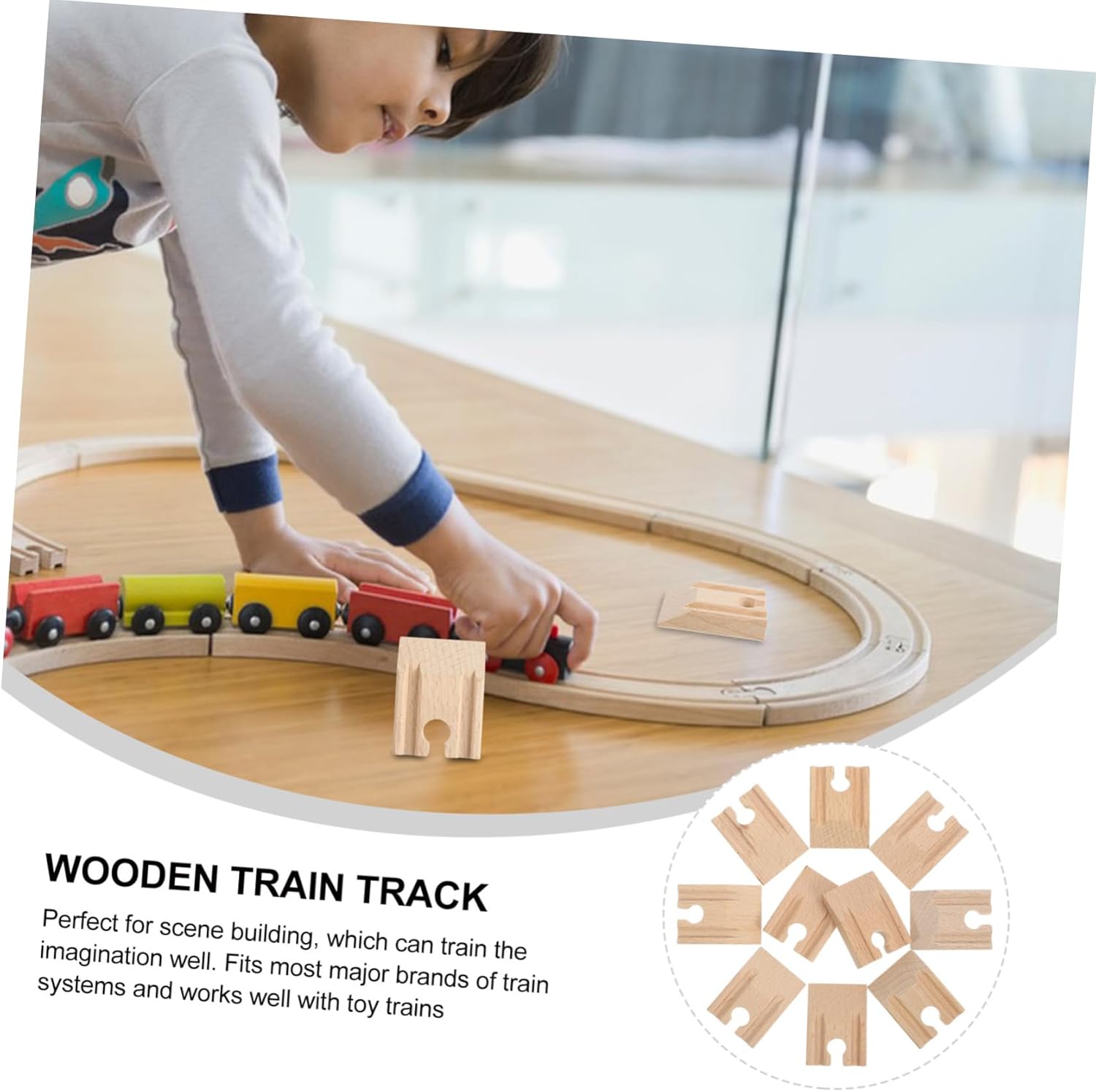 Accessori per binari del treno: il materiale è sicuro e leggero, resistente all'usura e pratico per un uso duraturo, giocattolo da gioco per binari del treno. Giocattolo di legno: il binario di legno sostitutivo del treno aiuta a migliorare la capacità pratica di costruire il proprio binario del treno, giocattoli di legno. Parti di ricambio per binari ferroviari: il modello di binario ferroviario concavo ha una struttura semplice, molto facile da giocare e installare, binario ferroviario in legno. Gioco in pista: adatto a molti luoghi, feste, famiglie, spiagge, cortili e altre attività, divertente giocattolo in pista. Binari in legno: consente un assemblaggio flessibile, consentendo la creazione di varie formazioni di binari basate sull'immaginazione, accessori per modellismo ferroviario.