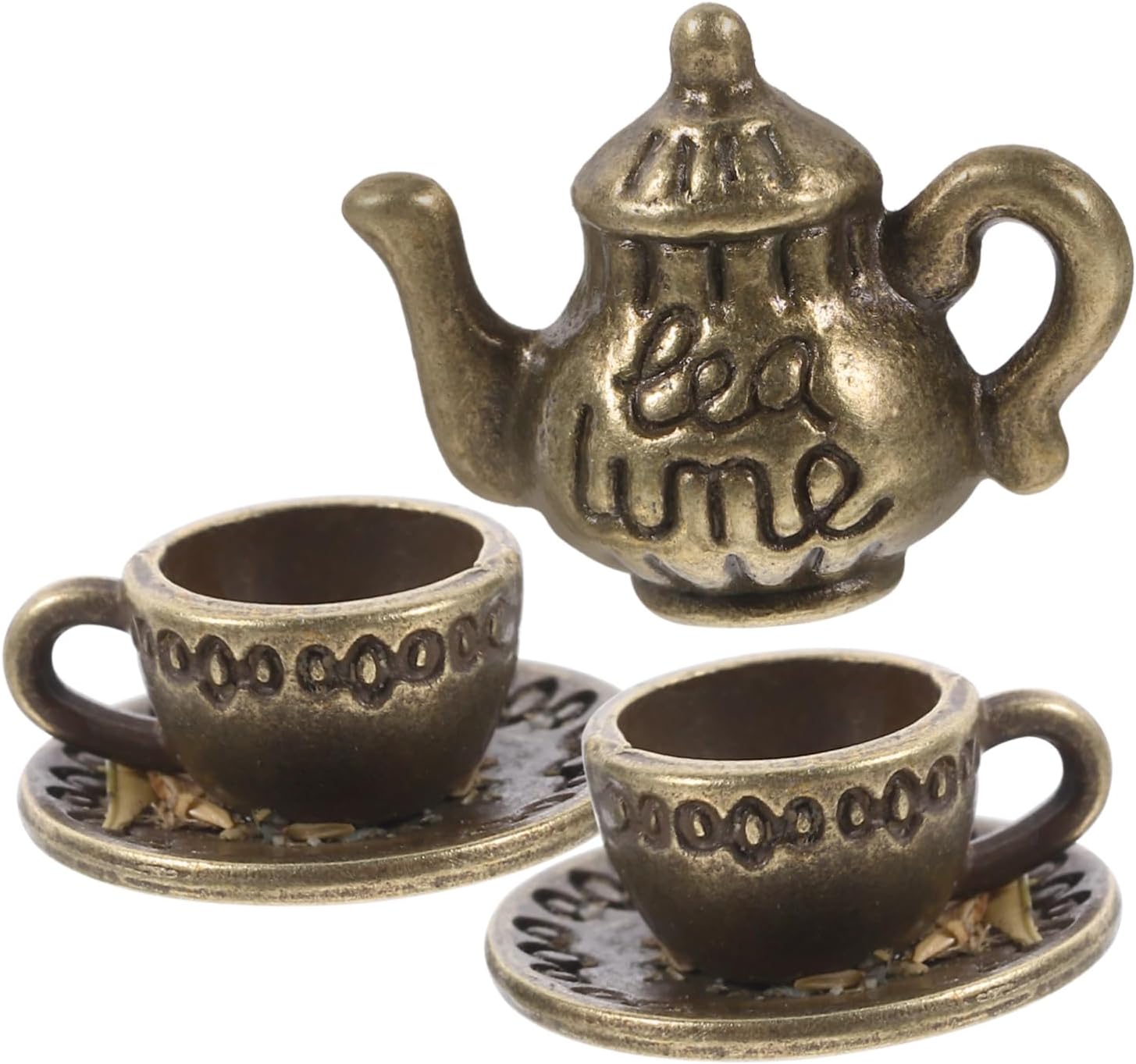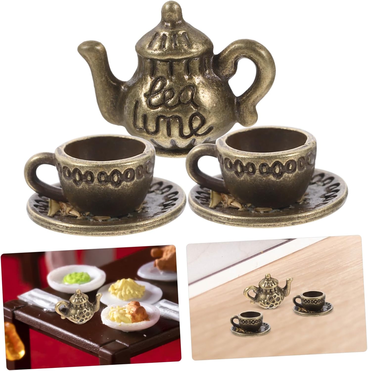 Mini accessori per la casa delle bambole: modelli di set da tè in miniatura finemente realizzati per la casa delle bambole, vintage, che aggiungono un tocco classico alla casa delle bambole, mini accessori per la casa delle bambole. Tazza da tè per casa delle bambole: antico, aggiunge un tocco di alla tua casa delle bambole, crea la tua scena unica della casa delle bambole, tazze da tè in miniatura. Accessori per il tè: i modelli di set da tè in miniatura squisiti e realistici possono essere utilizzati per mini accessori per la casa delle bambole, accessori per la cucina della casa delle bambole. Mini tazza d'acqua: sicura e comoda da usare, non facile da rompere o deformare, riutilizzabile e può essere applicata a lungo sul piano cottura. Forniture per la cucina della casa delle bambole: realizzati con materiali in lega e fatti a mano, garantendo la qualità e la durata del set e degli accessori.