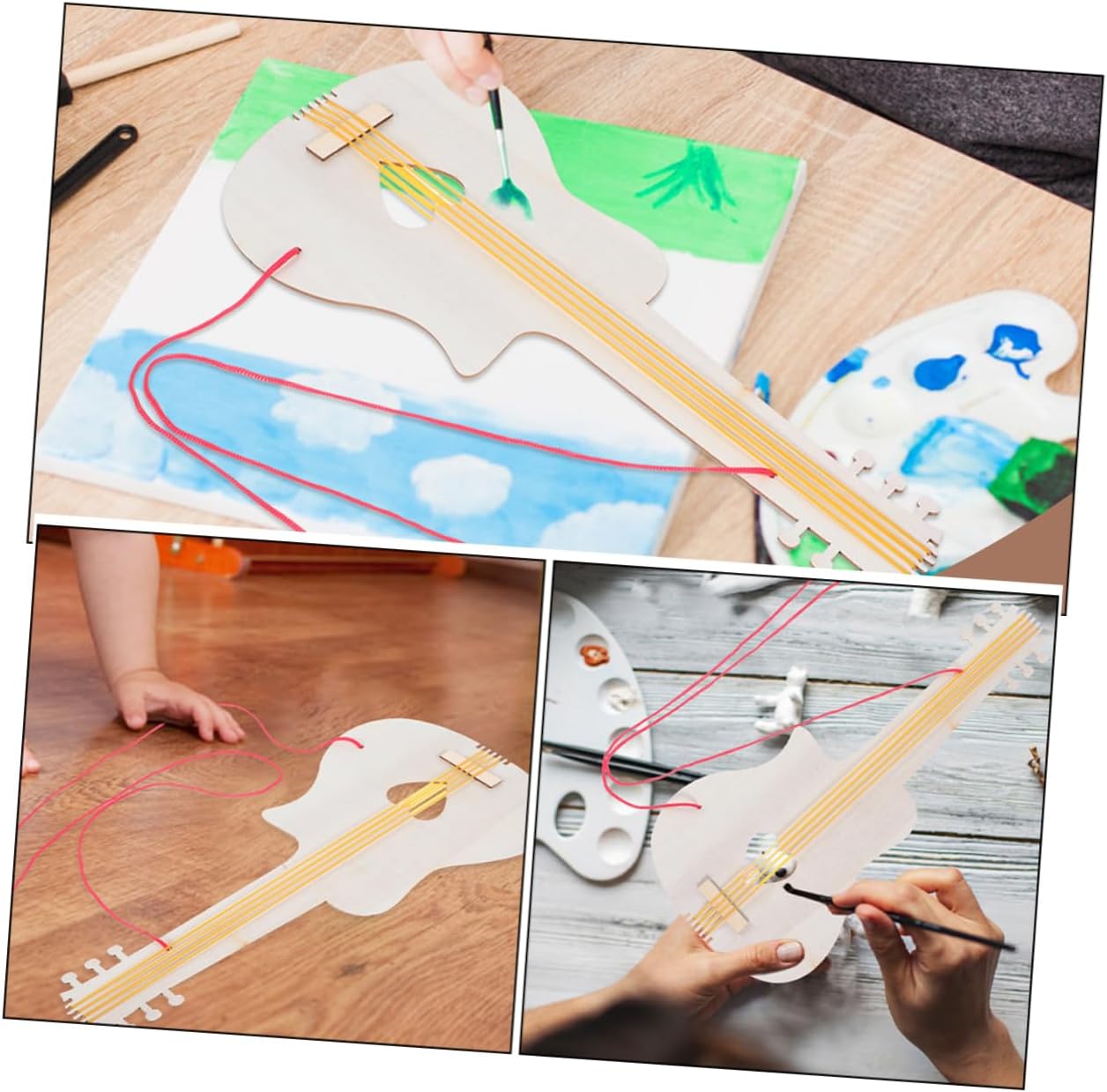 Educativo e divertente: ottimo per l'uso in casa e negli asili, aiuta a sviluppare l'amore per la musica divertendosi, ritagli di legno, artigianato in legno fai da te Creatività fai da te: incoraggia il tuo talento artistico con una tela bianca per dipingere e decorare la tua chitarra, mini chitarra in legno, di chitarra Costruzione solida: realizzata in legno, questa chitarra è adatta per i giovani che giocano attivamente, chitarra in legno, artigianato ornamentale per Design ergonomico: progettata pensando ai più giovani, questa chitarra è facile da impugnare e suonare, incoraggiando l'esplorazione musicale, chitarra in legno, giroscopio in legno dipinto Dimensioni: su misura per adattarsi alle piccole di , rendendolo più comodo e accessibile per loro per imparare, chitarra , chitarra fai da te