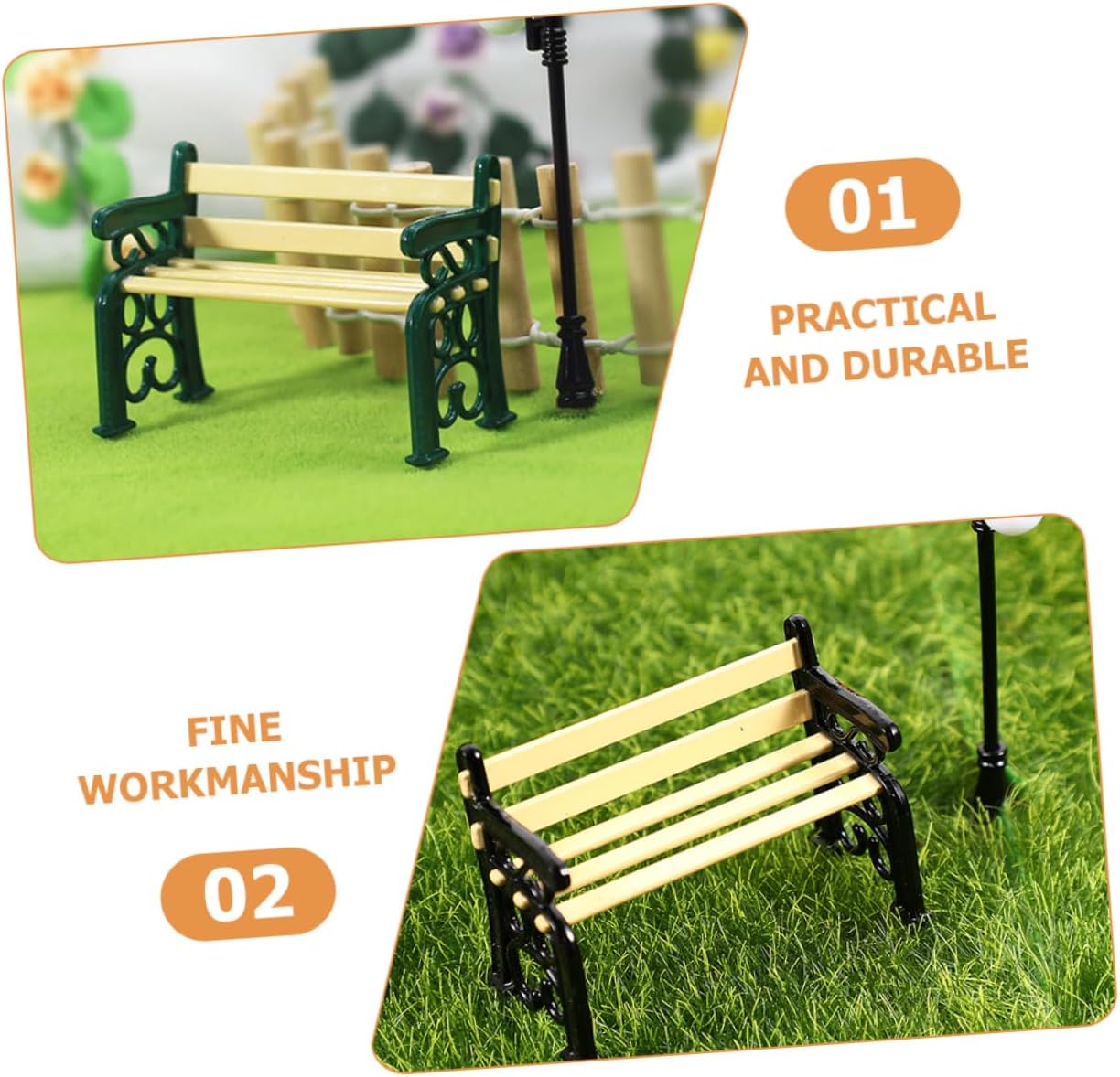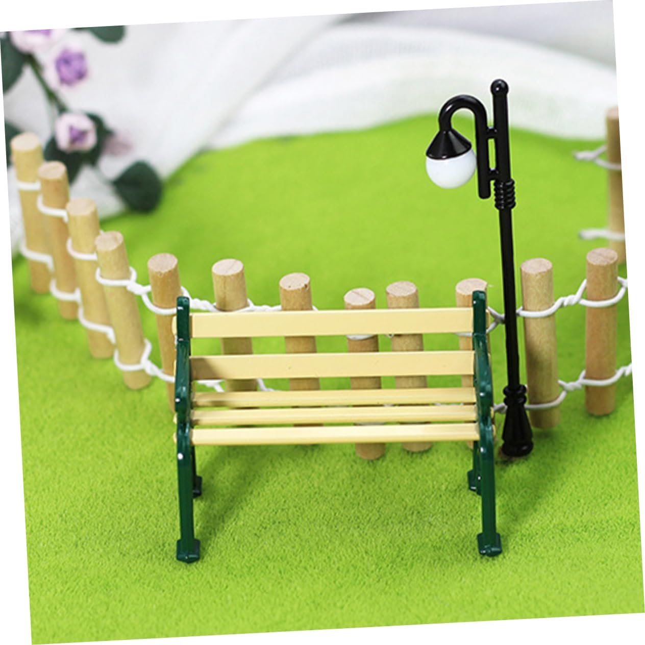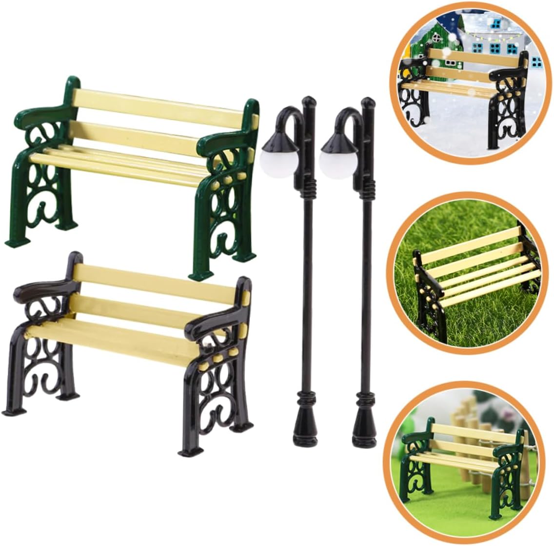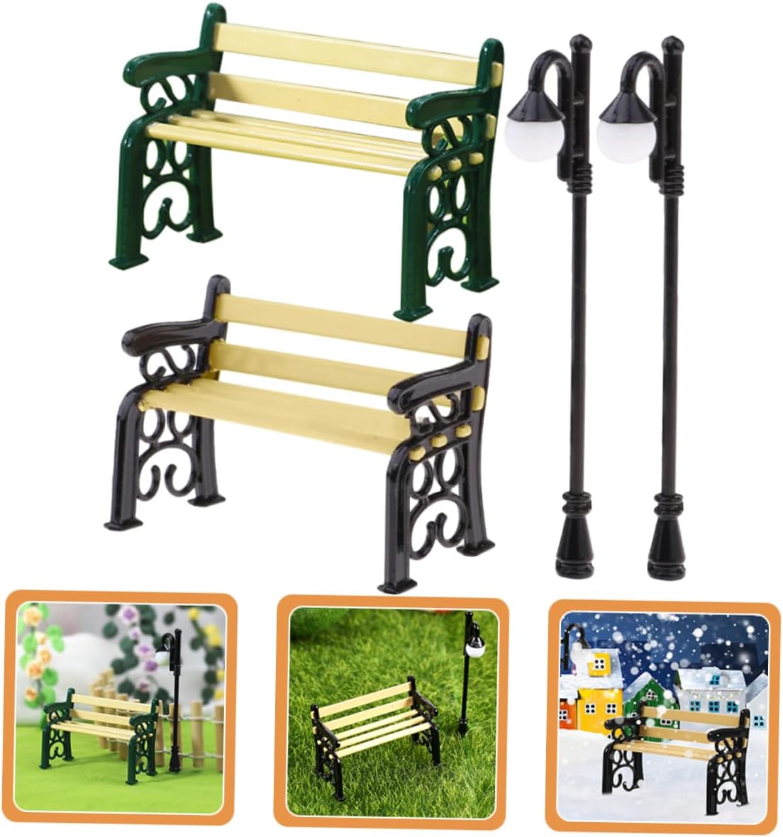 Luci per lampioni: decorazioni natalizie per case delle bambole: sono realizzate con materiali accuratamente, finemente lavorate e possono durare a lungo. Ornamenti minimi per mobili: elevate prestazioni di resistenza all'usura, non facili da sbiadire, sicuri e pratici. Decorazioni per la casa: può essere posizionato anche in camera da letto come soprammobile per rendere la vostra stanza non più così monotona. Decorazione di mobili in miniatura: mini decorazione da giardino: questi modelli di panca e lampada sembrano realistici con il suo design raffinato e l'eccellente fattura. Mini modello di simulazione: invialo ai bambini, il bambino lo adorerà e potrà usarlo per decorare la sua casa giocattolo.