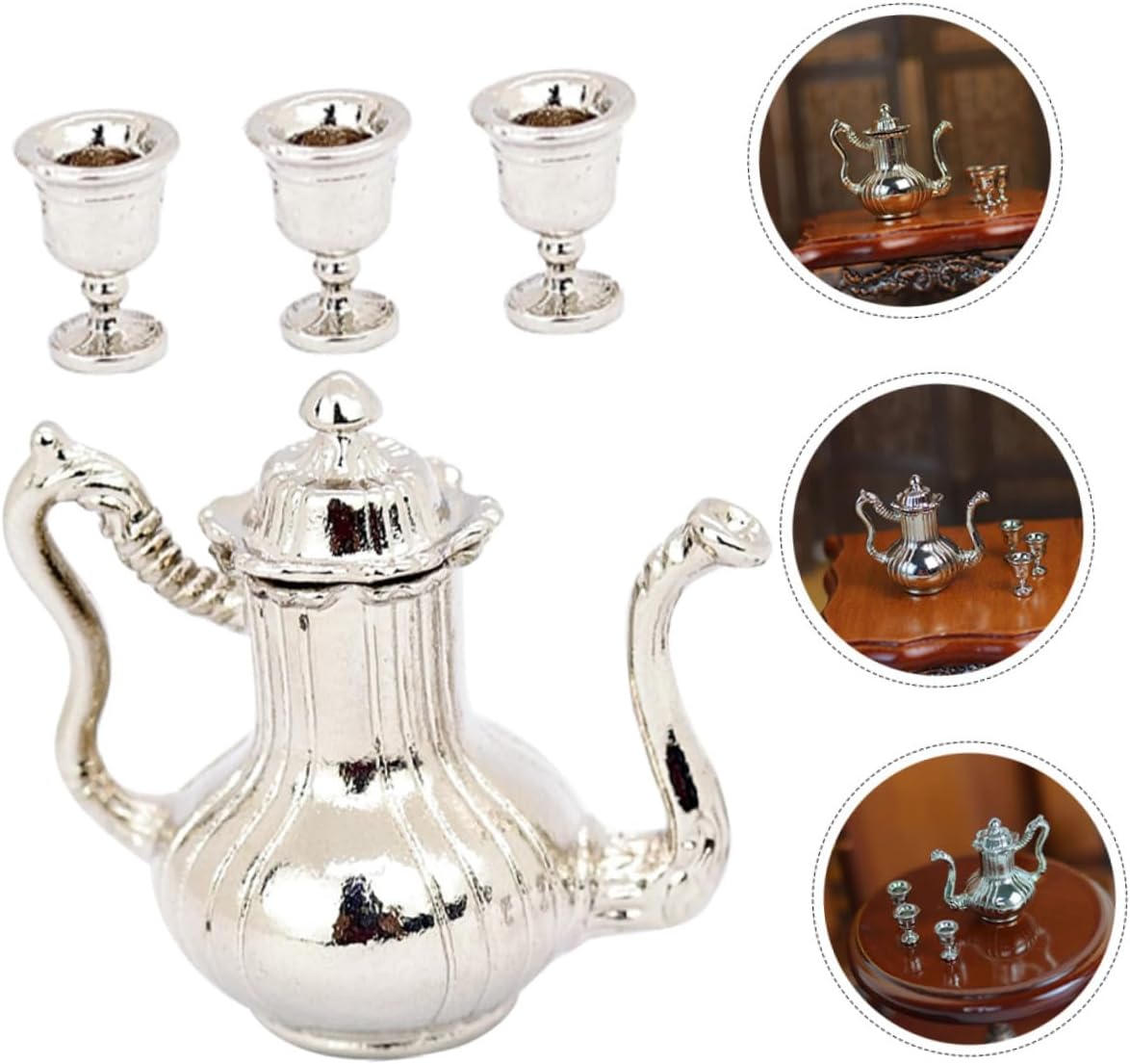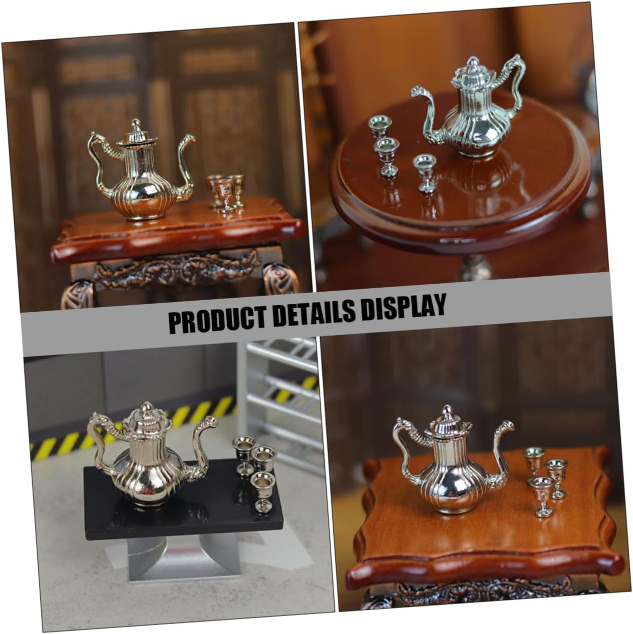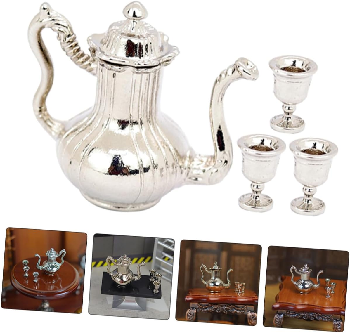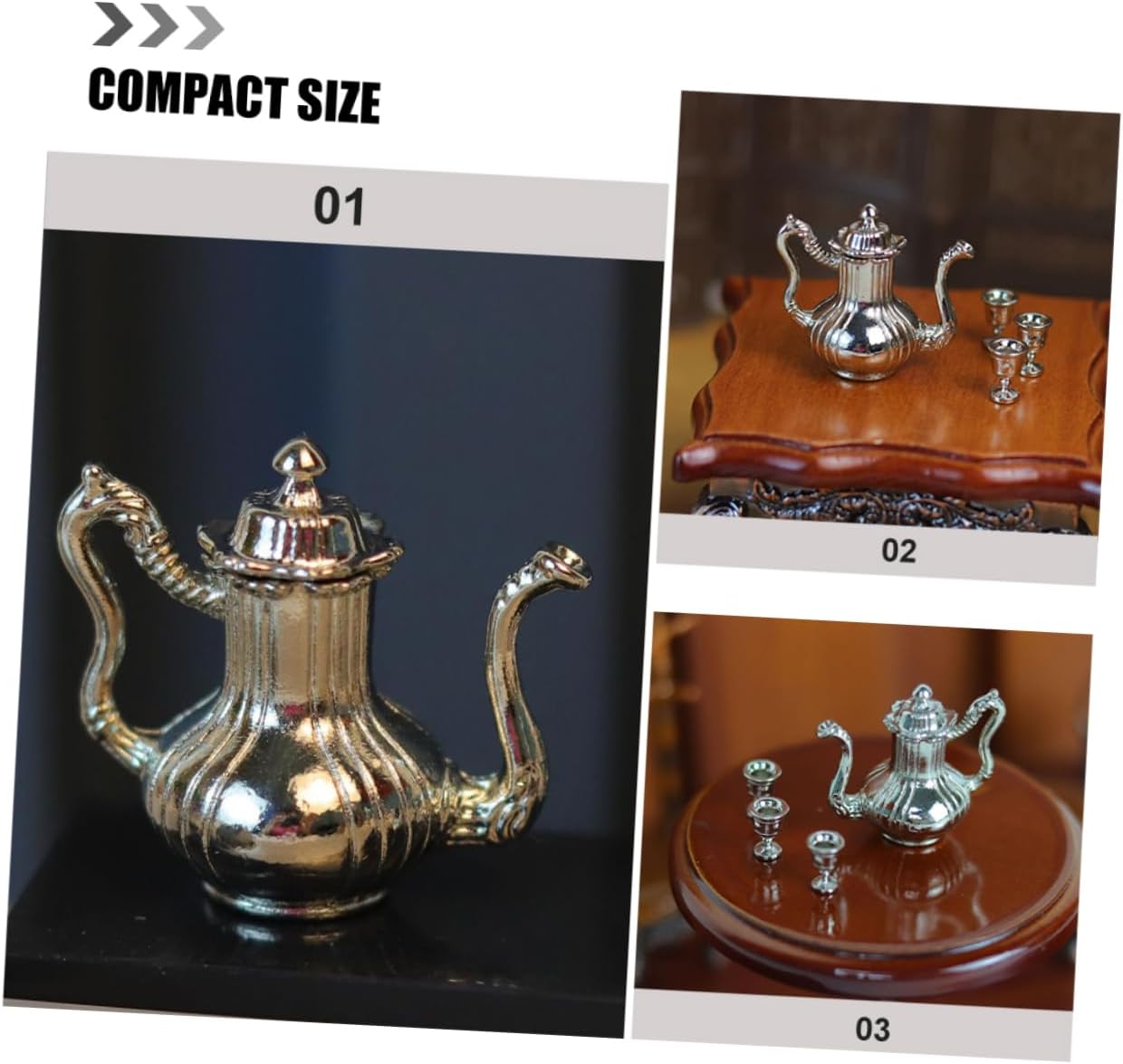 Teiera in miniatura: adatta a vari luoghi della casa delle bambole, rendendo la tua casa delle bambole più vivace e interessante con questo mini set, tazza da caffè in miniatura. Tazze da tè in miniatura: il mini ornamento è realizzato in materiale metallico con lavorazione delicata e buon effetto decorativo, tazza da tè della casa delle bambole. Mini decorazioni per la casa: accessorio essenziale per la casa delle bambole: come accessorio per la casa delle bambole, questa teiera in miniatura realistica è essenziale per completare la tua casa delle bambole, oggetti in miniatura. Giocattoli: presenta il brillante, offrendo un vivido godimento visivo e aggiungendo calore e alla tua casa delle bambole, giocattoli per bambini. Teiera finta da cucina: più modelli di set da tè da collezionare ed esporre, mostrando il tuo gusto unico, puoi decorare la tua casa delle bambole, giochi di ruolo finti.