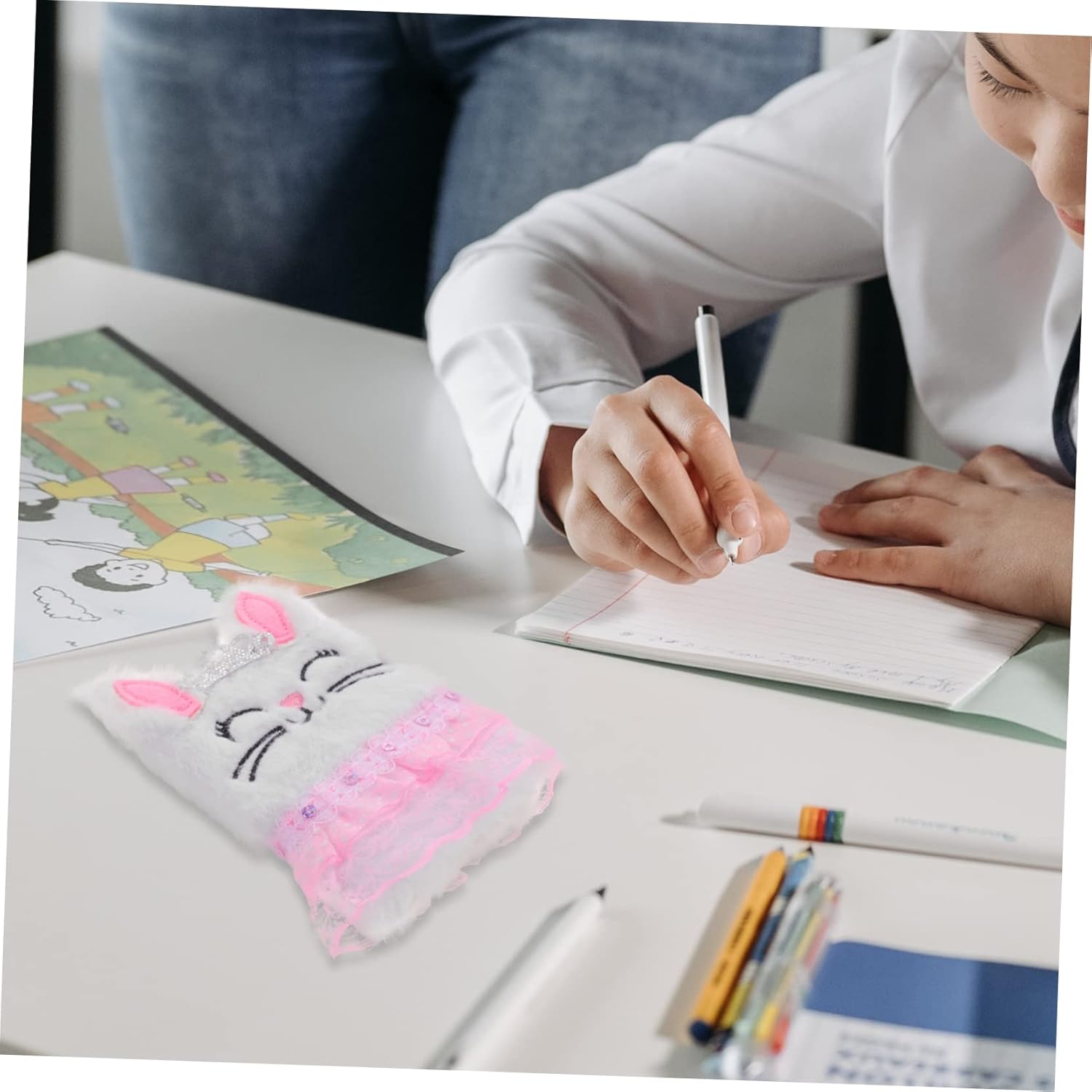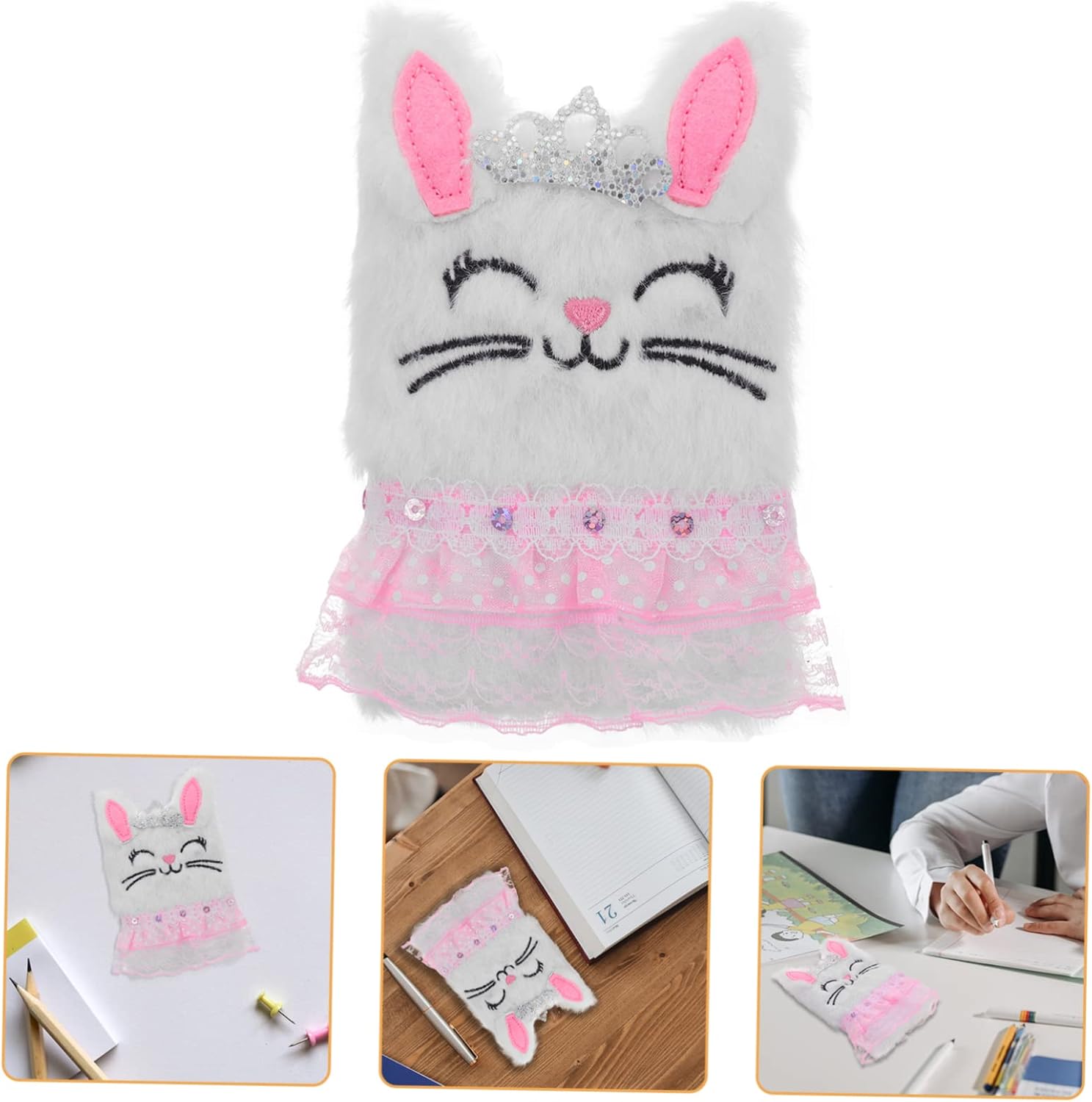 Quaderno per ragazze: è il miglior quaderno quotidiano per studenti, viaggiatori, impiegati e insegnanti, ecc., quaderno con coniglietto di peluche. Diario: quaderno a righe di carta con adorabile motivo in peluche, sfocati e fantastici, diario multifunzione. Taccuino per uso quotidiano: realizzato con copertina in peluche con carta liscia, presenta una superficie liscia e una buona sensazione tatto, taccuino a fumetti. Quaderno sfocato: i bambini possono scrivere ciò che pensano, pianificano o idee su questo quaderno o come diario, diario dei cartoni animati. Diario dei cartoni animati: adatto per uffici, aule, camere da letto, sale , soggiorni, hotel e altri luoghi, diario di peluche.