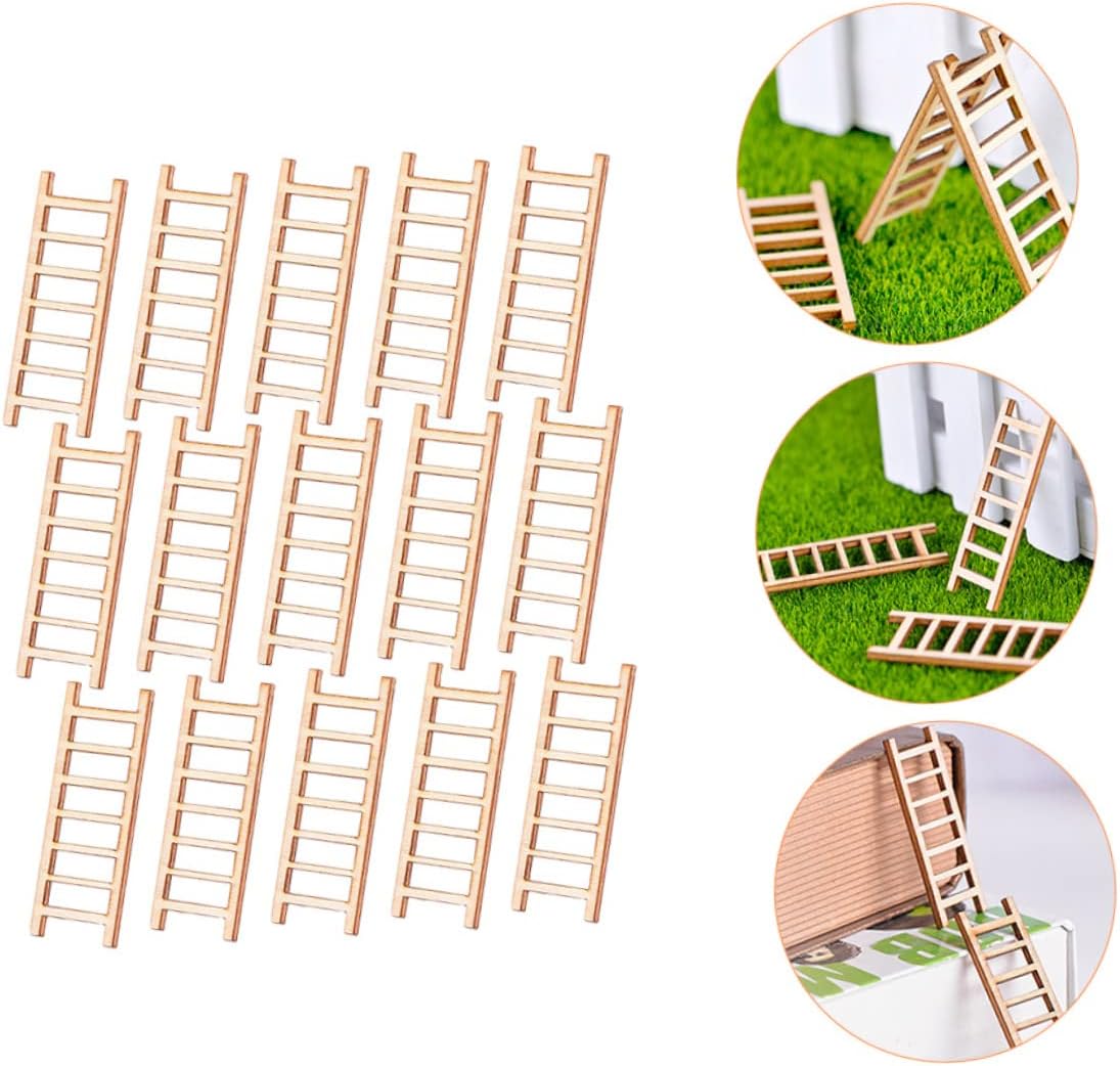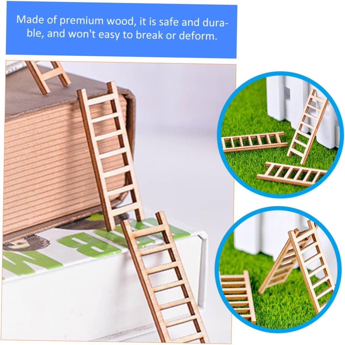 Casa in miniatura: dimensioni compatte per l'uso in mini casa, aggiungi calore e atmosfera di vita quotidiana, arredamento legnoso. Scala artigianale fai da te: l'ornamento della scala paesaggistica in miniatura è adatto a qualsiasi giardino e casa in miniatura, mini case. Scale da giardino fatato: ornamenti da giardino in miniatura per varie decorazioni, come fatati in miniatura, decorazioni vegetali di micro paesaggi, ecc., scala in miniatura. Scala per mobili in miniatura: con un design unico e chic, la tua mini casa sembra più calda e alla moda, scala per mobili. Oggetti di scena in legno per foto: usa questo mini accessorio fai-da-te per decorare la tua mini casa o la tua mini scala.