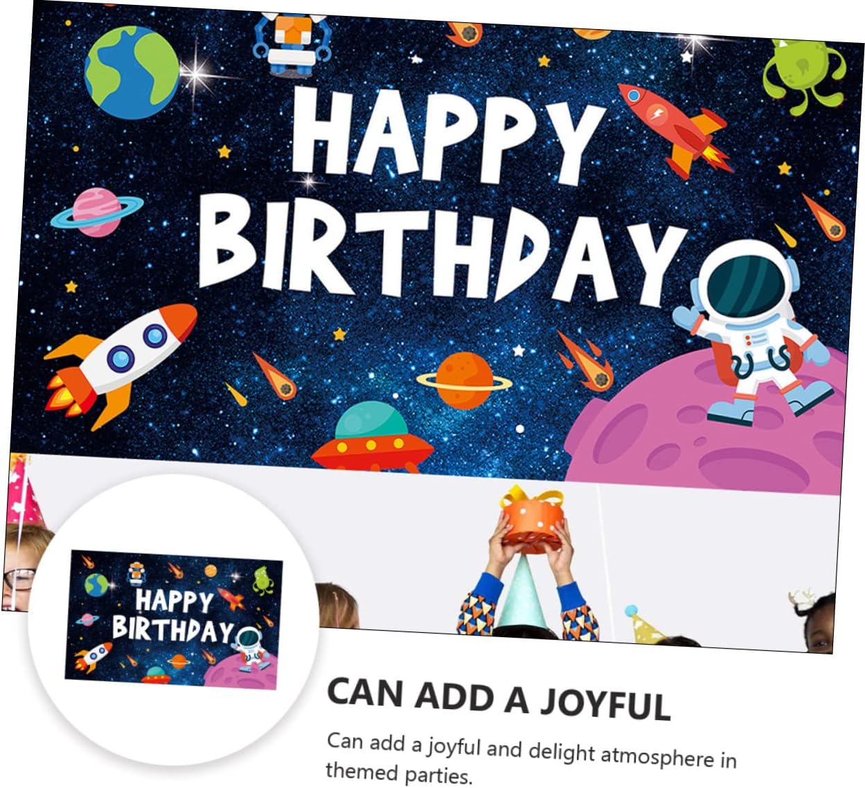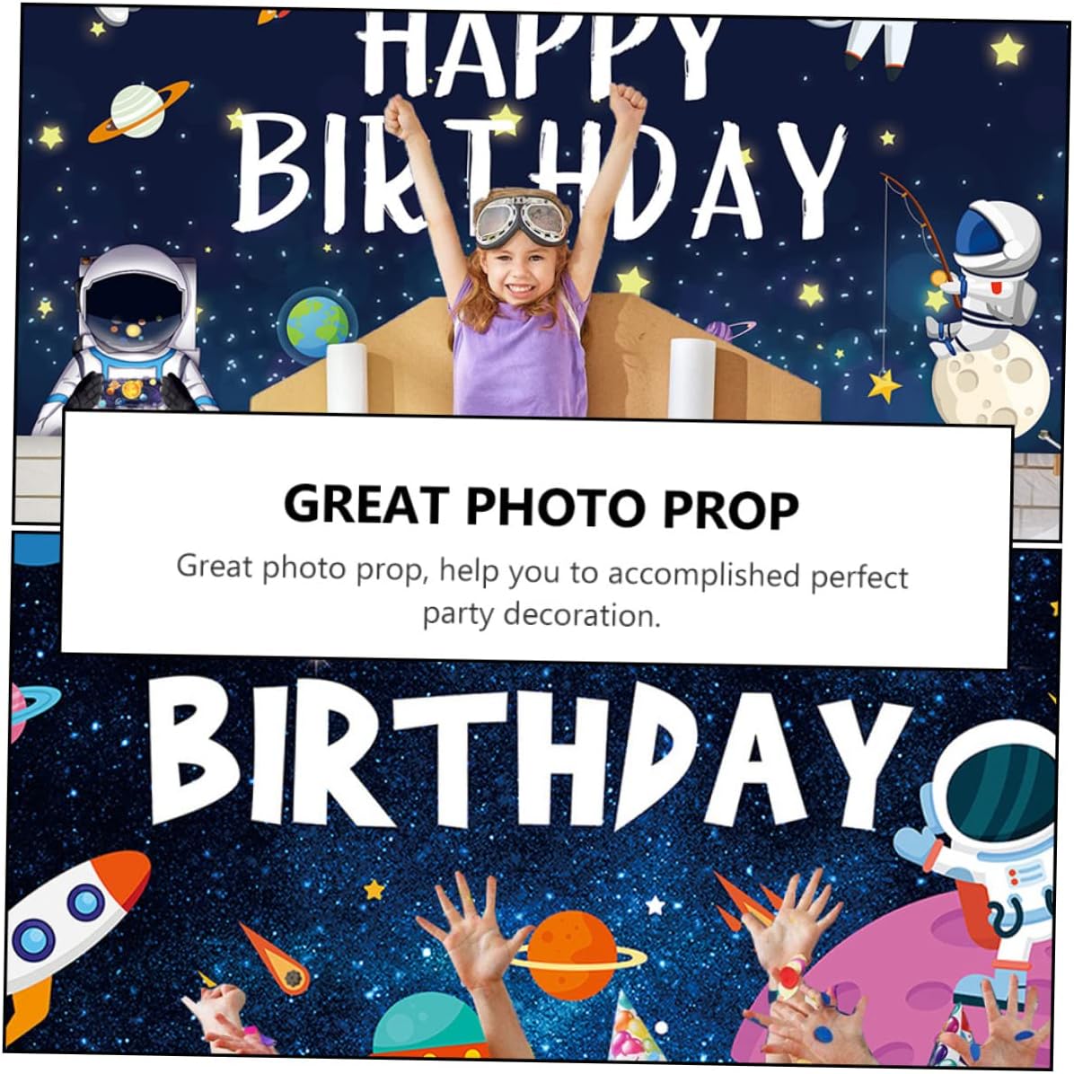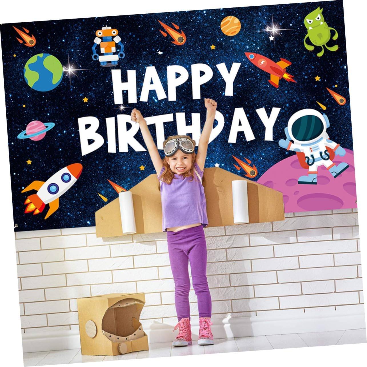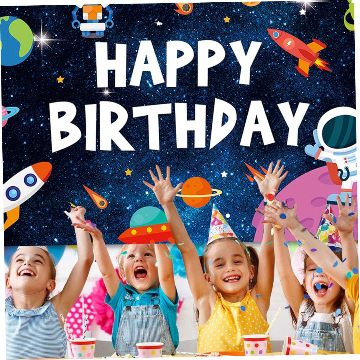 Decorazione per feste a tema: realizzata in bel materiale poliestere e uso duraturo, tavolo da torta. Sfondo del : puoi decorare questo striscione di compleanno sul muro o in altri posti come preferisci, striscione di buon compleanno. Decorazioni: appendere lo striscione di compleanno a tema, aggiungere più divertimento alla festa di compleanno a tema dei tuoi bambini, decorazioni per la tavola della torta. Forniture decorative per feste: puoi abbinarlo ad altri ornamenti per feste e l'effetto sarà migliore, banner per feste di compleanno. Festa a tema sullo spazio esterno: questo banner di sfondo per la festa sarà un successo per il tuo evento o servizio fotografico, sfondo per la parete dello spazio di compleanno.