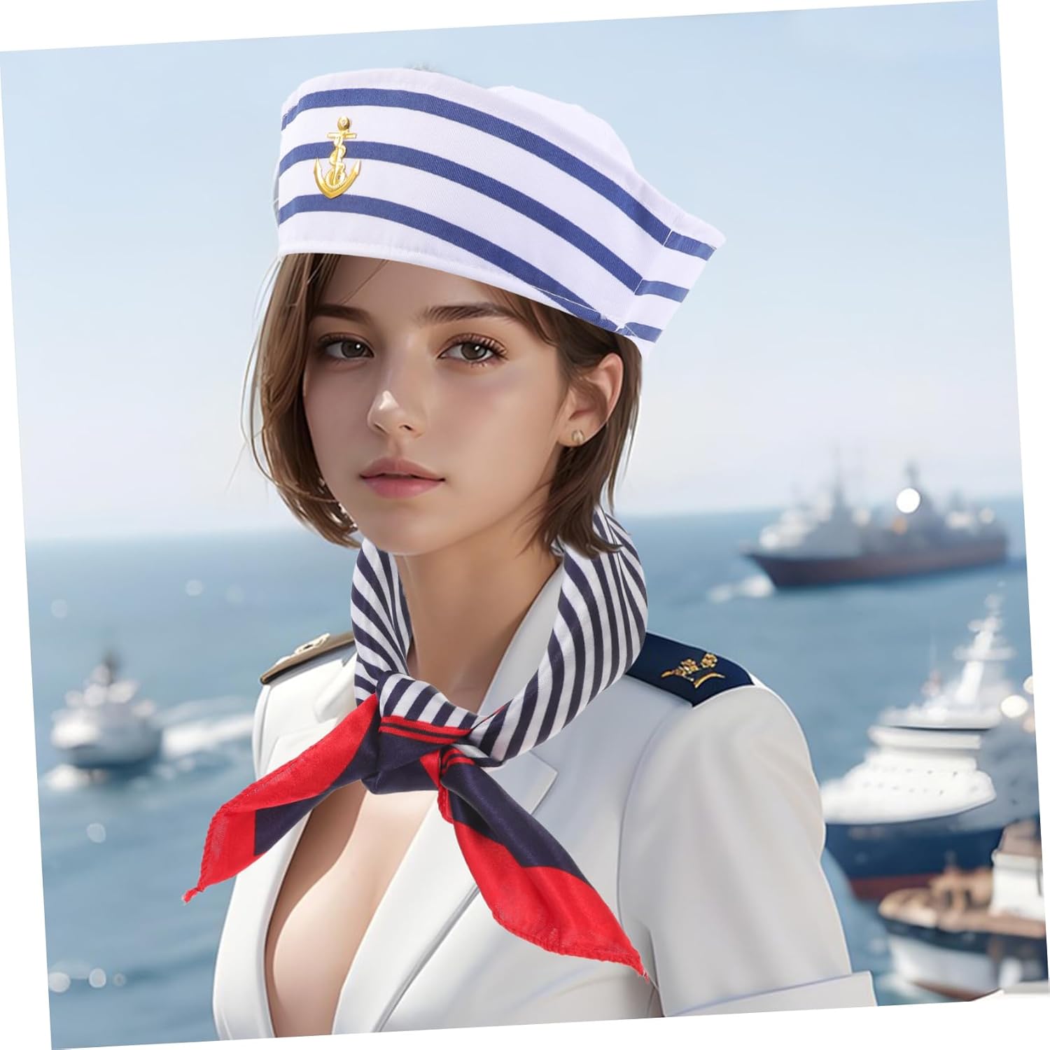 Il pacchetto include 1 x cappello 1 x sciarpa Caratteristiche -Materiale: abito da marinaio in poliestere -Colore: cappello da marinaio con colori assortiti -circonferenza della testa: 56 cm cappello da in maschera - Dimensioni: 24,00X23,50X7,00 cm/9,43X9,24X2,75 pollici accessori per costumi da vela - Questo cappello da marinaio è realizzato in poliestere ed è alla moda da molto tempo, perfetto per essere utilizzato durante i cosplay. - Comodo al tatto, non sbiadisce, non si strappa e non si rompe facilmente, può essere utilizzato per lungo tempo come cappello da di mare. - La delicata lavorazione artigianale rende questo cappello semplice ma affascinante, e può mostrare il tuo buon gusto come cappello da per la decorazione. - Un cappello unisex, adatto a tutte le taglie. Un accessorio perfetto per il costume da marinaio. Adatto per travestimenti in maschera, giochi di ruolo e altre occasioni di Halloween. - Design accurato e ottima fattura, la sciarpa e il cappello sono facili da abbinare ai cappelli da marinaio per cosplay. Informazioni sulle merci Cappello da marinaio Non si deforma facilmente e ti offre una buona esperienza di utilizzo. Cappello e sciarpa da marinaio Questo perché il nostro cappello da può soddisfare le tue esigenze. Accessori da marinaio Adottato in materiale poliestere, è per un uso prolungato. Cappelli da cosplay Se stai cercando un cappello e una sciarpa da marinaio, allora la tua ricerca è finita qui