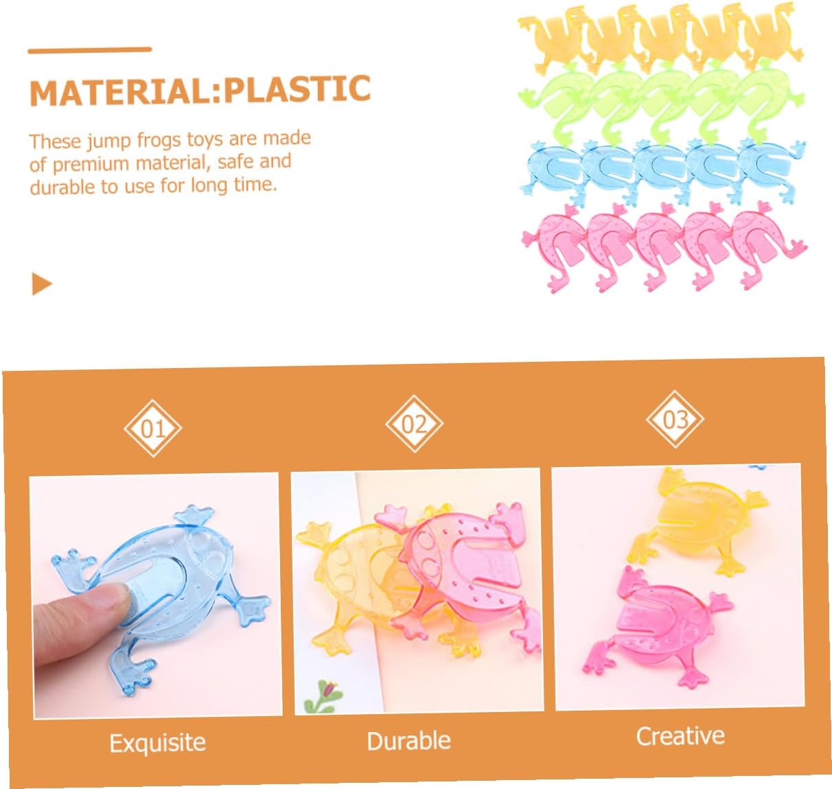Giocattolo a forma di rana in plastica: molto facile da usare: basta premere l'estremità della coda e la rana salta. Rana in plastica: usa questi interessanti giocattoli per regalarti un'infanzia divertente; piccole rane di plastica Rane che saltano per: uso versatile per scatole didattiche, borse da festa, per l'interazione in classe, alle feste, come materiale di riempimento per sacchetti regalo, ecc. - rane per mini rane di plastica: adatte per attività ricreative all'interno e all'esterno e assicurano che i bambini si divertano a giocare con i loro nuovi animali Rane giocattolo per: queste rane da spremere sono ideali per il soggiorno, la camera da letto, l'asilo, la scuola materna e altro ancora
