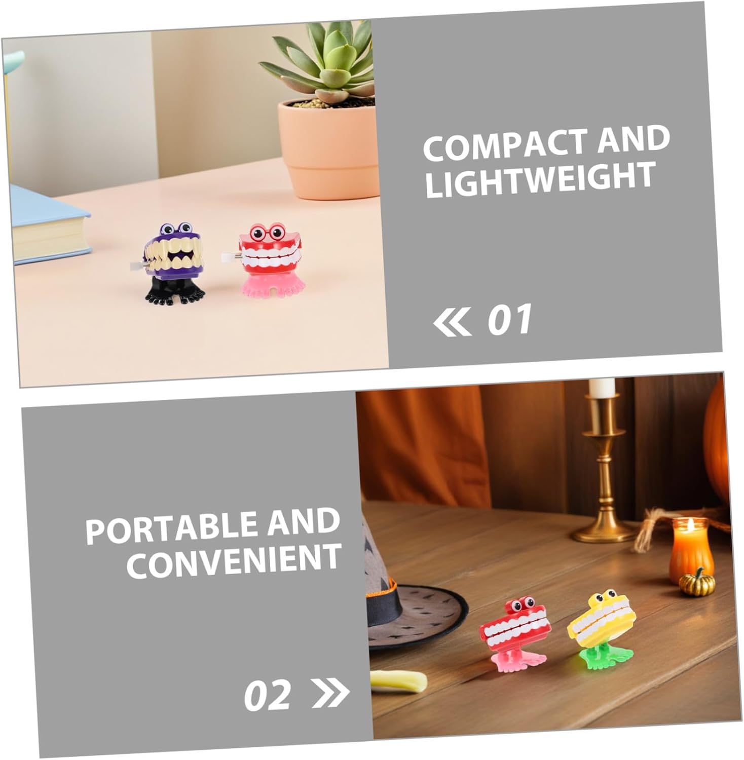 Utilizzo versatile: sia come giocattolo per battere i denti, come bomboniera per una festa di compleanno o come originale giocattolo a carica da regalare, questi giocattoli sono adatti per diverse occasioni e celebrazioni. Esperienza di gioco interattiva: il design del giocattolo a orologeria ti incoraggia a caricarlo e guardarlo balbettare e camminare, il che stimola la creatività e offre un divertimento senza fine. Movimento emozionante: il design del giocattolo a carica consente ai bambini di divertirsi. Divertiti a guardare i denti del giocattolo battere e camminare, rendendolo un giocattolo da corsa unico per un gioco fantasioso. Denti a carica, giocattoli a carica per regalo per la festa di Halloween: che si tratti di un giocattolo per una festa di Halloween, di una ricompensa in classe o di uno scherzo per adulti, questi nuovi giocattoli con denti a carica sono un'aggiunta adorabile a qualsiasi celebrazione, giocattoli per scherzi di Halloween, denti giocattolo Design divertente e accattivante: questi giocattoli a carica presentano un divertente design con denti con occhi rimbalzanti, che li rende perfetti per coloro che desiderano giocattoli originali e amore fantasioso. I giocattoli a carica sono regali di compleanno