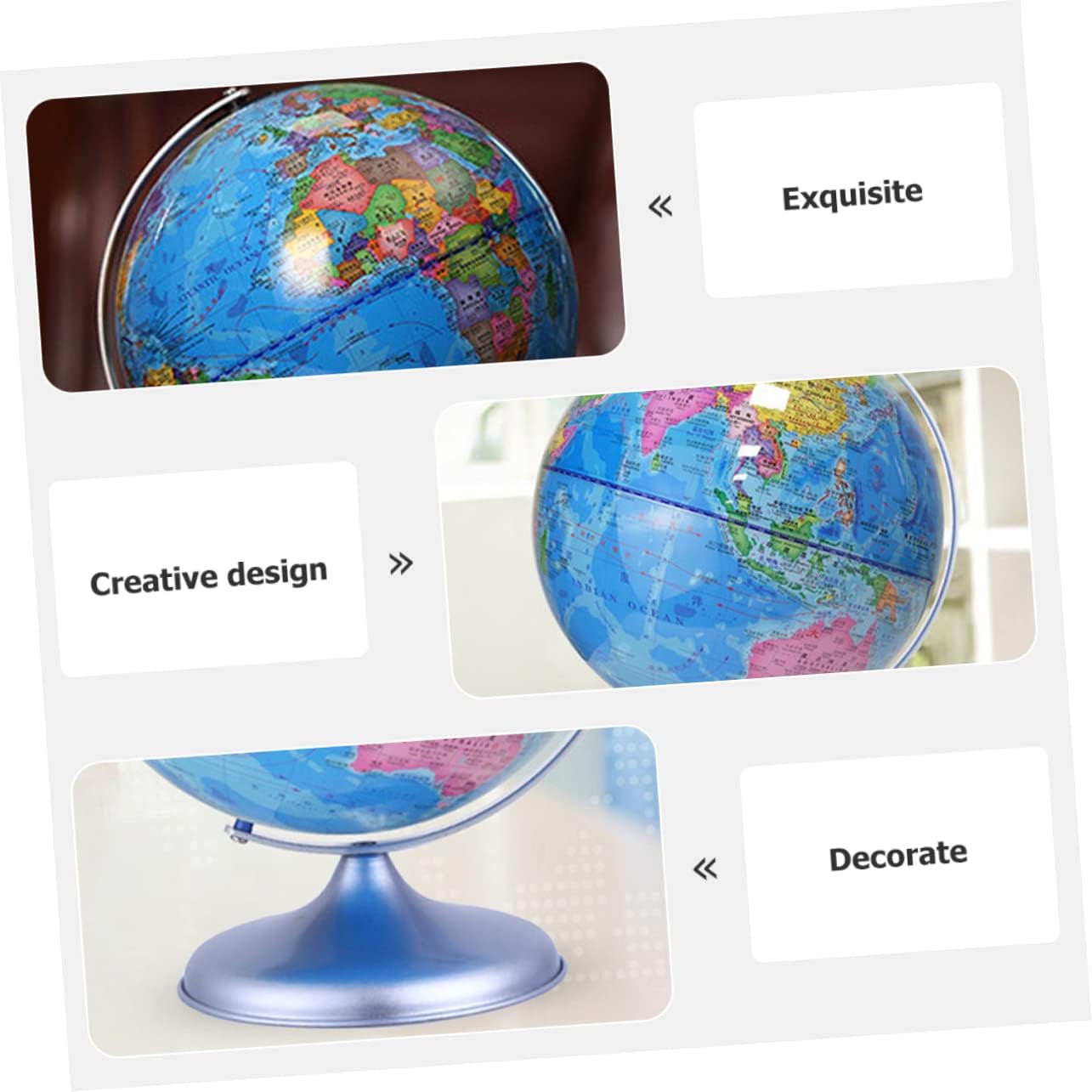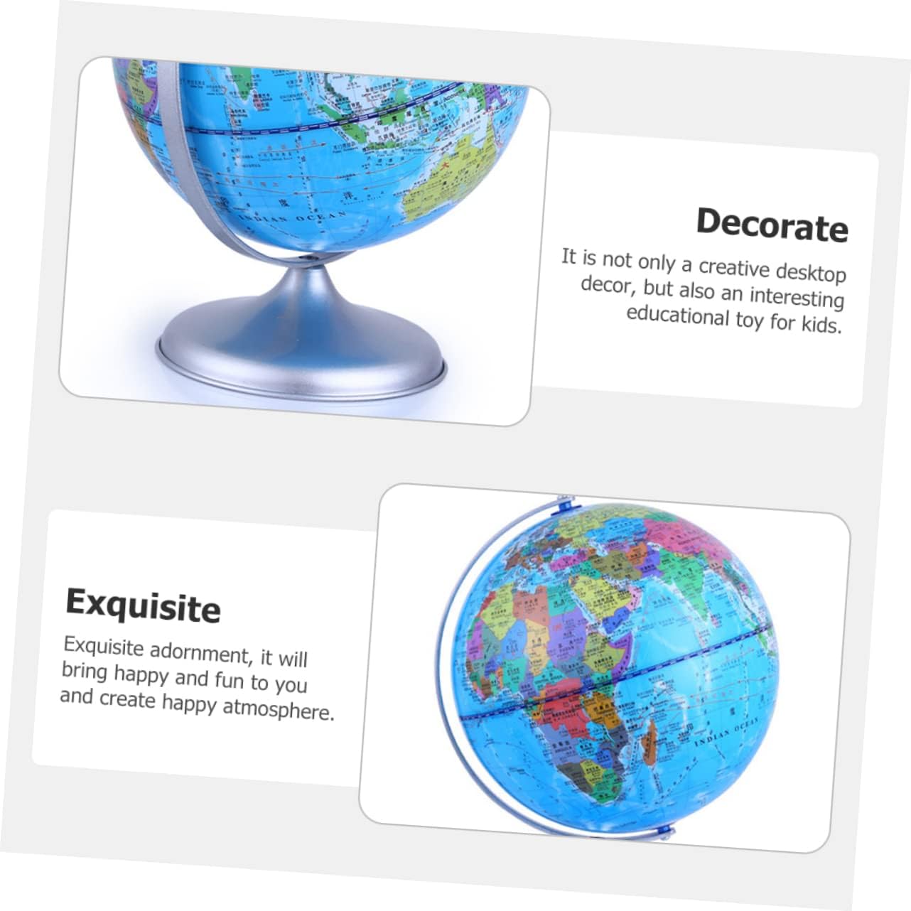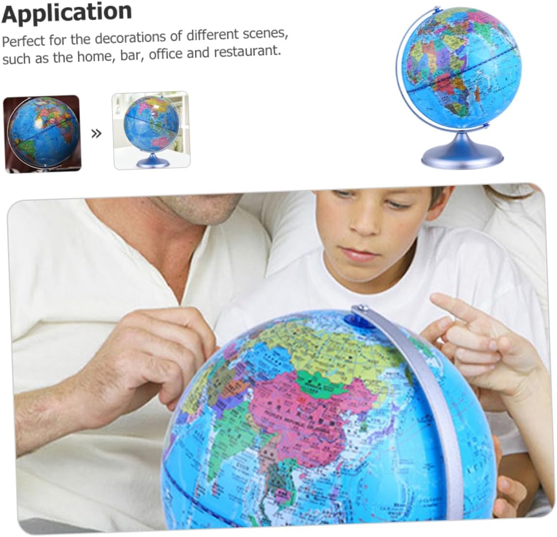 Mappamondo da tavolo: con base e telaio staccabili, il misuratore a sfera girevole può essere esposto a casa e in ufficio o utilizzato nelle dimostrazioni in classe e nei programmi delle lezioni. Arredamento per la casa: ha dimensioni adeguate, occupa molto più spazio ed è facile da trasportare. Giocattoli per bambini: realizzati in materiale di alta qualità, ne garantiscono la durata e la praticabilità. la palla presenta l'adorabile aspetto del tellurion, che è unico ed educativo. Globo decorativo: il materiale e il processo di produzione di qualità lo rendono resistente e possono offrirti un lungo periodo di servizio. Globo terrestre per bambini-- perfetto: questo ornamento può essere perfetto per il festival, lasciandoti un momento indimenticabile.