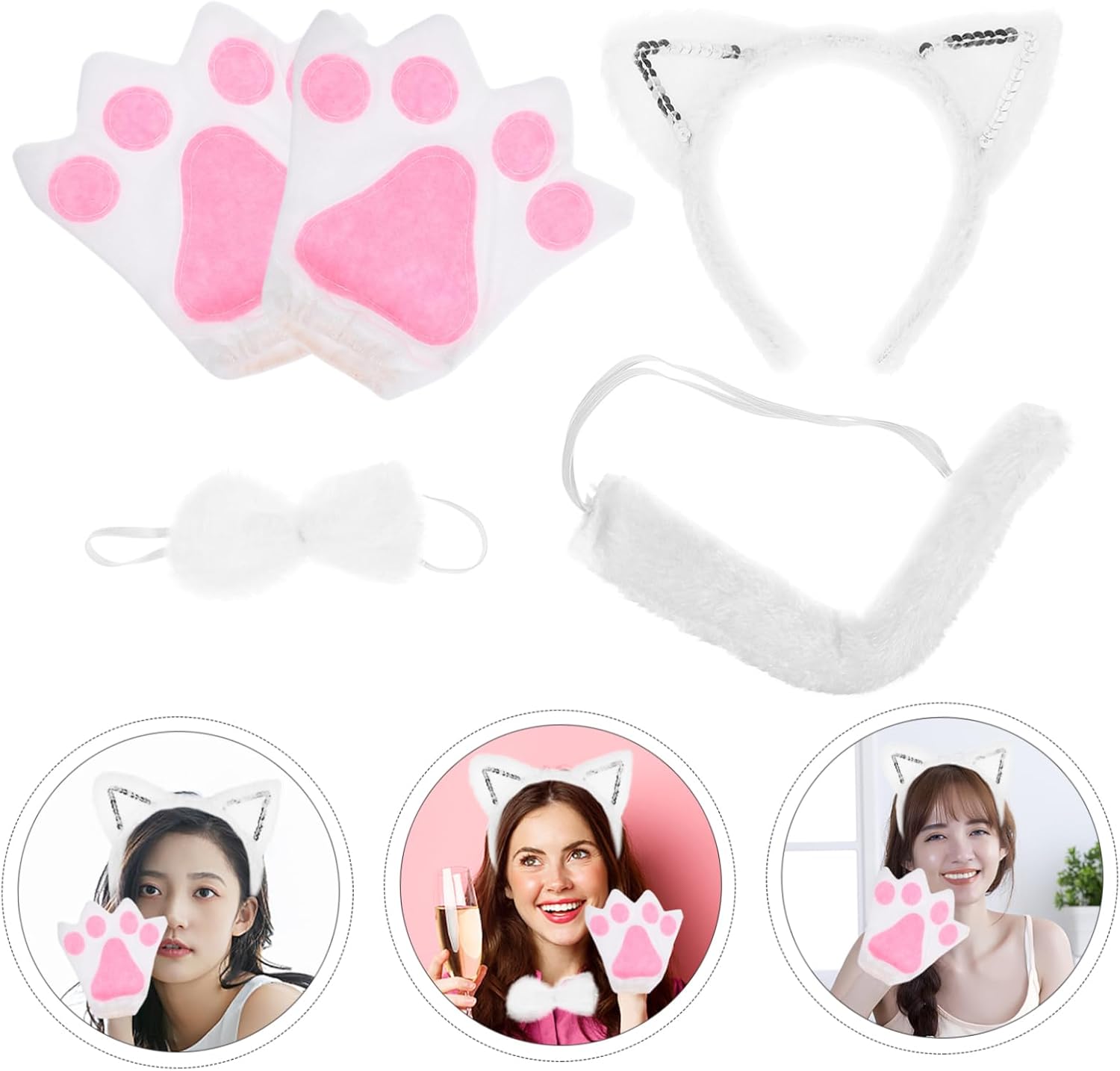dei pacchetti 1 fascia per cosplay, 1 fiocco per cosplay, 1 coda per cosplay, 1 paio di guanti Caratteristiche - Dimensioni: 20,00X15,00X1,50 cm/7,86X5,89X0,59 pollici (fascia per ) costume da gatto - Colore: Costume con accessori per animali bianchi - Dimensioni: 32,00X2,00X2,00 cm / 12,58X0,79X0,79 pollici (coda) accessori costume per gatto -Materiale: peluche di gatto cosplay - Dimensioni: 17,00X15,00X1,00 cm / 6,68X5,89X0,39 pollici (guanto) accessori per costume da gatto - Dimensioni: 11,00X8,00X1,00 cm / 4,32X3,14X0,39 pollici (arco) accessorio per costume cosplay - Tema animale unico e adorabile con gatto, che ti renderà adorabile quando indosserai accessori per costumi da gatto per Halloween. - Perfetto per feste e spettacoli teatrali, questo accessorio accresce il tuo fascino unico e aggiunge ai costumi da gatto per Halloween. -Design adorabile, adorabile forma a orecchio di gatto, e coda, attraente e decorativo per la decorazione. Kit per cosplay. -È ampiamente utilizzato nelle feste a tema animali, nei giochi di ruolo, negli spettacoli teatrali, come oggetto di scena per la fotografia e in molti altri costumi da gatto per cosplay. -La fascia leggera con orecchie da animale non appesantisce la testa e ti fa risaltare durante le feste in costume con coda di tifa. Informazioni sulle merci Cerchi adorabili accessori per il cosplay? Questo articolo è un accessorio per il cosplay di animali, con fascia per orecchie da gatto, e coda, realizzato in peluche e perfetto per il costume da gatto. Dal design adorabile ed elegante, aggiungerà brillantezza al tuo costume, adatto a diverse feste, spettacoli teatrali e cosplay.