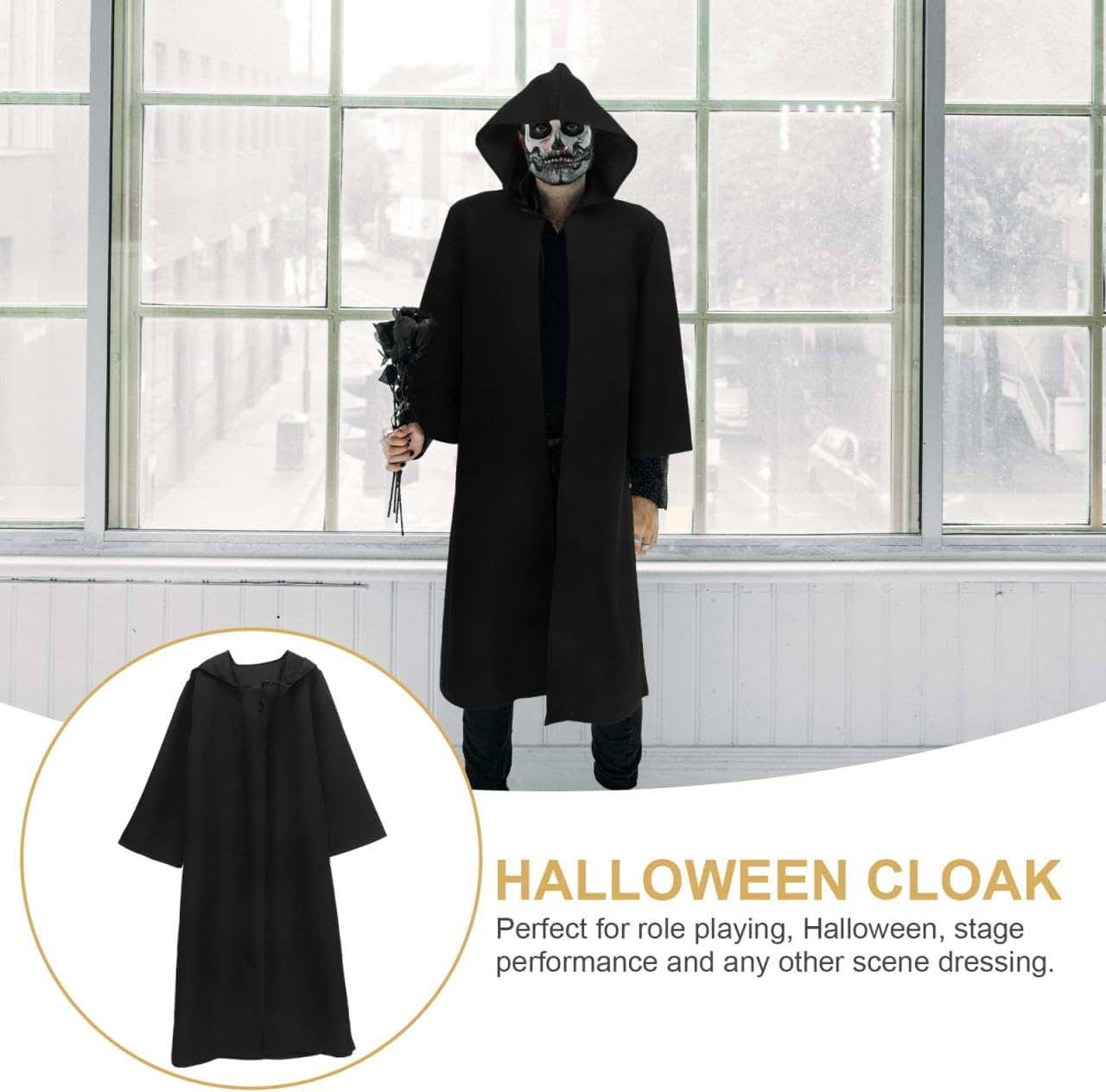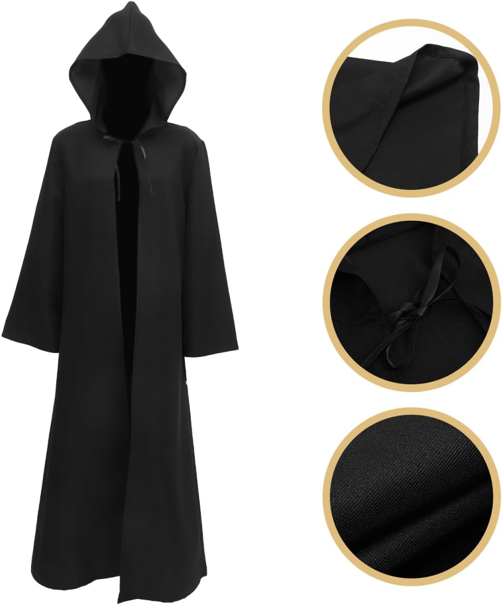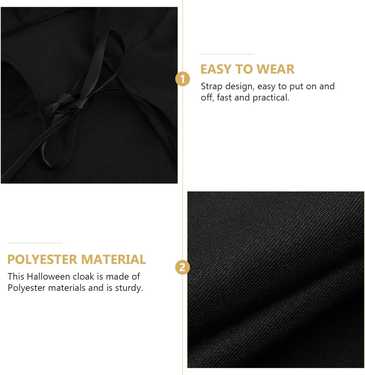 Il set comprende un mantello con cappuccio. Questo renderà la tua festa piena di vitalità. Non solo soddisfa i requisiti del cosplay ma aggiunge anche un tocco di . Tessuto di alta qualità: il classico mantello con cappuccio è realizzato in velluto dorato liscio. Non si sgualcisce, non si deforma, non scolorisce, assorbe il sudore, asciuga rapidamente, è confortevole e traspirante e garantisce libertà di movimento. Design su un lato: questo mantello è a strato singolo ed è disponibile nel classico nero. Incarna un famigerato vampiro o strega: solo un mantello. Facile da indossare: lega insieme il mantello, legalo attorno al collo e legalo sulle spalle. Adatto per uso domestico o come preferisci. Garantisce il massimo comfort, rende la vostra festa un vero piacere e stupisce i vostri ospiti. Versatile. Questo mantello è adatto a tutte le feste in costume gotico, Halloween, in maschera, vampiri, streghe, maghi, feste a tema misterioso e altri luoghi.