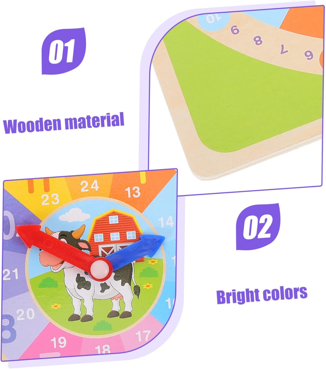 Orologio per imparare l'ora: un ottimo modo per interagire con i tuoi genitori e insegnare ai bambini a leggere l'ora. Orologio per imparare l'ora Modello orologio: questo orologio giocattolo può aiutare i bambini a imparare i diversi colori, un giocattolo in legno per il riconoscimento del tempo Modello orologio per bambini: ha la capacità di resistere alla rottura, molto pratico, con struttura eccellente, orologio giocattolo didattico: il materiale è sicuro e leggero, resistente all'usura e pratico per un uso a lungo termine, set di orologi didattici Orologio per il riconoscimento del tempo: questo giocattolo in legno è ampiamente utilizzato nell'insegnamento all'asilo e può far divertire i bambini e trasmettere la comprensione del tempo