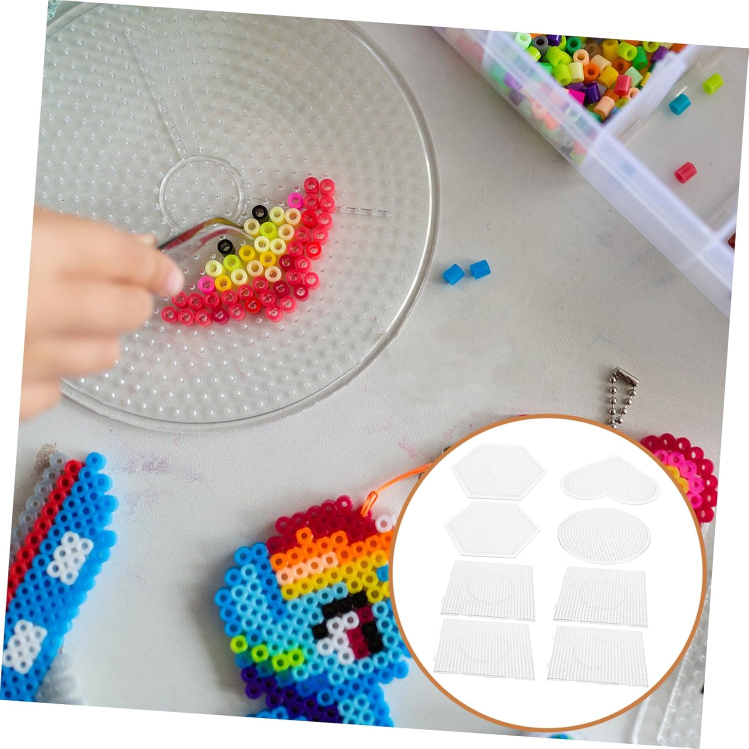Piastra per perline trasparente: le perline possono essere appese e trasportate con portachiavi e corde. Sono facili da trasportare e costituiscono anche una bella decorazione. Si prega di notare che le perline sono incluse. Tavole forate quadrate di grandi dimensioni con perline Perler Tavole forate con perline perler: ottima modalità di pensiero tridimensionale, che promuove la creatività e l'immaginazione, Tavole forate in plastica Tavole forate con perline Perler: facili da pulire e mantenere, assicurano che le tue creazioni siano più divertenti e più creative, Tavoletta per perline fai-da-te Tavoletta per perline fai-da-te: miglior membro della famiglia, collega o amico, adatta per perline artigianali con diametro di 5 mm, Piastre con perline in ferro breadboard: realizzate in plastica, non facili da rompere quando ti diverti con il fai-da-te, Fai-da-te piastra di perline