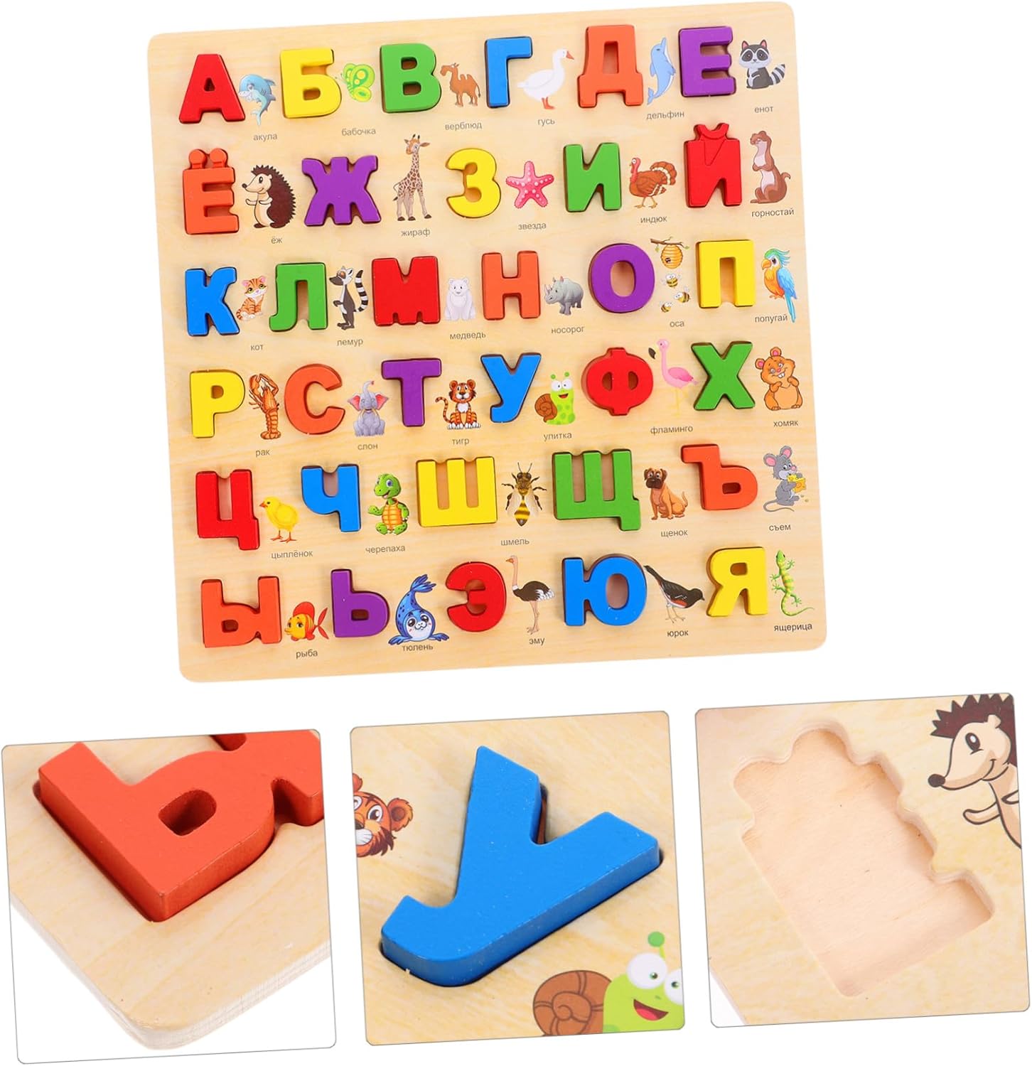 Puzzle per l'apprendimento dell'alfabeto: progettato con grandi blocchi di legno, ogni pezzo del puzzle è facile da raggiungere per le piccole mani dei bambini, tabellone dell'alfabeto russo Puzzle dell'alfabeto: sicuro e comodo da usare, non facile da rompere o deformare, riutilizzabile e può essere utilizzato per lungo tempo, puzzle dell'alfabeto in legno Puzzle a blocchi russo: lascia che il pezzo di legno si inserisca in quello giusto, apprendendo così le capacità cognitive e l'abilità di abbinamento. Questo puzzle in legno è un ottimo aiuto didattico per la casa, la scuola e la scuola. Gioco di abbinamento delle lettere Per chiarimenti sui numeri: il giocattolo in legno con lettere russe può sviluppare la coordinazione occhio-mano, capacità motorie e destrezza, puzzle giocattolo per l'apprendimento dell'alfabeto per imparare la lingua russa: i bambini completano il puzzle manipolando le lettere di legno per memorizzare la forma di ciascuna lettera. i bambini imparano l'alfabeto