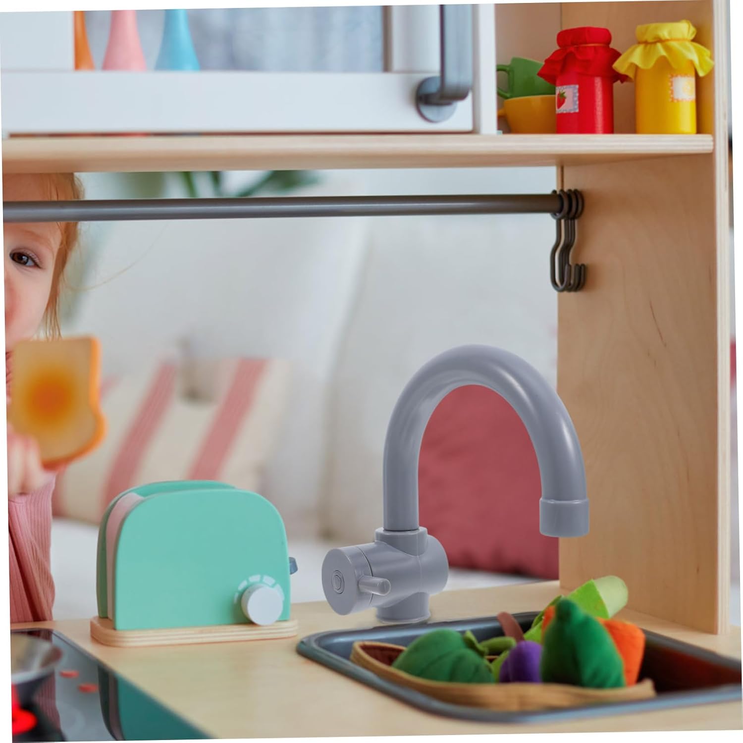 Design autentico: l'aspetto realistico del rubinetto migliora il gioco di simulazione, permettendo ai bambini di esplorare la loro immaginazione in modo divertente e creativo Costruzione adatta ai bambini: la costruzione in plastica leggera e robusta garantisce la sicurezza e l'affidabilità dei bambini durante i giochi Gioco adattabile: adatto a vari ambienti, tra cui casa, eventi all'aperto o di gioco, rendendolo un'aggiunta versatile a qualsiasi collezione di giocattoli Facile manutenzione: il materiale facile da pulire semplifica la manutenzione, mantenendo il giocattolo fresco e pronto per l'uso più volte Integrazione del set da gioco: si combina facilmente con altri accessori da cucina per creare un uso di gioco completo e interattivo per i bambini