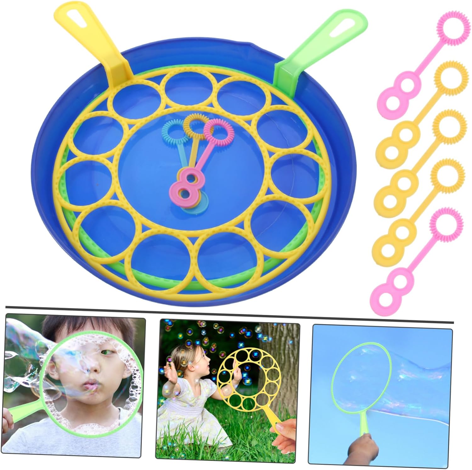 Bubble Sticks - Il set di strumenti per bolle è ideale per creare bolle di grandi dimensioni per varie occasioni, come feste di matrimonio, feste di compleanno, vacanze al mare o giornate in famiglia. Bacchette per bolle di sapone per regali di festa per - Ideali per giardino, parco, piscina, spiaggia, feste o altre attività di gioco all'aperto per far felici tutti Set di bacchette per bolle di sapone Bacchette per bolle di sapone per feste - Le bacchette per bolle e il vassoio sono realizzati in materiale ABS, che non è facile da rompere o deformare, riutilizzabili e bacchette per bolle Bubble maker: sono dotate di fori di diverse dimensioni con cui è possibile creare bolle di sapone di diverse dimensioni. In questo modo puoi facilmente conquistare il favore di bambini e adulti. Summer Bubble Wands Bubble Toys - Il set di bacchette per bolle e vassoio ti semplifica la creazione di bolle e può portare molto divertimento ai tuoi bambini. Giocattolo per la creazione di bolle
