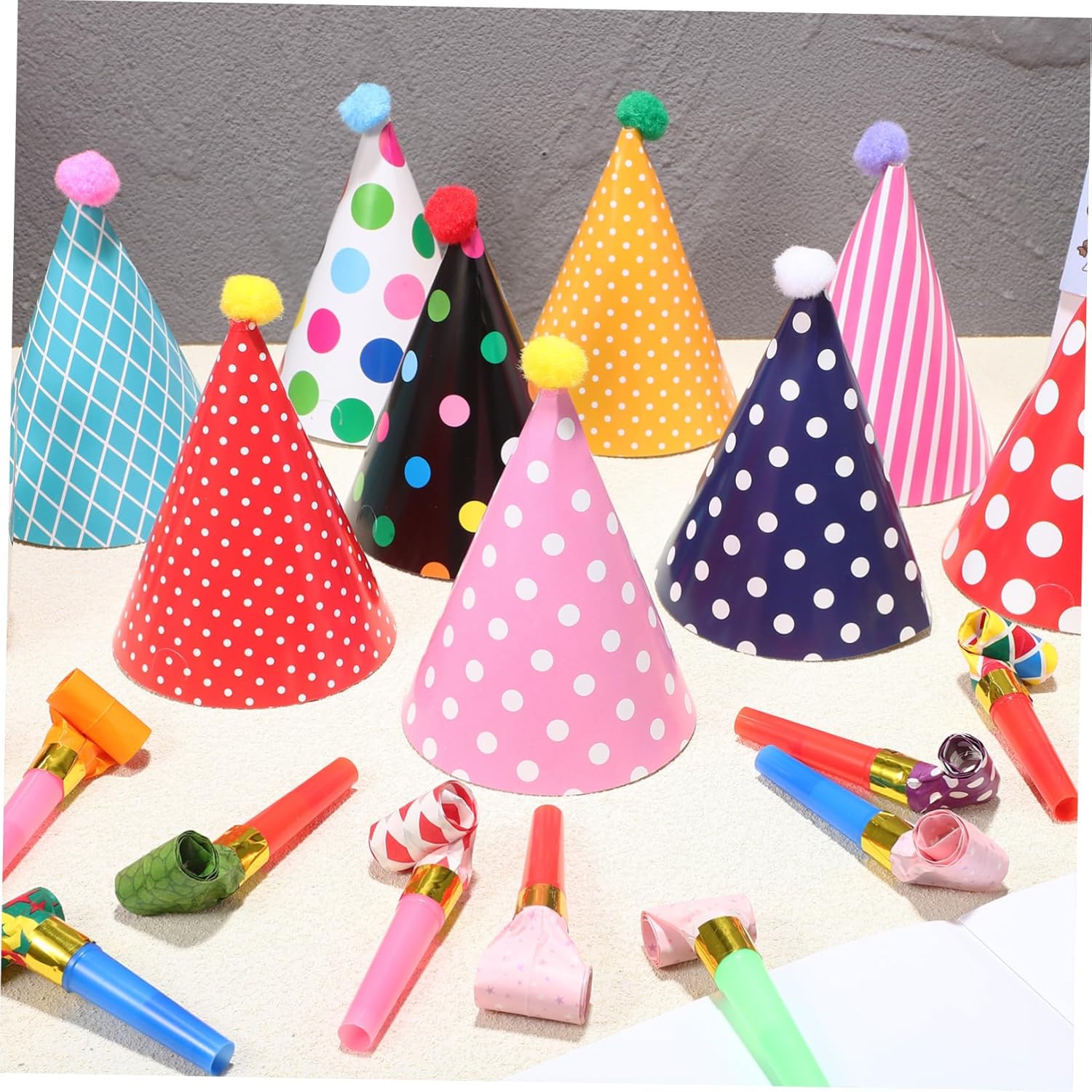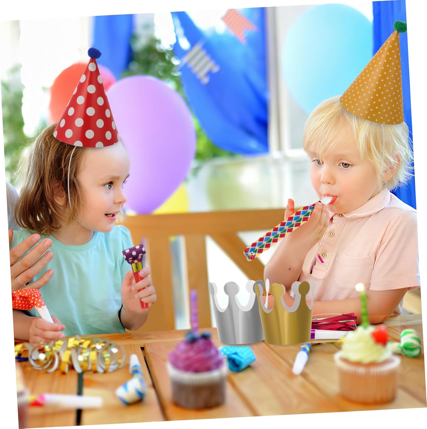 Feste: i soffiatori per feste sono in grado di produrre suoni divertenti che rafforzano l'atmosfera e umore, cappelli da festa, cappelli da festa a cono Design vivace: tutte queste decorazioni per feste sono realizzate con colori vivaci e forme incantevoli, che migliorano notevolmente l'atmosfera , gli accessori per le feste e la carta soffiante per feste Set tutto in uno: questo set contiene molti oggetti di scena per la decorazione di feste di compleanno, tra cui cappelli conici, corone e soffiatori per feste, corone e soffiatori per feste Divertente rumore: questi soffiatori sono facili da usare, possono emettere rumori forti e sono indispensabili per ogni festa che deve fare suoni divertenti, cappelli di compleanno e cappelli da festa Maggiore affidabilità: queste decorazioni per feste realizzate in carta sono sicure e affidabili, non facili da strappare, possono essere utilizzate a lungo, soffiatori per feste, cappelli a cono di compleanno