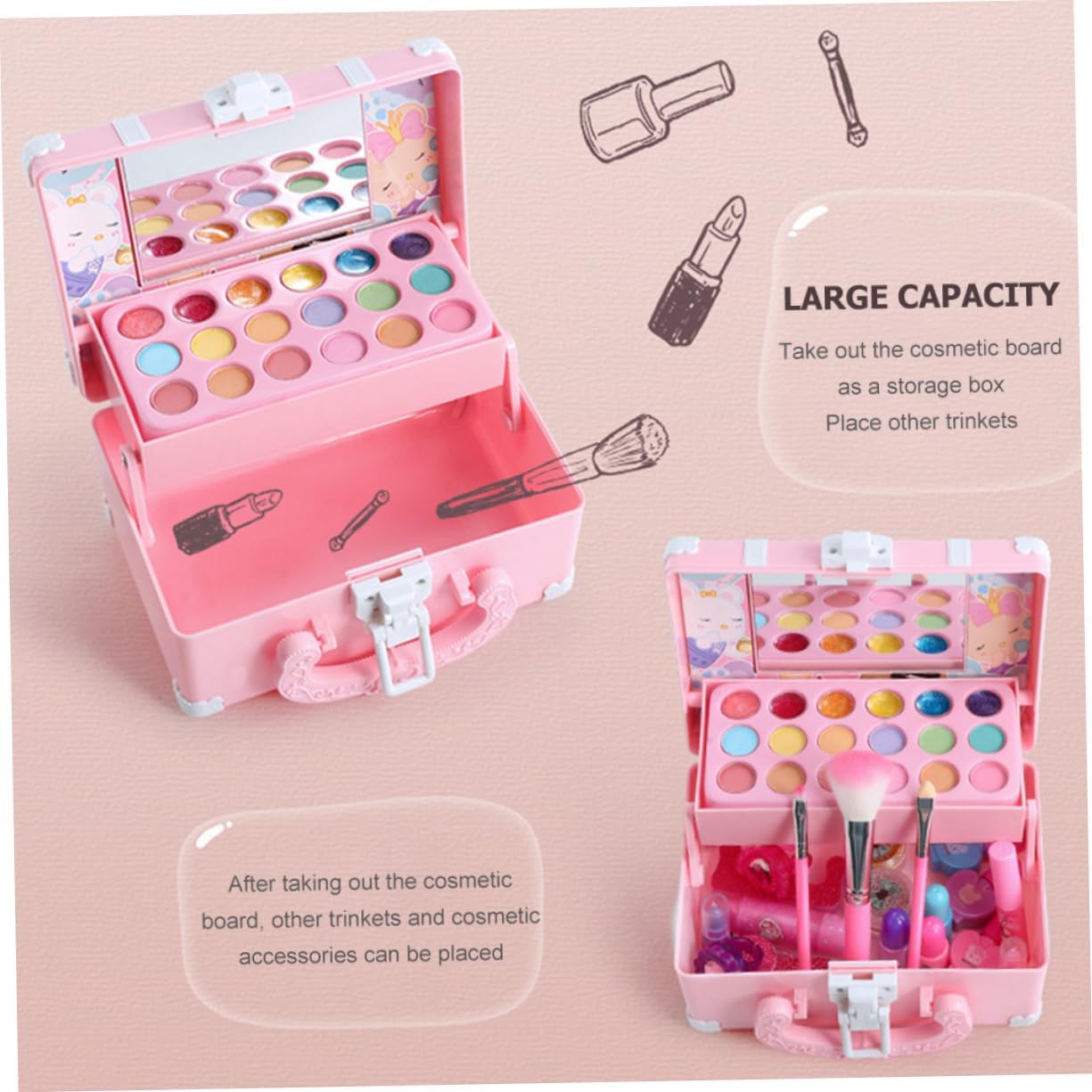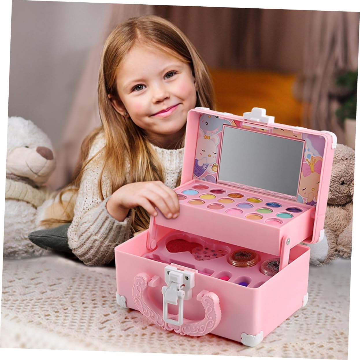 Set da gioco Kidcraft: design simulato che stimola l'interesse dei bambini per colori e forme, giocattoli cosmetici per bambini. Giocattolo simulato per il trucco: l'uso dei muscoli addominali come materiale, alto livello di sicurezza, può rilassarsi durante il gioco, tocco delicato e giocattolo educativo per la casa. Giocattolo educativo per: questo giocattolo per il trucco è realizzato in materiale ABS, sicuro per giocare, e un set per il trucco. Giocattolo per il trucco per: come decorazione da tavolo, può dare alla tua tavola un nuovo look, inoltre è un meraviglioso giocattolo per il trucco simulato per tua figlia. Set per il trucco: questo set di cosmetici è sicuro e solubile in acqua e fornisce ai bambini giocattoli per giochi creativi e oggetti di scena per il trucco.