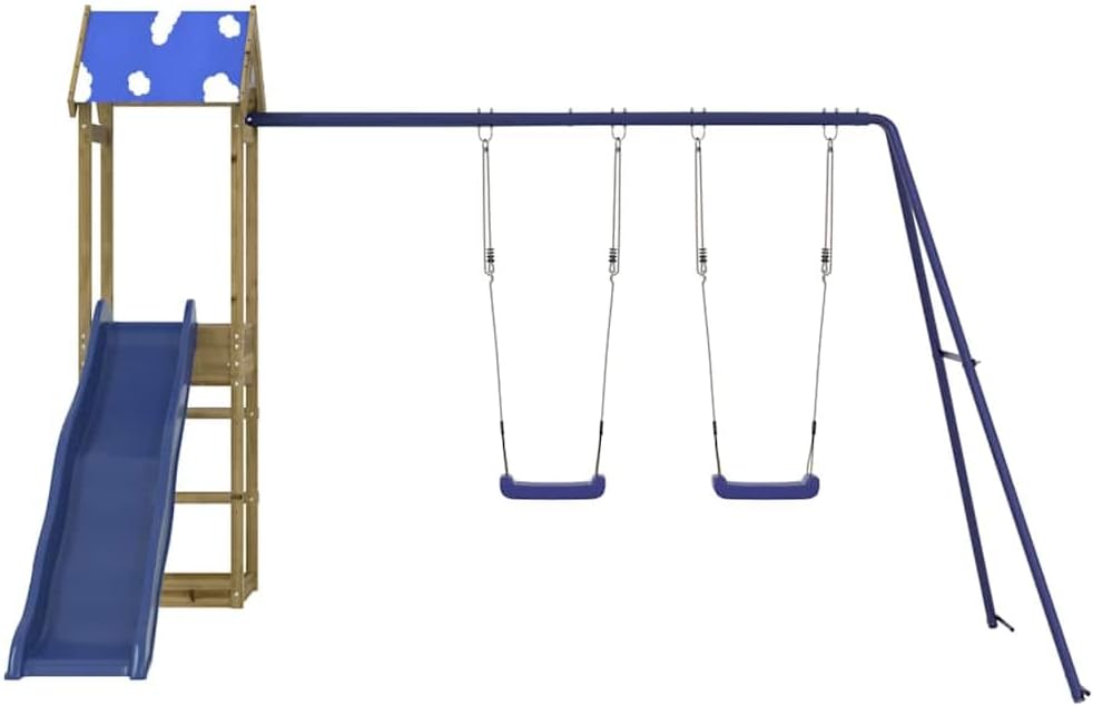 Vorresti regalare ai tuoi bambini un parco giochi tutto loro? Questa attrezzatura da gioco in legno consente avventure fantasiose nel tuo giardino! 【Materiale durevole:】 Il telaio della torre dei giochi è realizzato in legno di pino impregnato sotto pressione della caldaia. Il legno di pino massiccio è noto per la sua resistenza e durata. La sua venatura dritta e i caratteristici nodi contribuiscono al suo fascino rustico. È stato impregnato con una soluzione conservante e autoclavato per avere una maggiore resistenza alla putrefazione e agli agenti atmosferici. 【Robusta struttura in legno:】 La struttura in legno conferisce alla casetta robustezza e stabilità. Inoltre, il telaio a forma di "A" garantisce la stabilità dell'altalena per bambini. 【Centro giochi:】 La torre giochi ha una piattaforma alta 90 cm, uno scivolo a onde, due altalene e una sabbiera. Ciò significa che i tuoi piccoli potranno anche invitare i loro amici a giocare insieme. 【Design accurato:】 Il tetto nuvoloso offre una piacevole ombra nelle calde giornate estive.