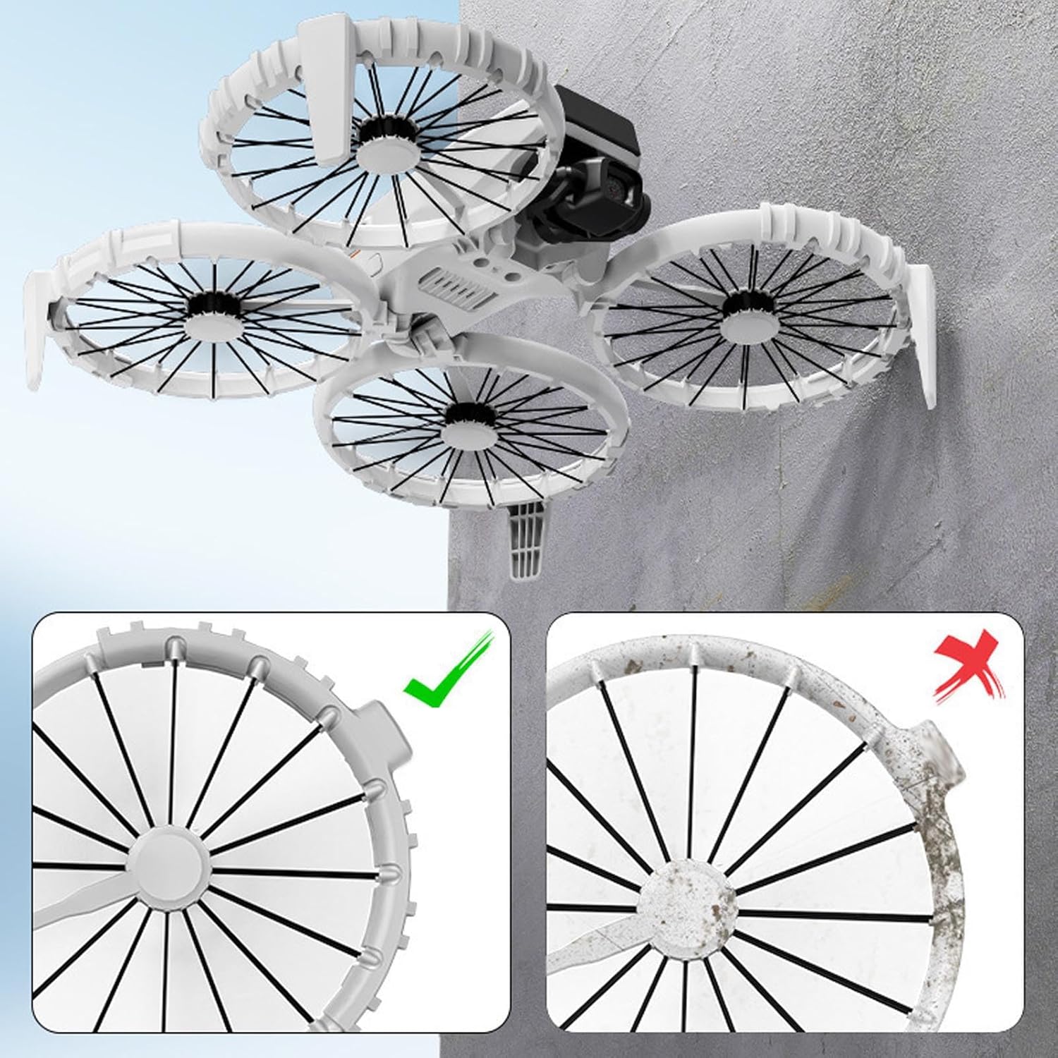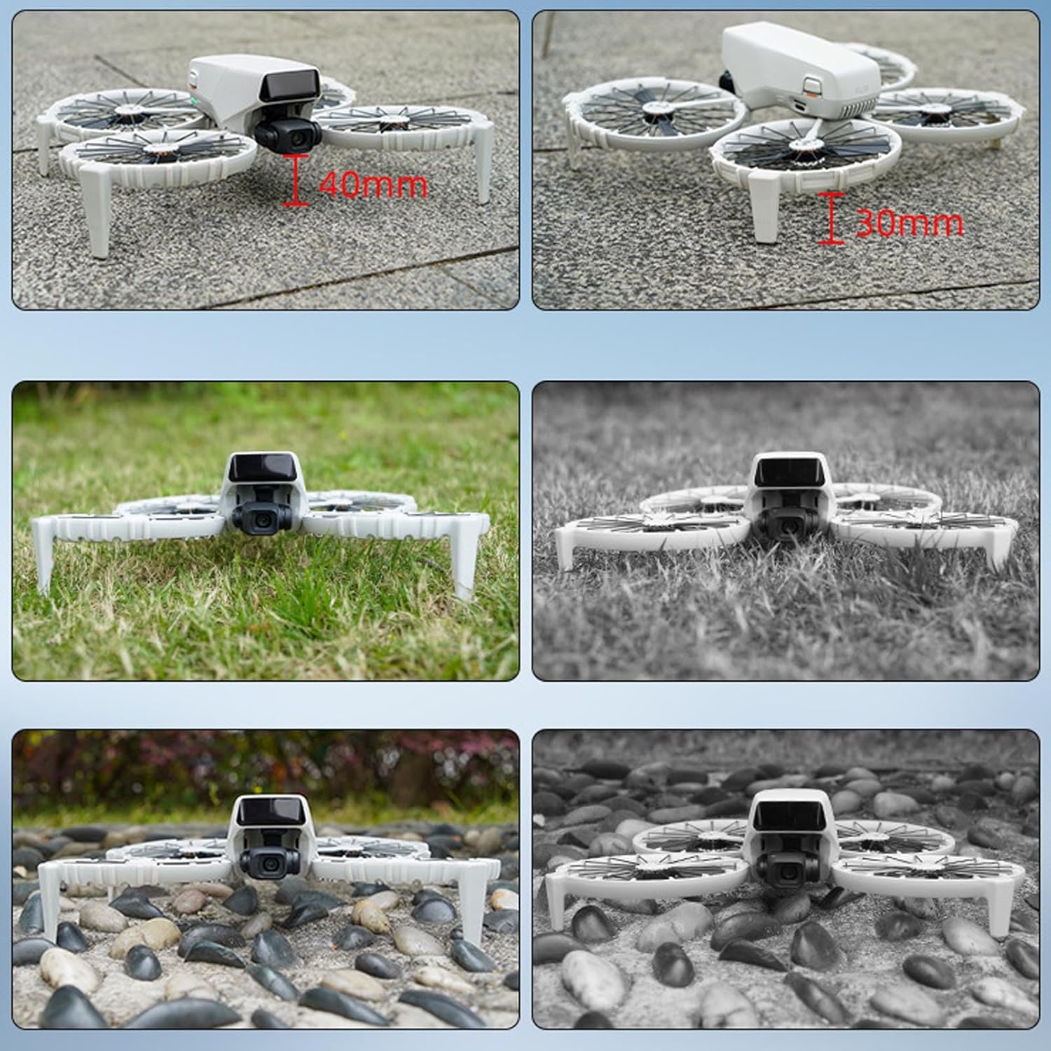 Vestibilità accurata: progettata appositamente per Flip, questa protezione ' si adatta perfettamente alle curve 'aereo, agendo come un'armatura su misura per garantire l'assenza di interferenze con le prestazioni di volo. Eccellente resistenza agli urti: realizzata in materiale TPU, la copertura 'anello ' del drone offre una robusta durata, proteggendo efficacemente le eliche dalle collisioni con rami, pareti e altri ostacoli durante il volo. Design integrato con doppia protezione: la combinazione di treppiede e protezione offre una protezione completa contro urti e graffi pur mantenendo un aspetto elegante. Installazione semplice: caratterizzata da un design unico che non richiede strumenti complessi, questa protezione per l' del drone può essere equipaggiata sul tuo drone in pochi semplici passaggi, consentendoti di prepararti rapidamente per avventure di volo sicure. Leggero e portatile: pur fornendo una protezione potente, la protezione rimane incredibilmente leggera, praticamente senza aggiungere peso aggiuntivo al drone. È adatto per avventure all'aria aperta o riprese quotidiane.