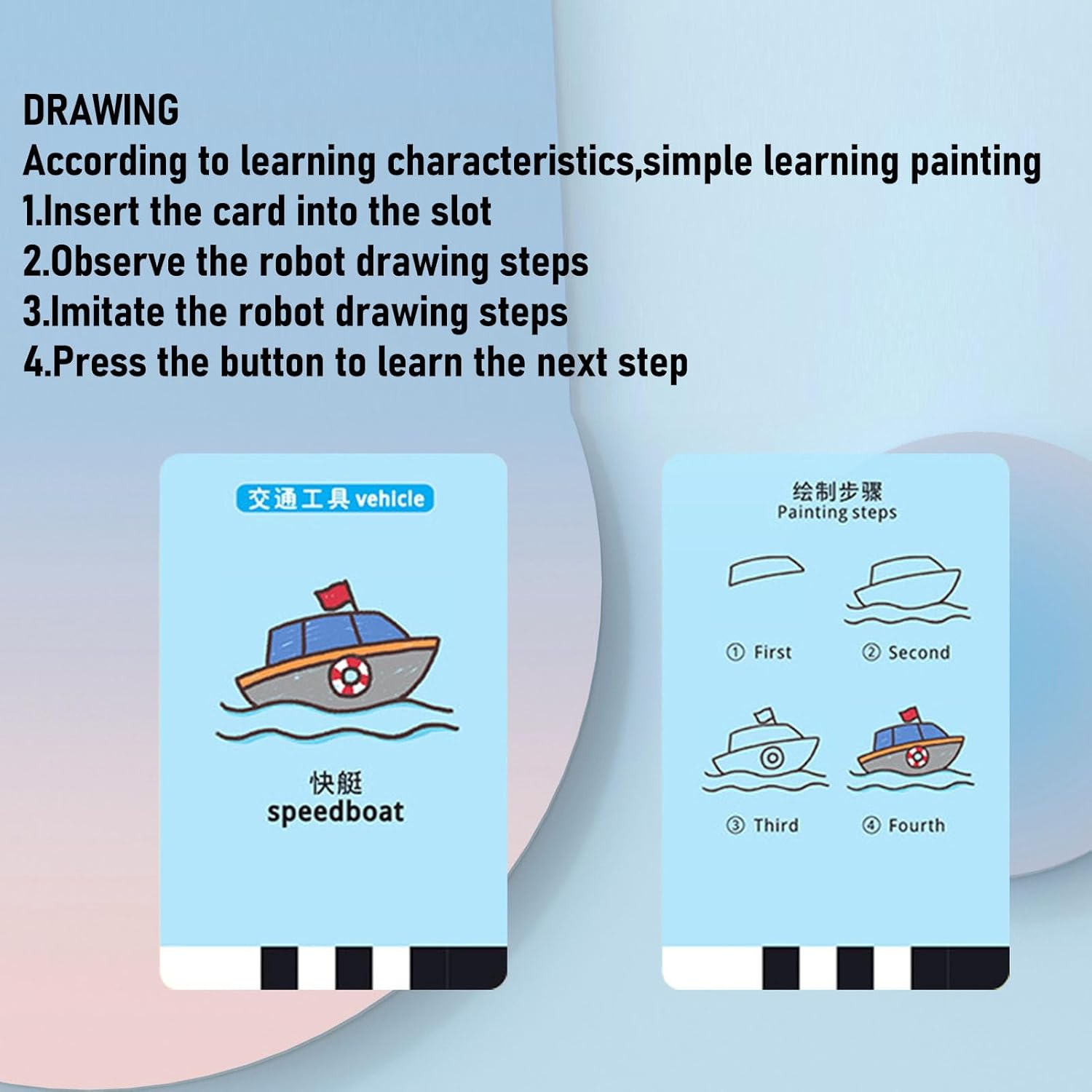 Drawing Companion: trasforma il gioco in modo creativo con il nostro robot da disegno interattivo, il bel compagno per innescare la tua immaginazione. Questo giocattolo innovativo è sapientemente realizzato per rafforzare le abilità essenziali, tra cui la coordinazione per gli occhi manuali, la scrittura, il disegno, la risoluzione dei problemi e il pensiero creativo, rendendolo un'esperienza piacevole ed educativa. Facile da usare: goditi il divertimento senza configurazioni o app complicate. Il nostro robot da disegno presenta funzioni facili da usare che ti consentono di iniziare istantaneamente. Con 100 carte da disegno diverse, i tuoi piccoli intraprenderanno un viaggio attraverso l'arte. Materiale: il robot da disegno mostra un aspetto delizioso e coinvolgente mentre viene costruito con materiale ABS premium. Il suo design robusto garantisce un ambiente di gioco , permettendo la tranquillità mentre esplora i loro talenti artistici. Nice : adatto ai ragazzi di età superiore ai 5 anni, il nostro robot da disegno è la scelta ideale per promuovere lo sviluppo artistico e cognitivo precoce. È un premuroso per i compleanni o qualsiasi evento speciale che celebra la gioia de'apprendimento. Macchina da disegno educativo: siamo impegnati nella longevità del nostro robot di disegno educativo. Per preservare l'integrità delle carte da disegno, gestirle con cura. Un amico carino che può insegnarti a disegnare.