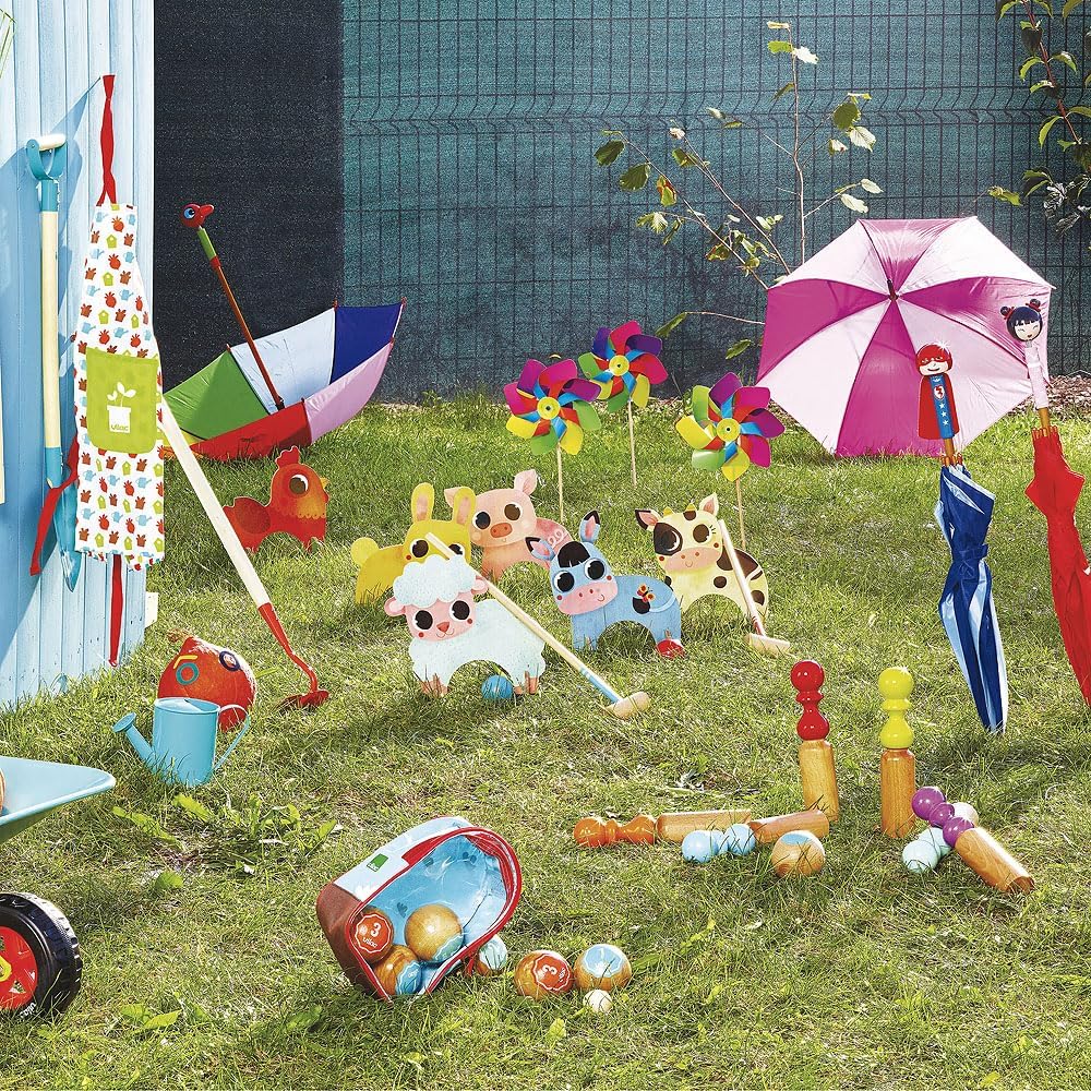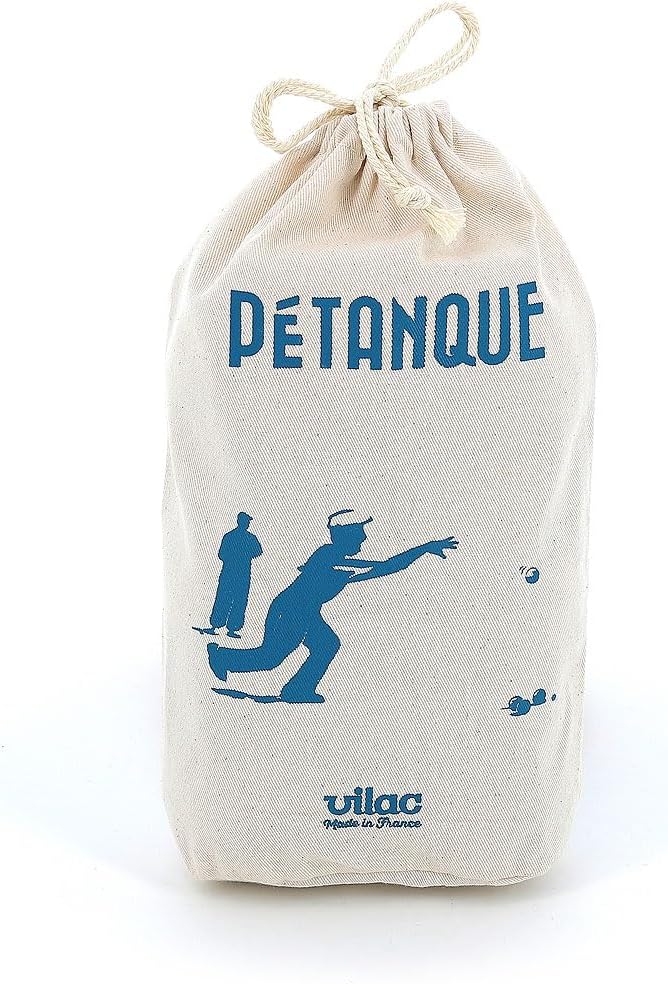 Set di bocce in legno verniciato in stile retrò consegnato nel suo grazioso sacchetto di cotone. Fabbricazione francese.