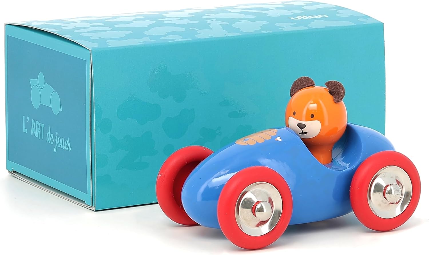 Declinata in carillon e sonaglio e ombrello, questa vettura in legno laccato fa parte di una collezione di animali immaginati e realizzati nel nostro laboratorio del Giura in Francia. Una banda di amici composta da René il pinguino, Marcel l'orso, Raoul il coniglio, Alice la Koala, Mariette la minetta e infine Lucien il cane. Per quale si romperà? Realizzato in Francia, questo giocattolo è laccato seguendo un processo unico di immersione in bagni di lacca che rende famosa il nostro laboratorio di produzione del Giura. Un fantastico giocattolo di risveglio e decorazione 6 personaggi sono da collezione