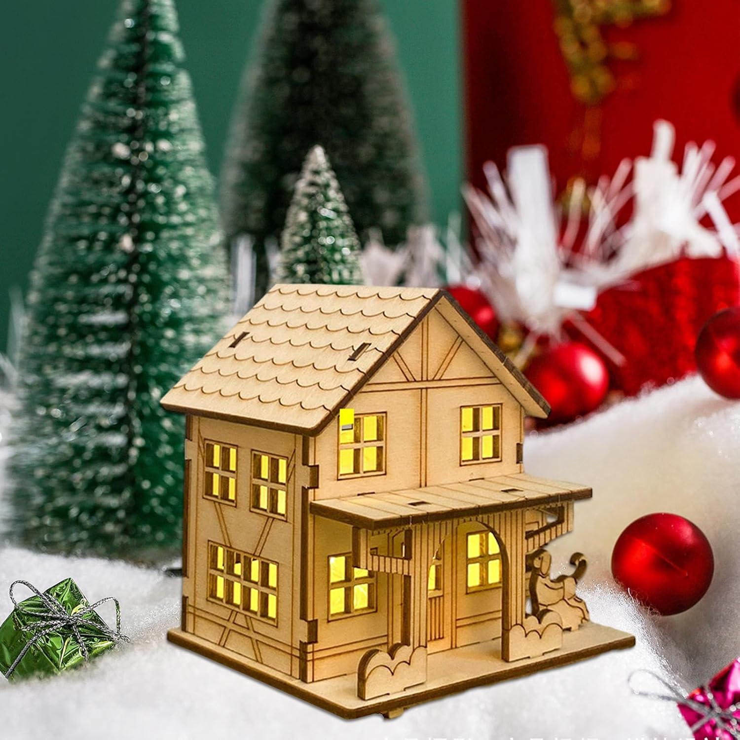 DESIGN UNICO: stupisci i tuoi ospiti con questa unica casa del villaggio di Natale, realizzata in legno resistente e decorata con luci bianche calde per un'accogliente atmosfera vacanziera. Il design creativo della casa in legno aggiunge un tocco di bellezza a qualsiasi stanza. QUALITÀ PREMIUM: le nostre case del villaggio di Natale sono realizzate con materiali di prima qualità e sono robuste e durevoli. Sono realizzati in legno di alta qualità, sicuro e inodore, ecologico e non facile da rompere o deformare. Adatte per uso interno: queste case del villaggio di Natale possono essere posizionate nel tuo studio, camera da letto, soggiorno o qualsiasi altra stanza per aggiungere calore e colore alla tua casa, al posto di lavoro o al lavoro. Sono anche una decorazione natalizia ideale per ogni occasione. Posizionamento flessibile: queste case del villaggio di Natale sono alimentate a batteria e consentono un facile posizionamento in qualsiasi posizione desiderata con pregevole fattura e dettagli intricati. Non sono necessarie prese di corrente per migliorare lo spirito vacanziero. Scelta ideale: Aumenta lo spirito natalizio con le nostre casette del villaggio di Natale. Delizia i tuoi cari con un regalo che irradia calore, amore e allegria festosa. Perfetto per esaltare lo spirito natalizio e creare esperienze indimenticabili.