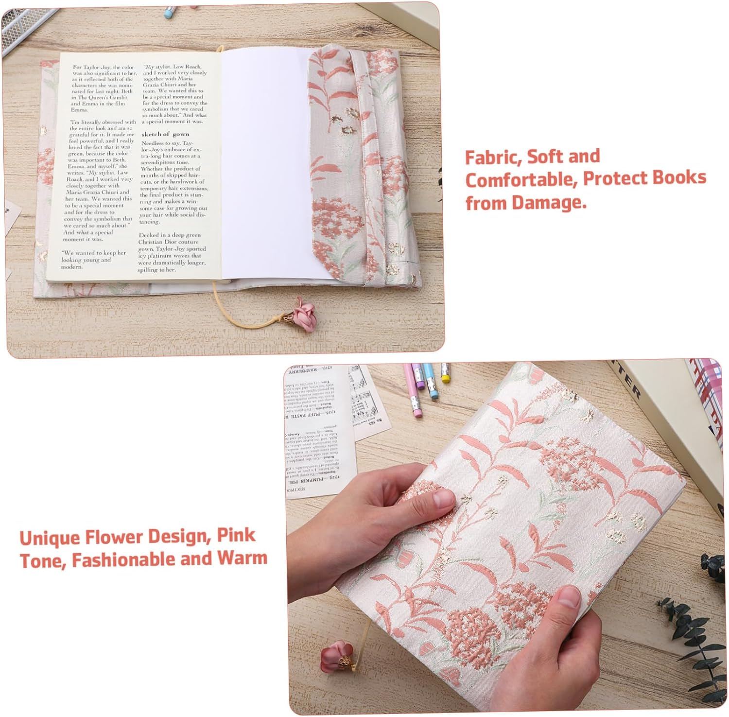 Protezione per libri in tessuto: protezione per libri: la copertina in tessuto fornisce una protezione affidabile per i tuoi libri, proteggendoli da graffi, sporco e altri danni, garantendo che rimangano in perfette condizioni. Copertine per libri con copertina rigida: design estetico: la copertina in tessuto vanta stile unico ed elegante con i suoi motivi intricati e colori adorabili, rendendo il tuo libro una dichiarazione di moda. Custodia per libri per gli amanti dei libri: consistenza morbida: realizzata in tessuto, la custodia decorativa per libri ha una consistenza morbida che è confortevole al tatto, rendendo la lettura ancora più piacevole. Custodia del libro: comoda al tatto: la custodia del libro è realizzata con materiali in tessuto di alta qualità, morbidi e confortevoli al tatto. ti divertirai ancora di più a tenere i tuoi libri. Custodia decorativa per libri: facile da applicare: la protezione del libro è facile da applicare sul libro, rendendola adatta a vari tipi di libri, che tratti di un romanzo, di un libro di testo, di un album o di altro tipo.