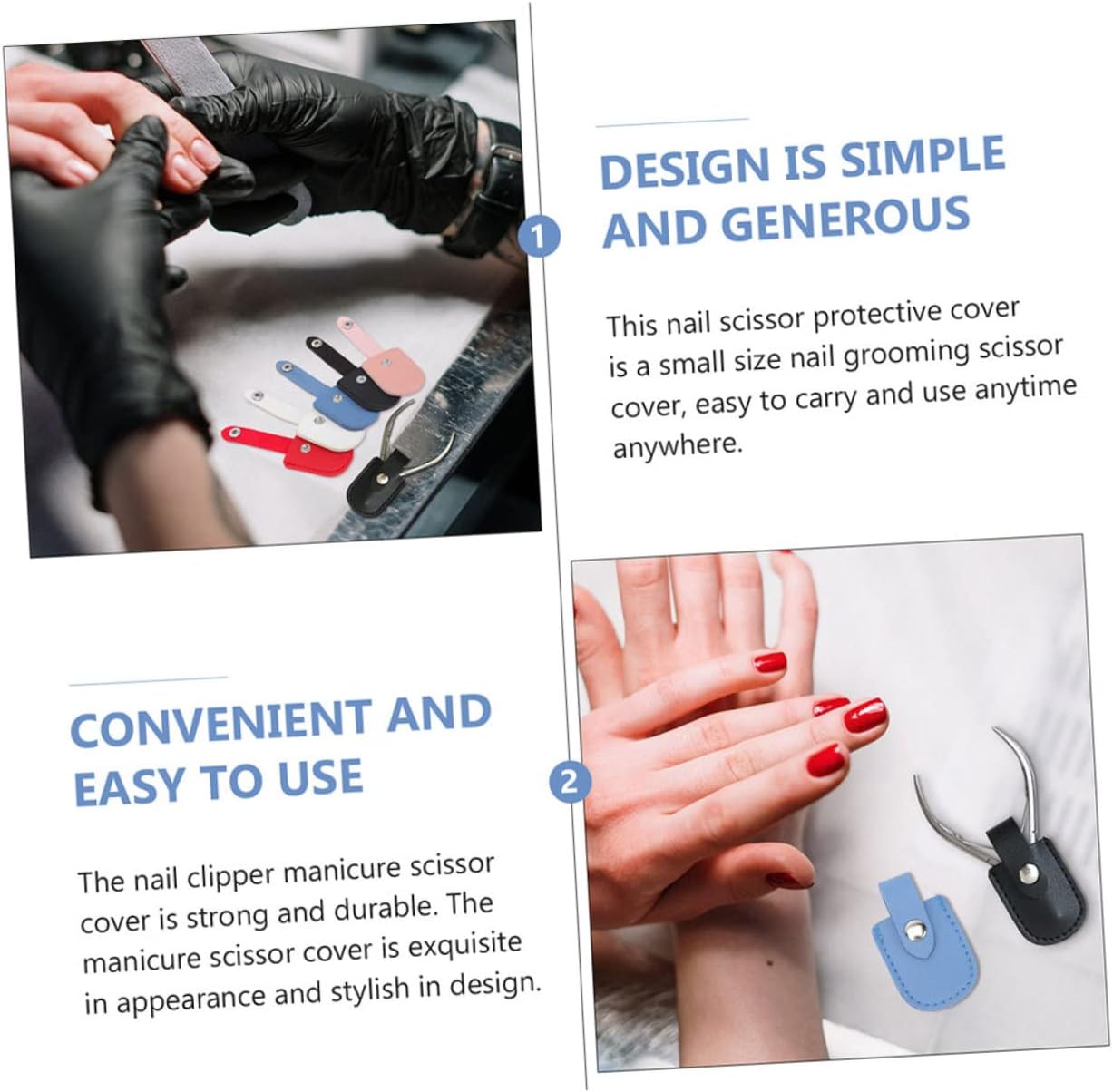 Forbici da ricamo: il prodotto è semplice e comodo da usare, il che ti offrirà più comodità. Protezioni per pinze per manicure: ha un design in quantità sufficiente, puoi condividerle con la tua famiglia o i tuoi amici, saranno così felici di averle. Forniture per salone di bellezza: il design creativo e il colore chic rendono il prodotto squisito e bello, che è una buona copertura per forbici per manicure. Tappo per pinzette per forbicine per unghie: realizzato in materiale resistente con il quale può essere utilizzato ripetutamente. Copri forbici per cuticole: il rivestimento adotta materiale selezionato, che è migliore e durevole, può servirti molto bene.